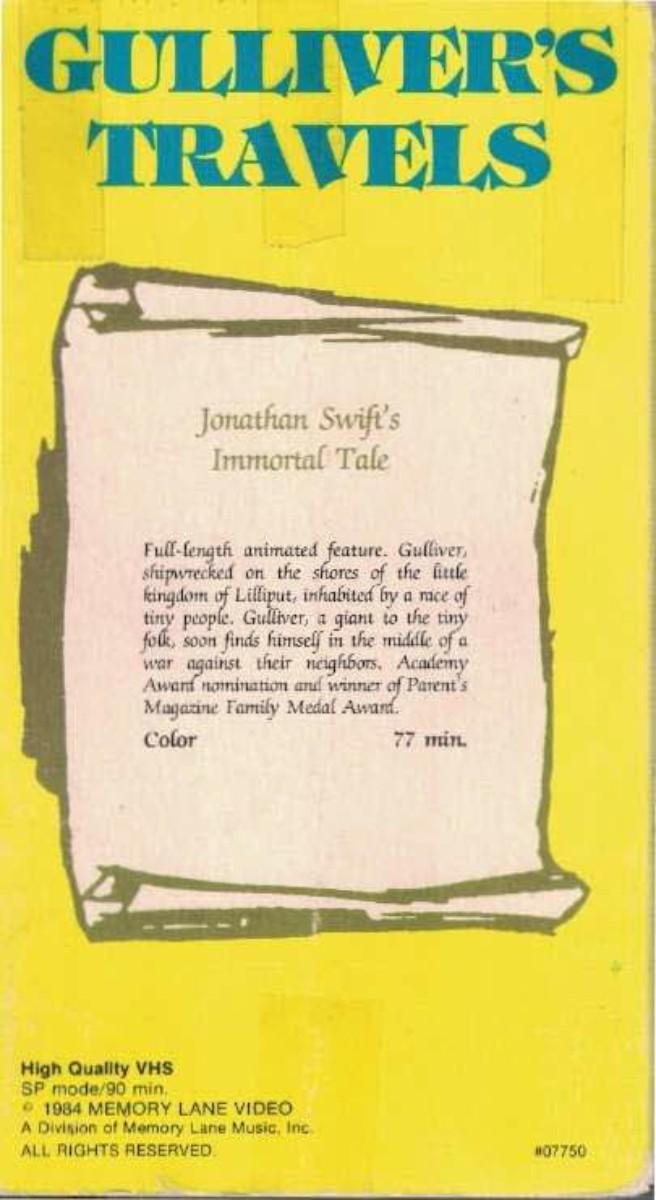 Gulliver's Travels, animated move, VHS, Johnathan Swift's immortal Tale 77 min
