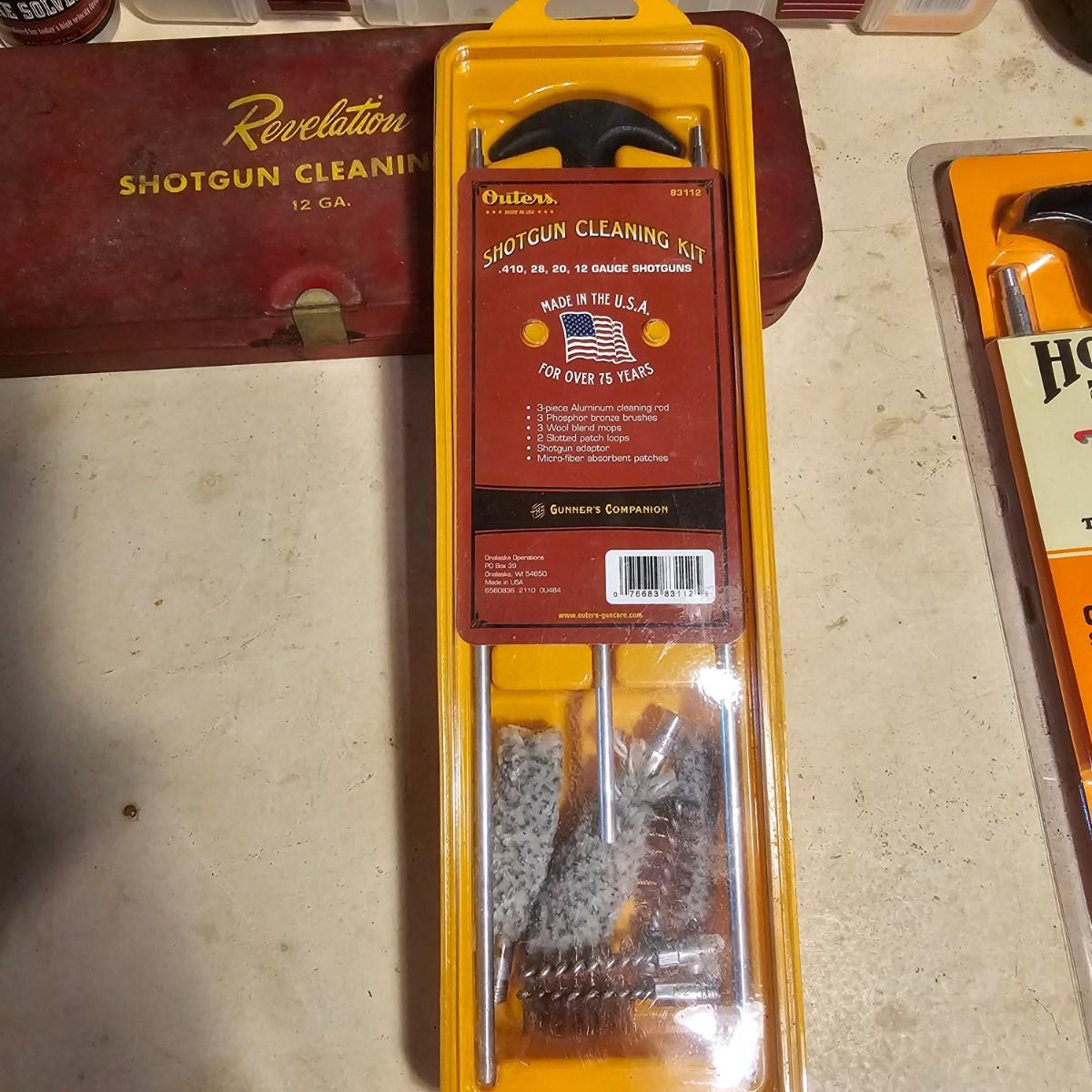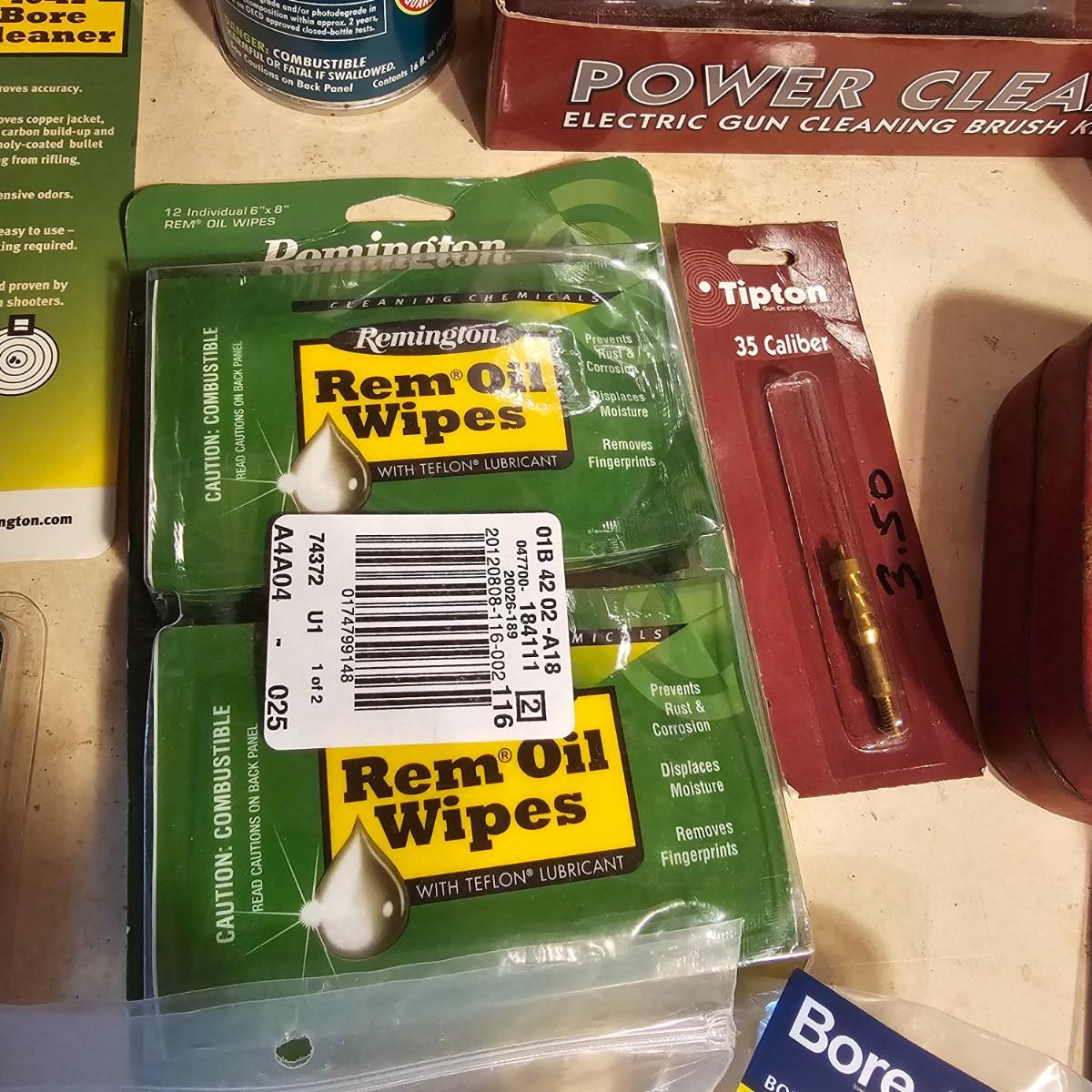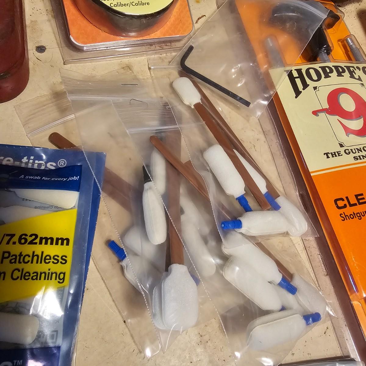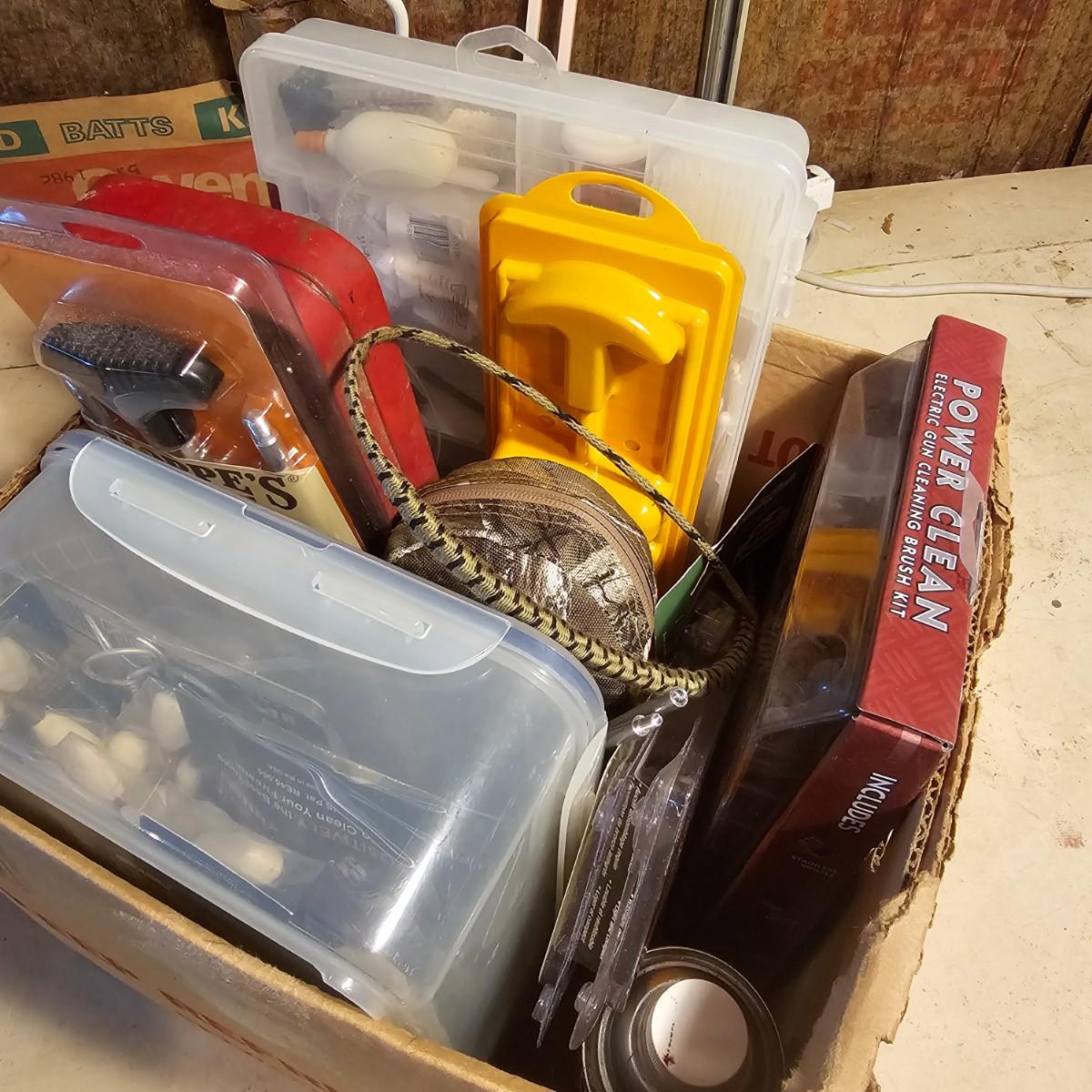 Cleaning supplies, solvents, scrubber, bore snakes and more. Several pre-packaged kits for .22, shotgun and other calibers. One Power Clean battery-operated set. (Untested). Bore tips, pads, patches. Some items used, some newer. See photos for details. Local pickup only.