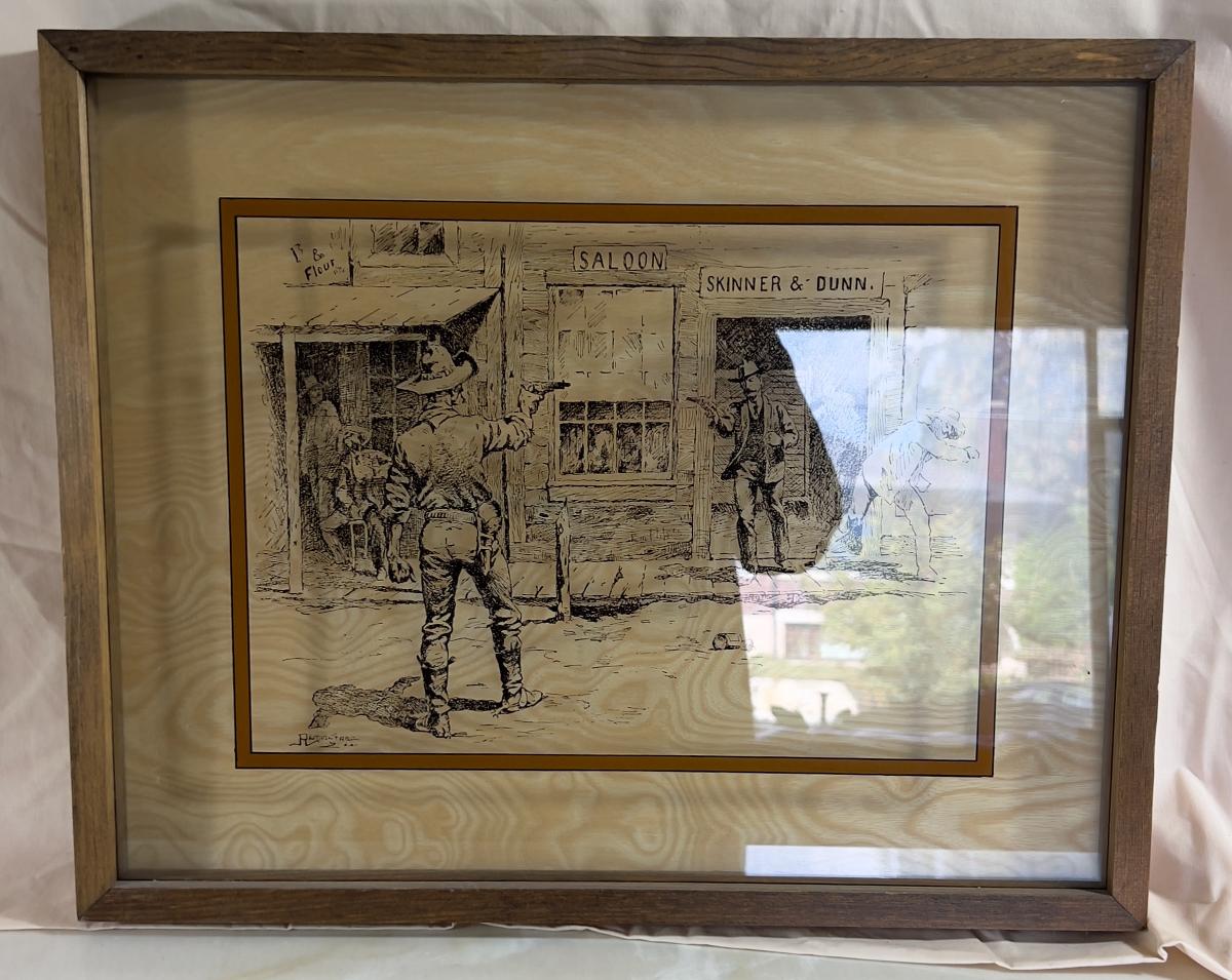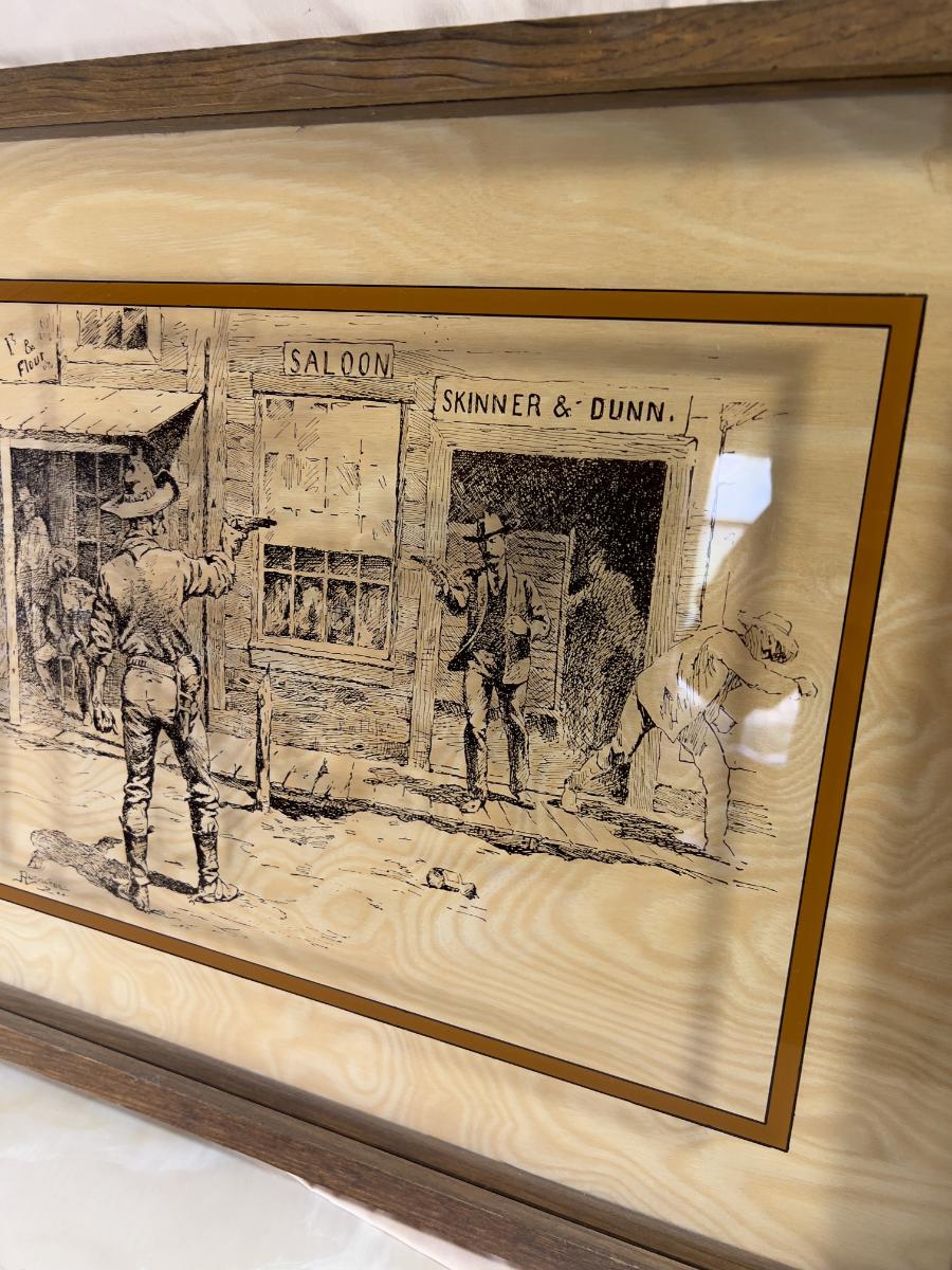 Gun Fight at the SALOON Remington REVERSE PAINTING ON GLASS