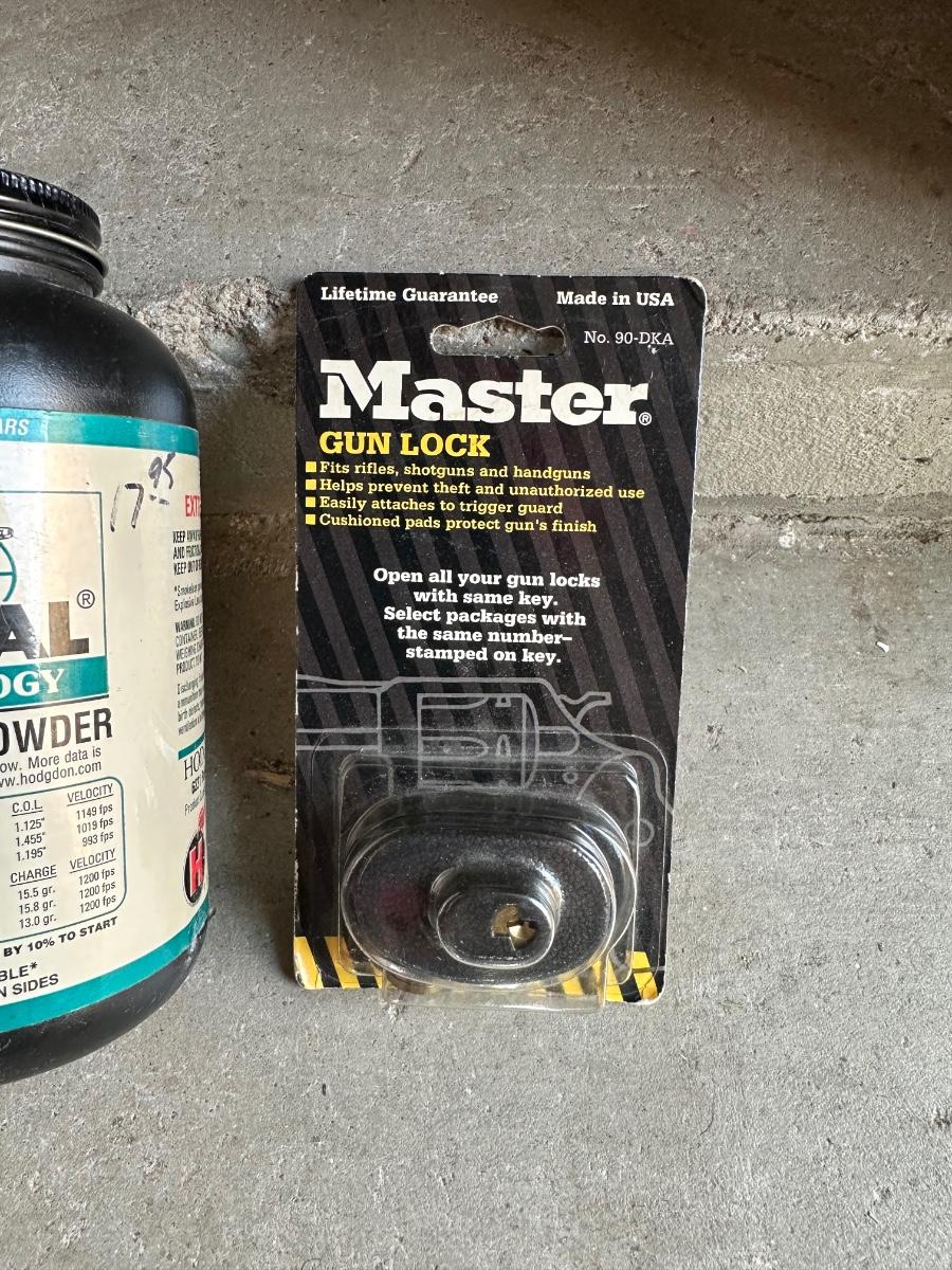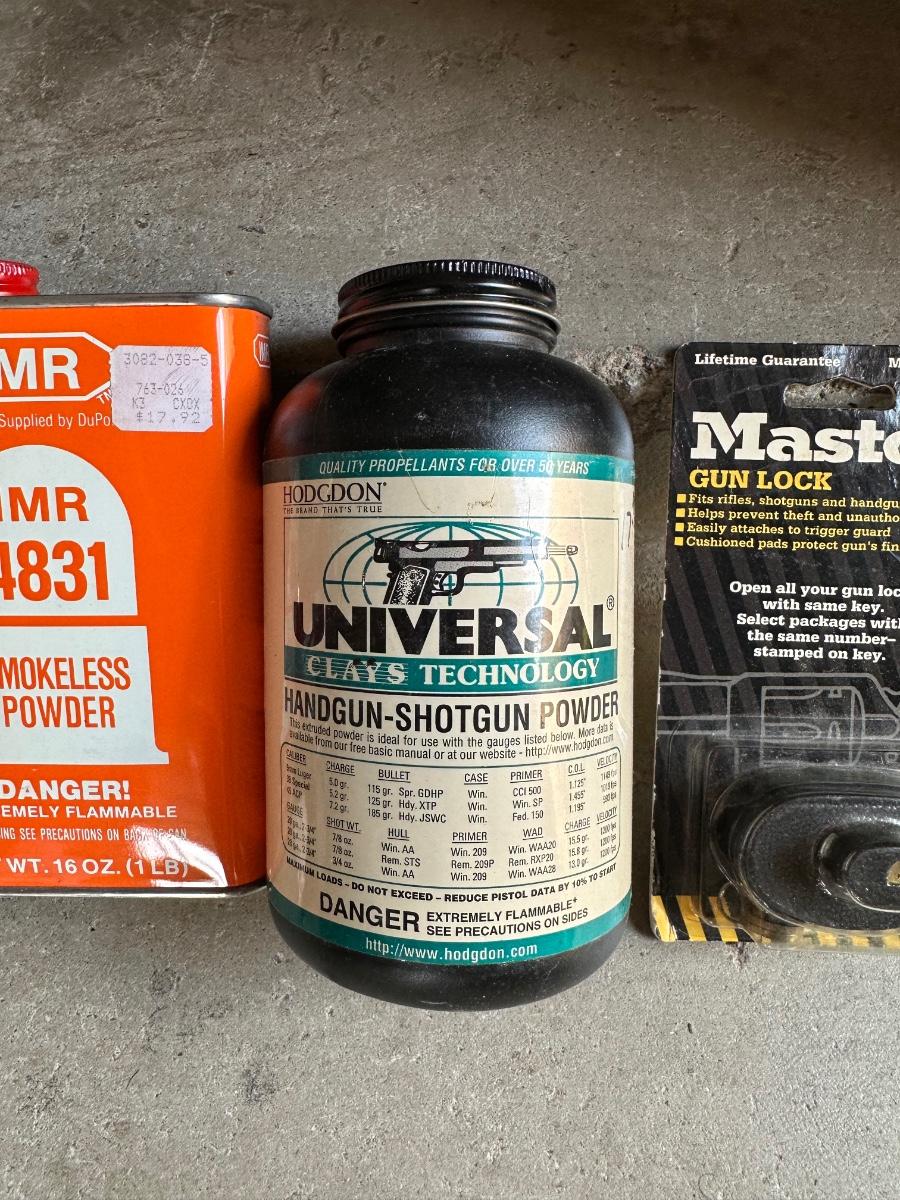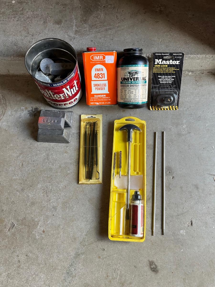 GUN LOCK, LEAD FOR MAKING BULLETS, GUN CLEANING MATERIAL AND RELOADING GUN POWDER