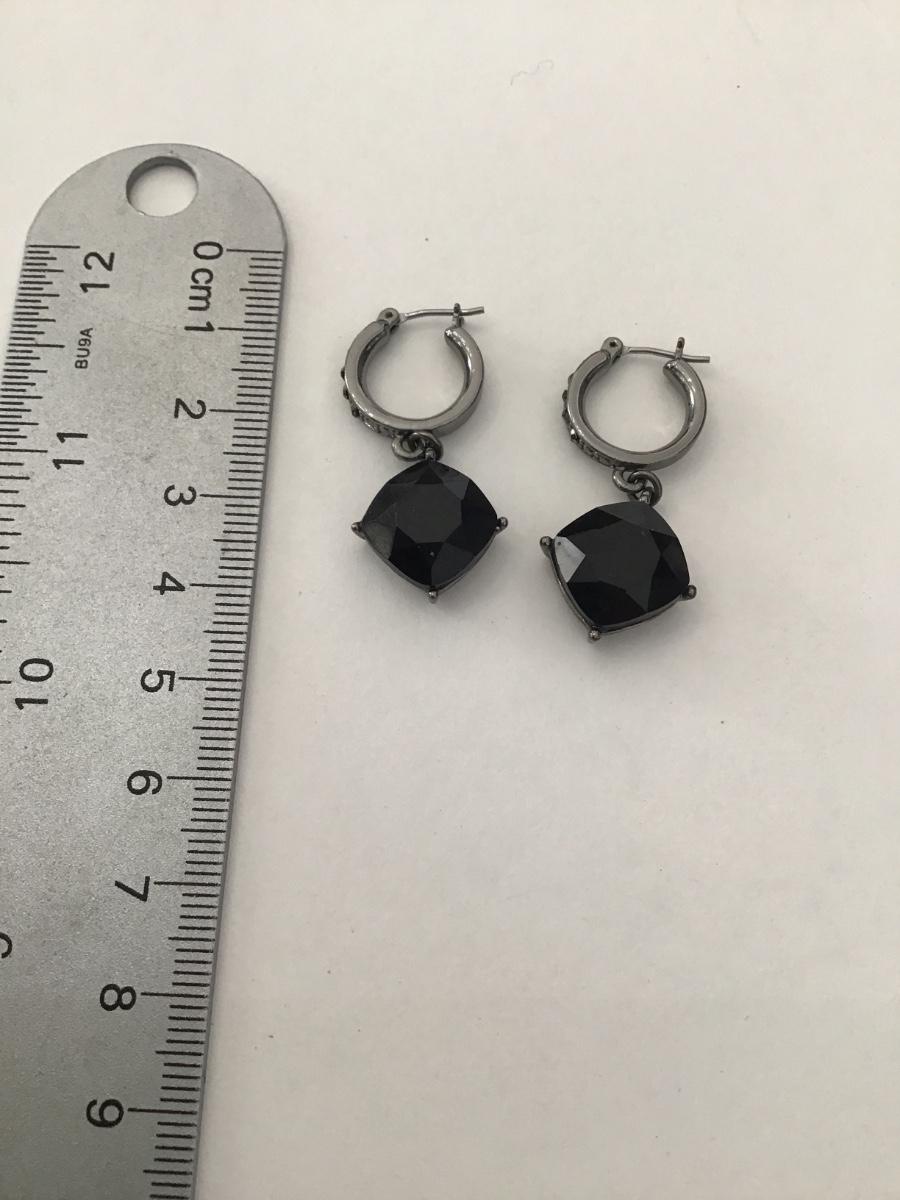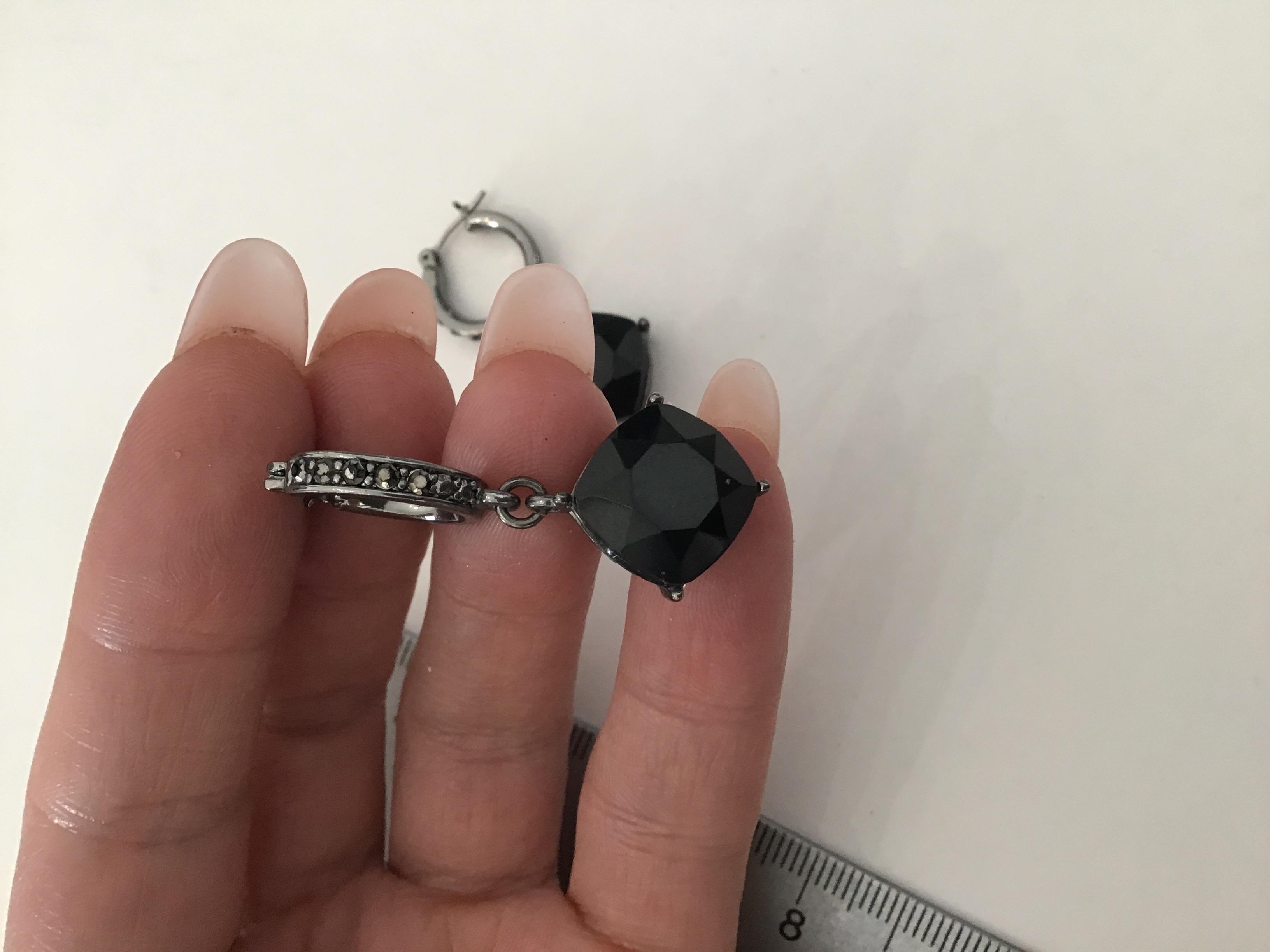 Gun metal, gray hoop, black rhinestone dangle earrings