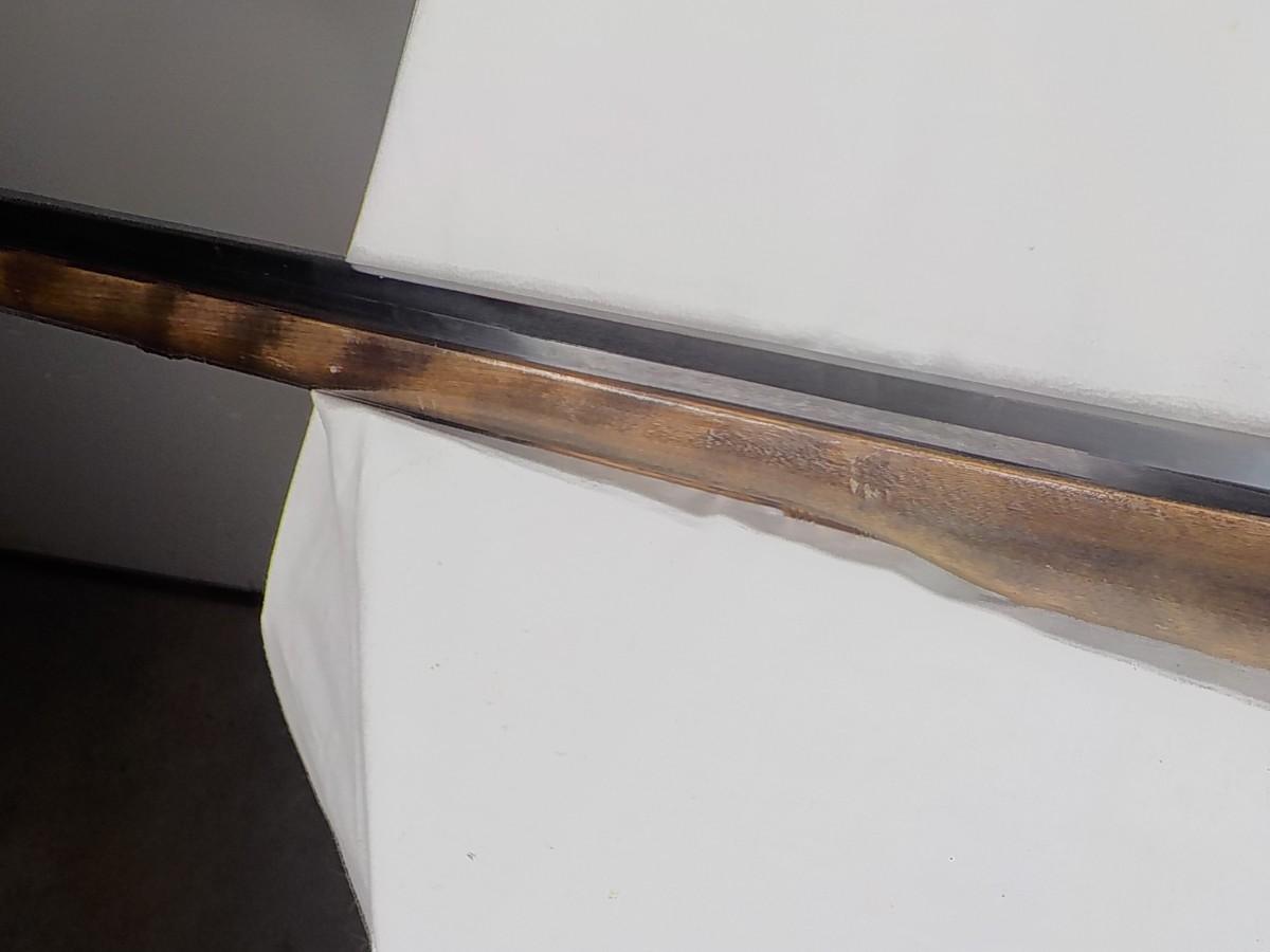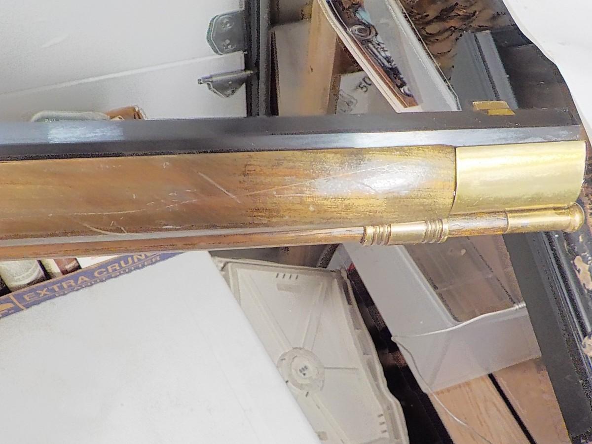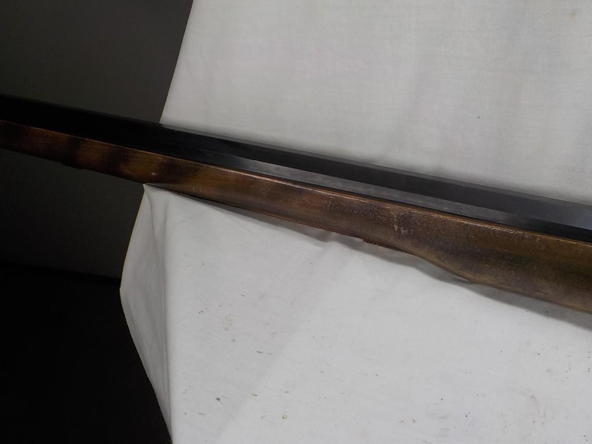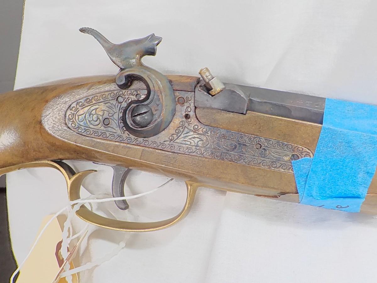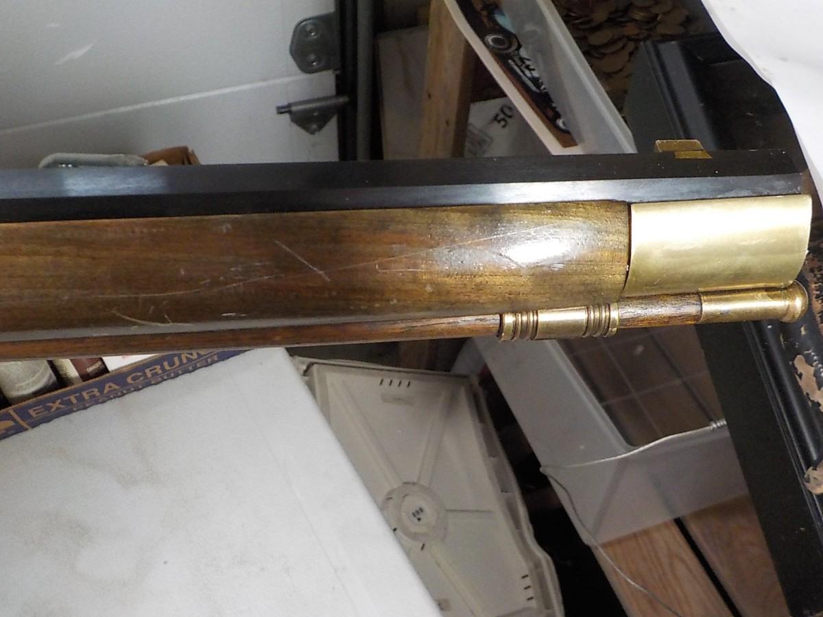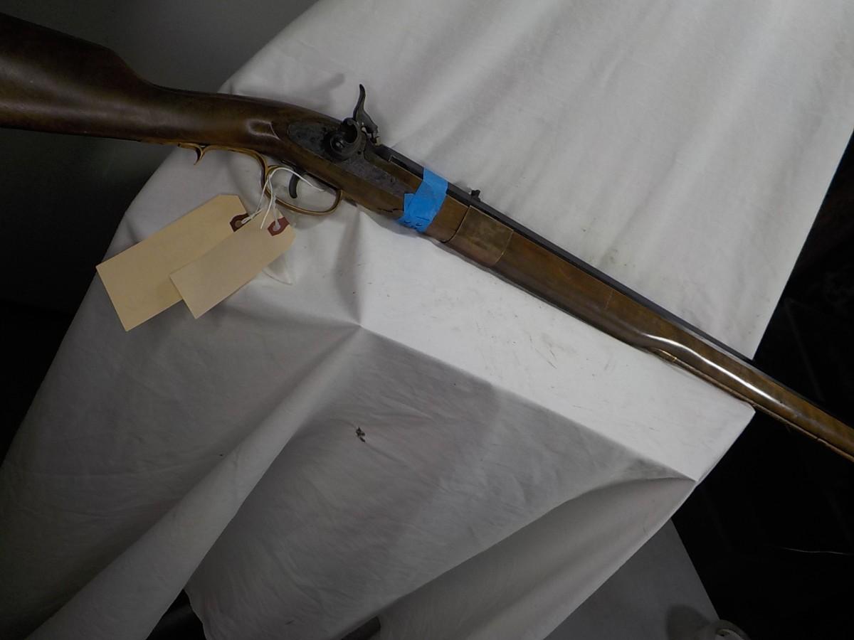 33 in long octagon barrel,hard wood , brass accents,, top of barrel shows proof stamp, does have stock crack pls view looks repairable.