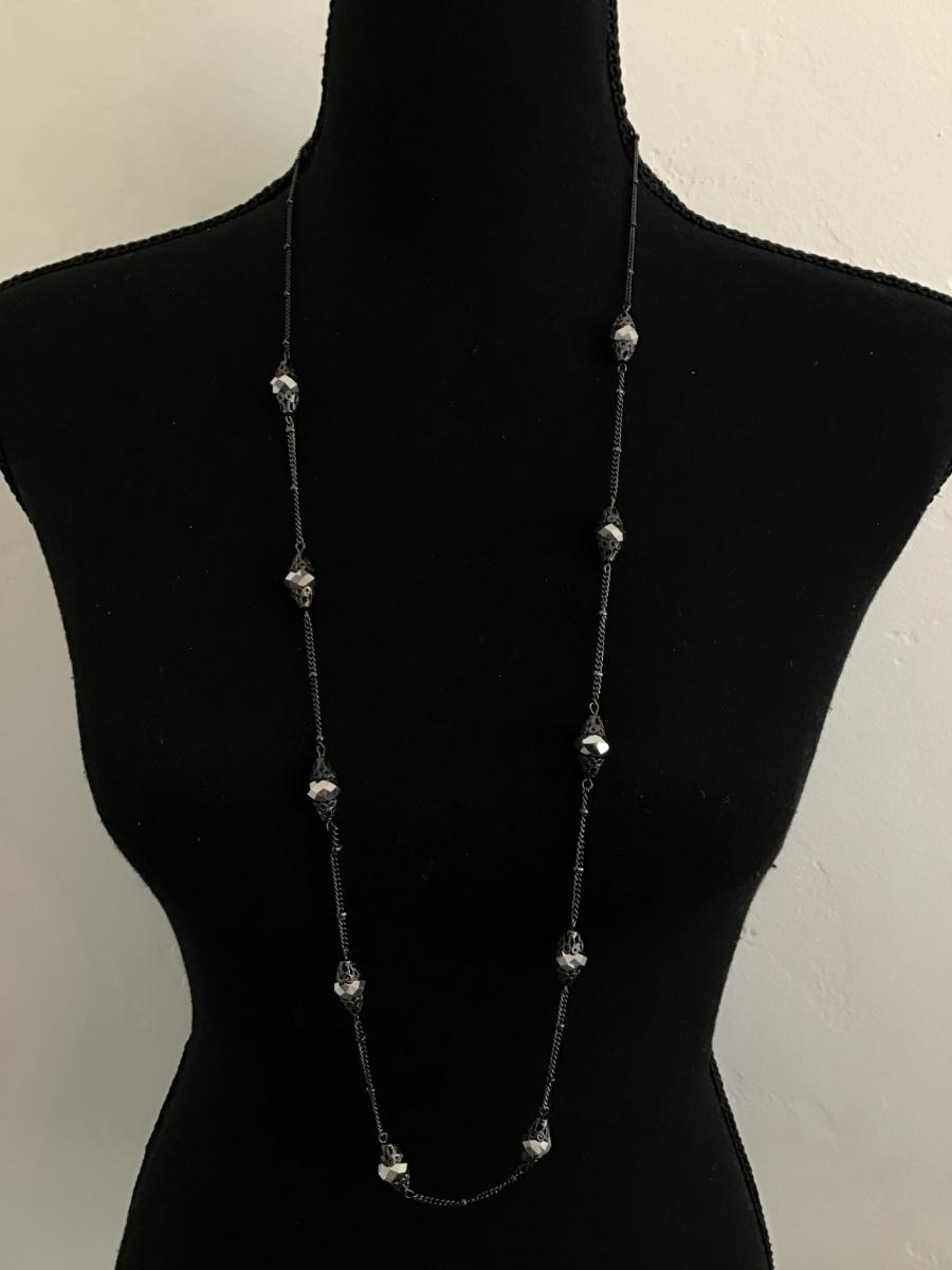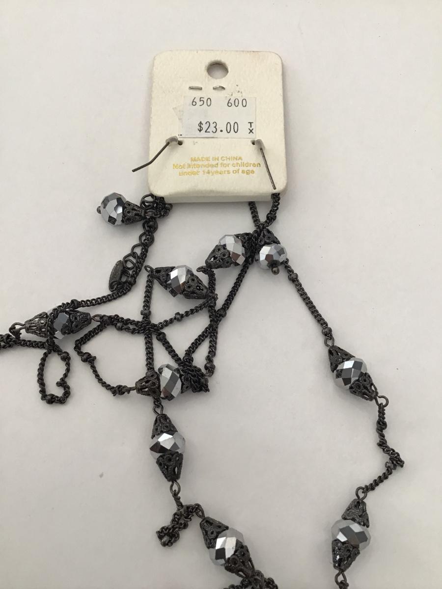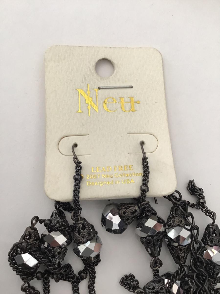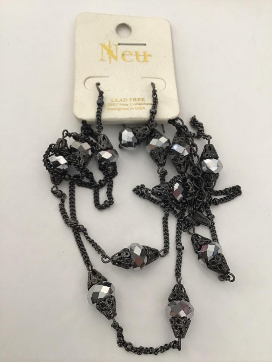 Gunmetal, gray rhinestone fashion, necklace, and earring set