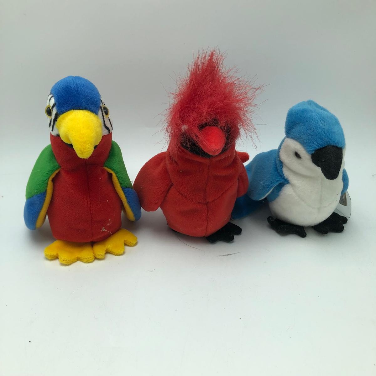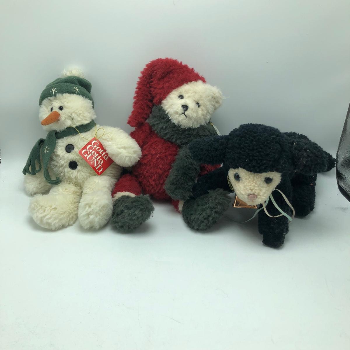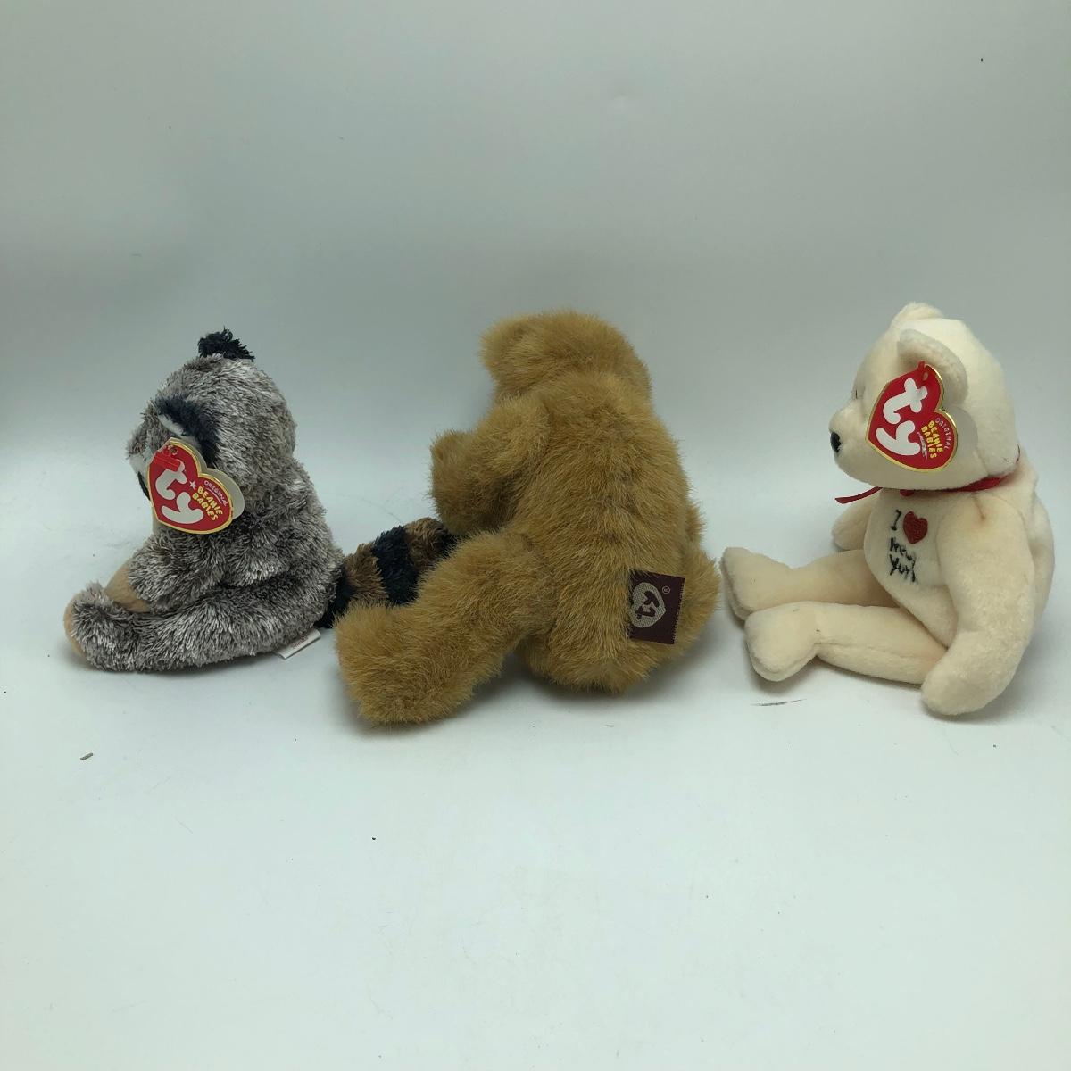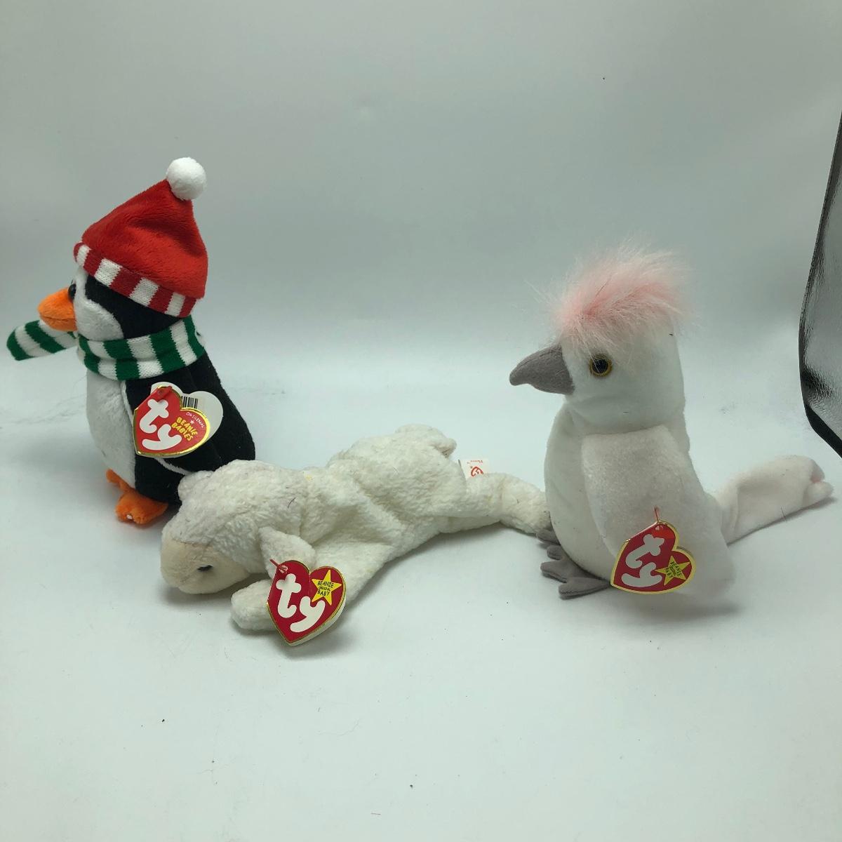 Lot includes three Gund stuffed animals, as well as four bird Ty Beanie babies, three bear Ty Beanie babies, a penguin and a sheep Ty Beanie baby.