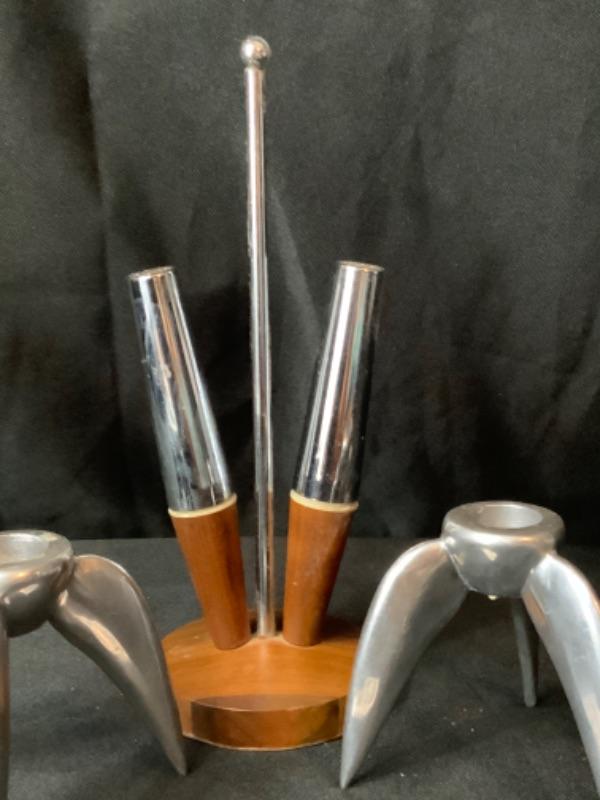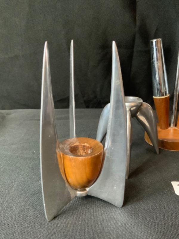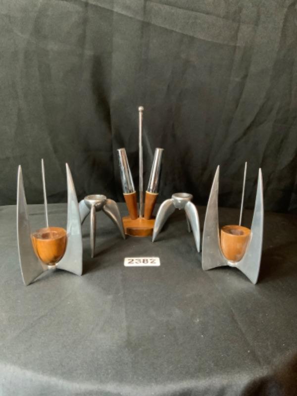 Gunstock Walnut candle holders and salt and pepper shakers Lot 2382
