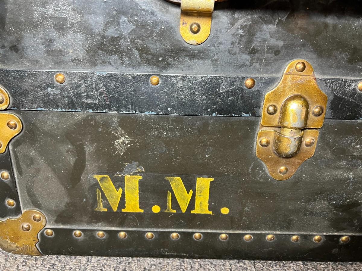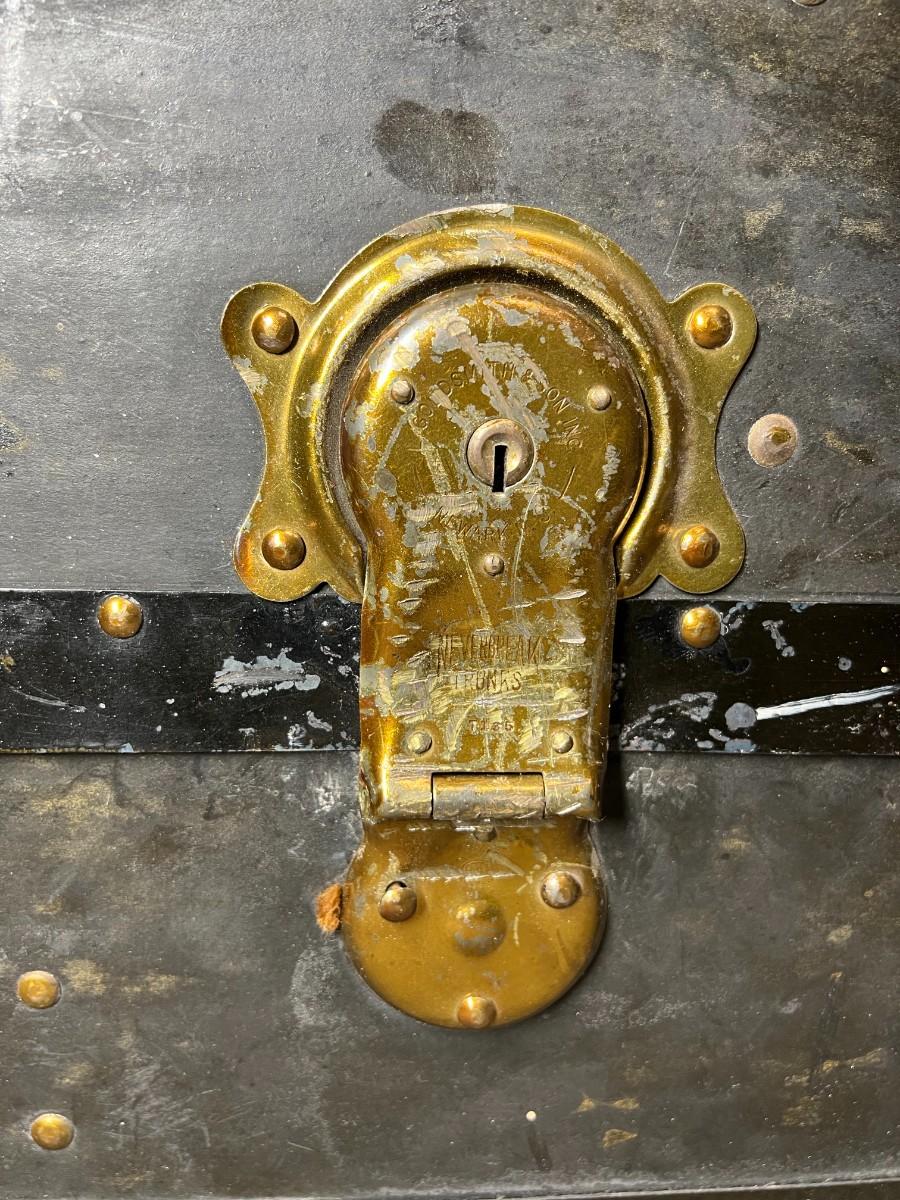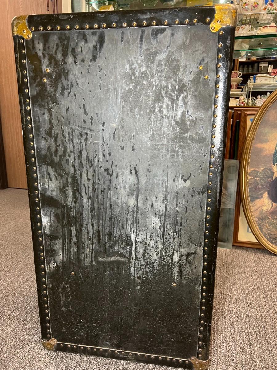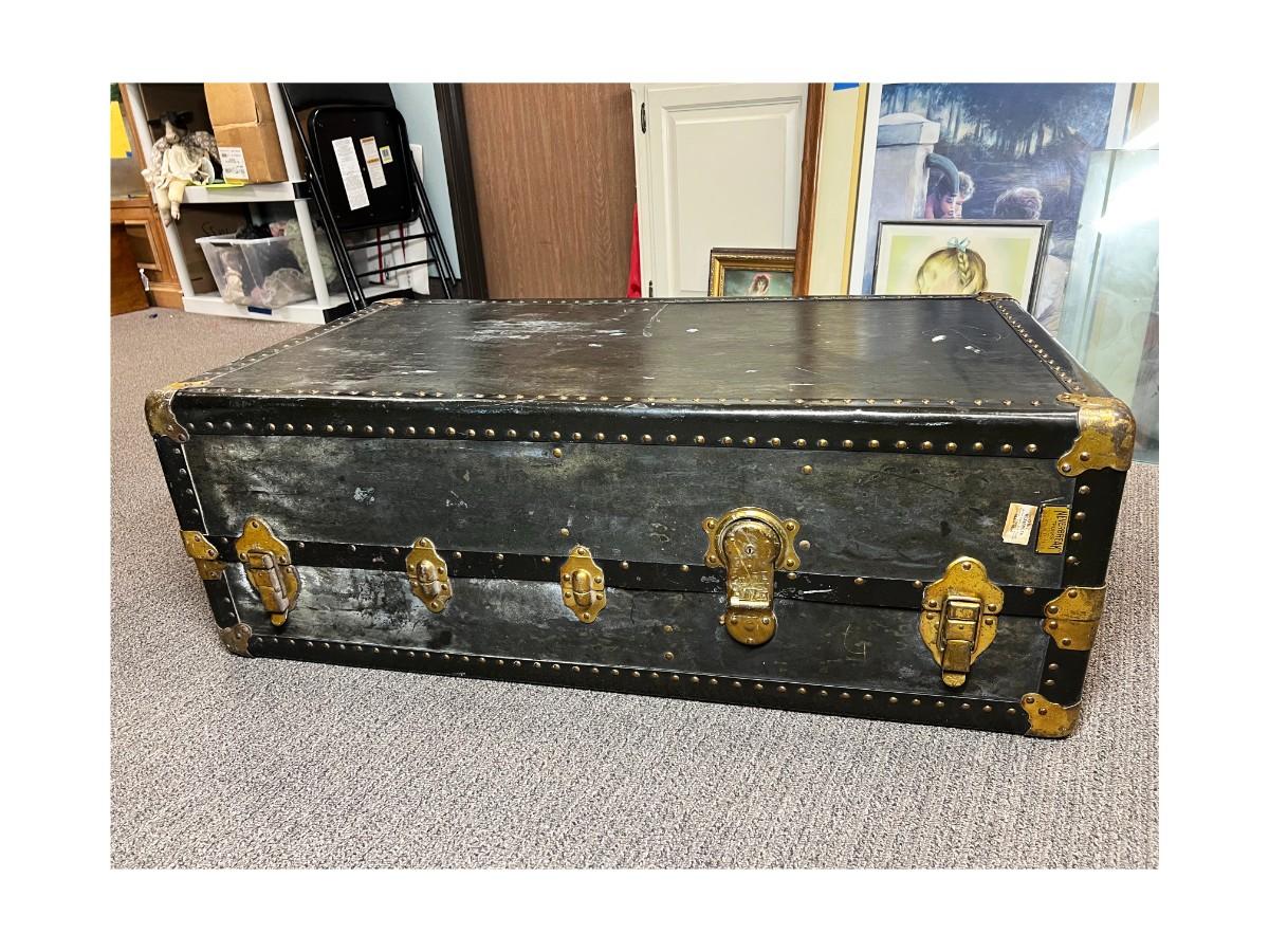 There is vintage wear to the trunk, but there is no significant damage and is in overall fair collectible condition. The trunk is locked without a key and cannot be opened, check pictures for more details and for sizing.