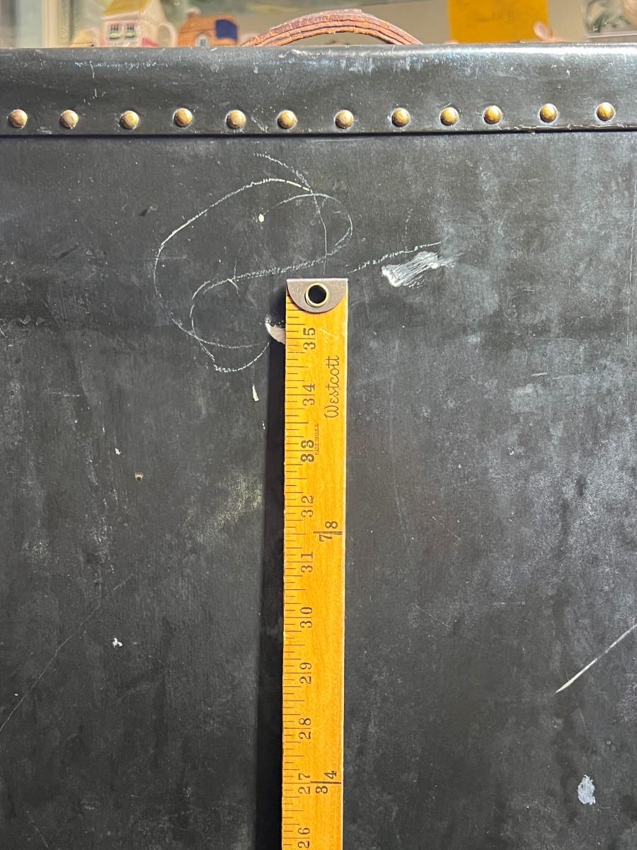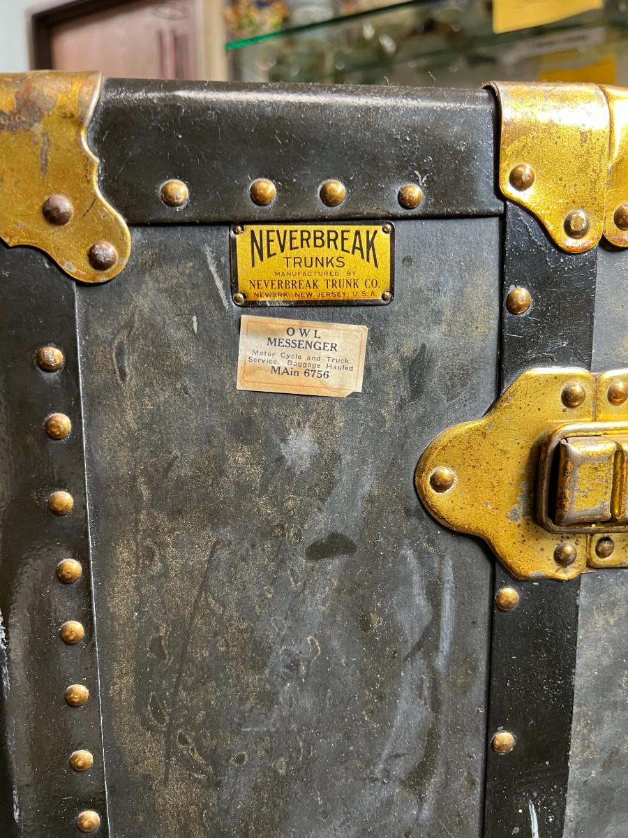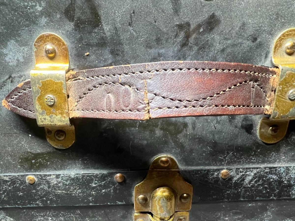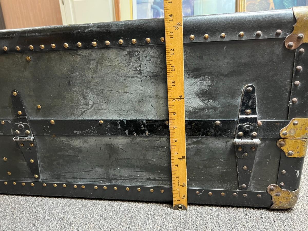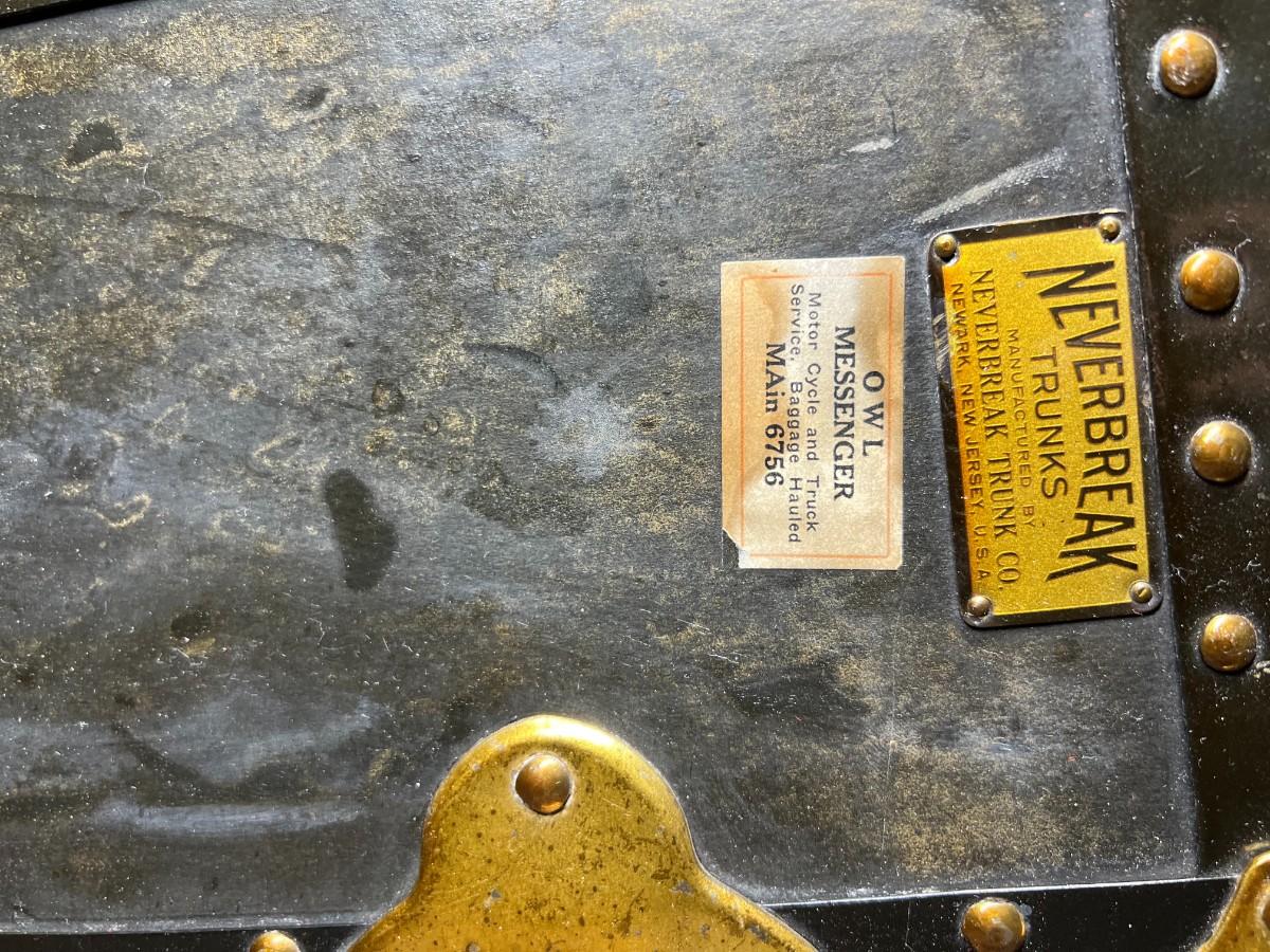 There is vintage wear to the trunk, but there is no significant damage and is in overall fair collectible condition. The trunk is locked without a key and cannot be opened, check pictures for more details and for sizing.