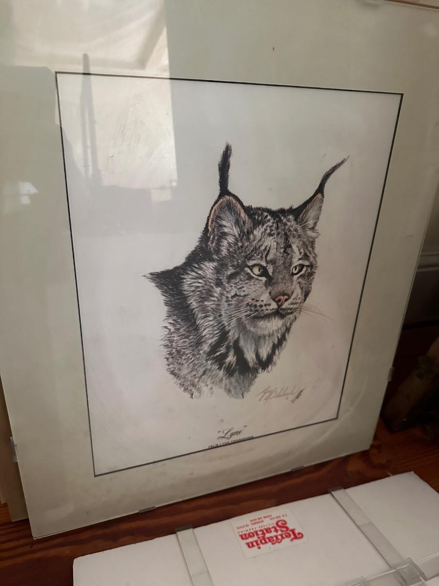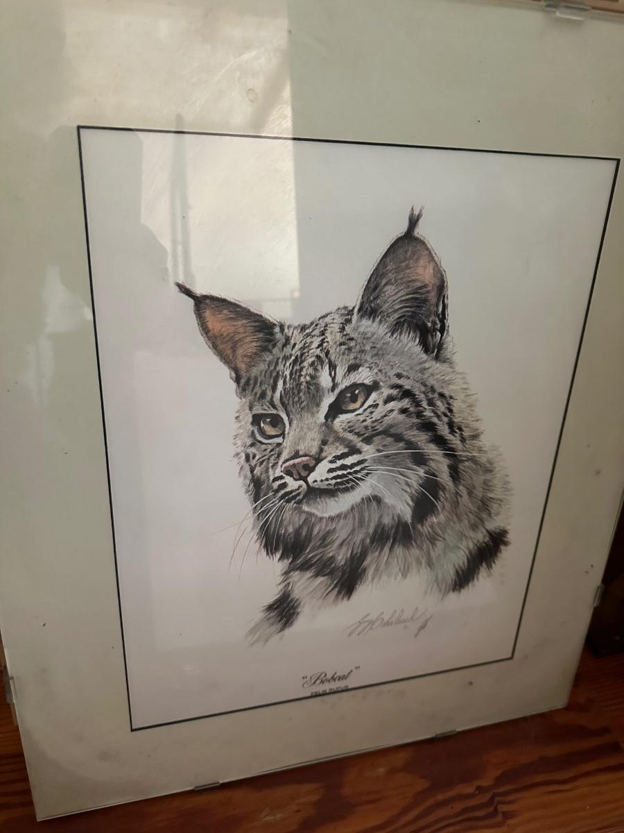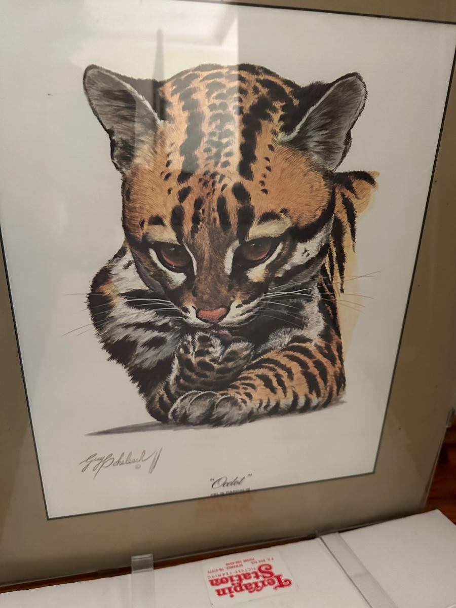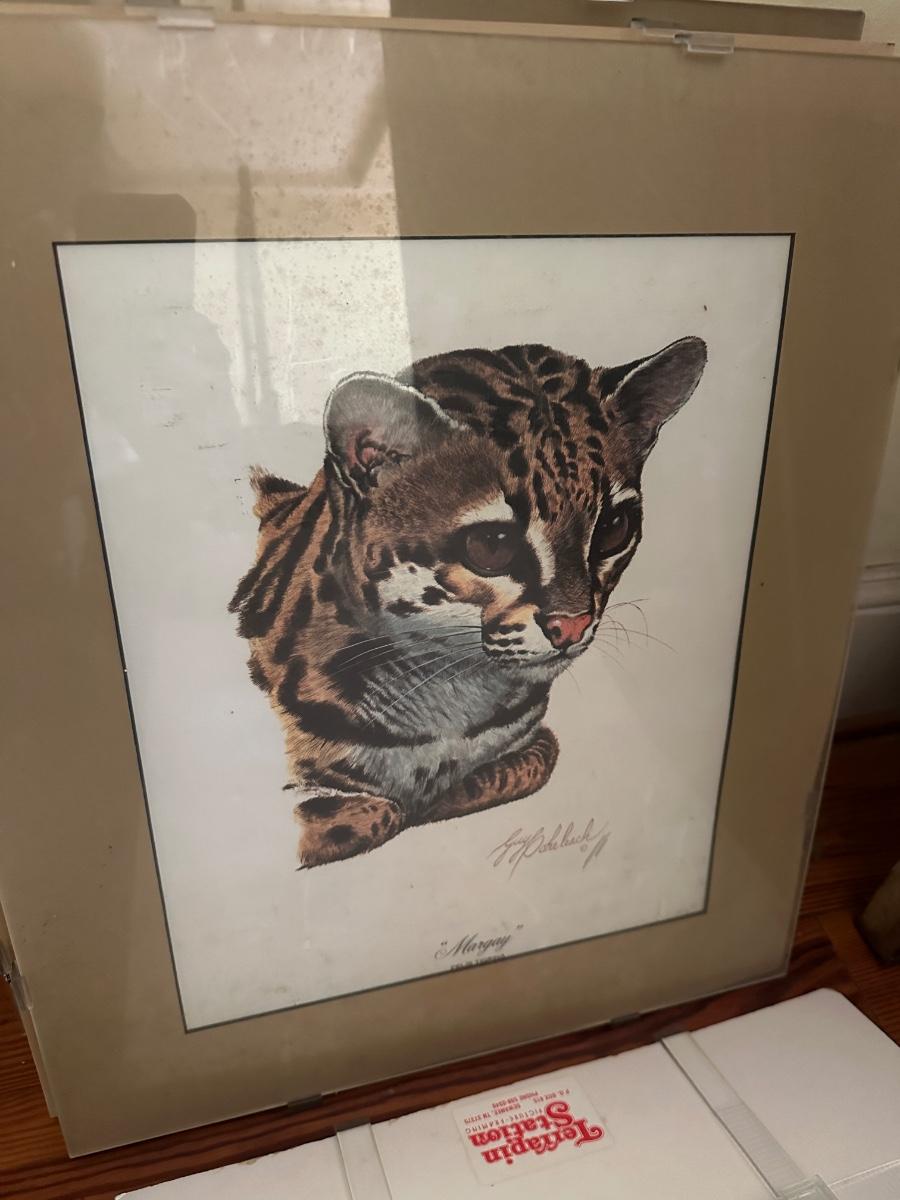 GUY COHELEACHE SIGNED CAT PRINT LOT BLACK JAGUAR, BOBCAT, LYNX, MARGAY,COUGAR, OCELOT, ONE GLASS FRONT IS MISSING