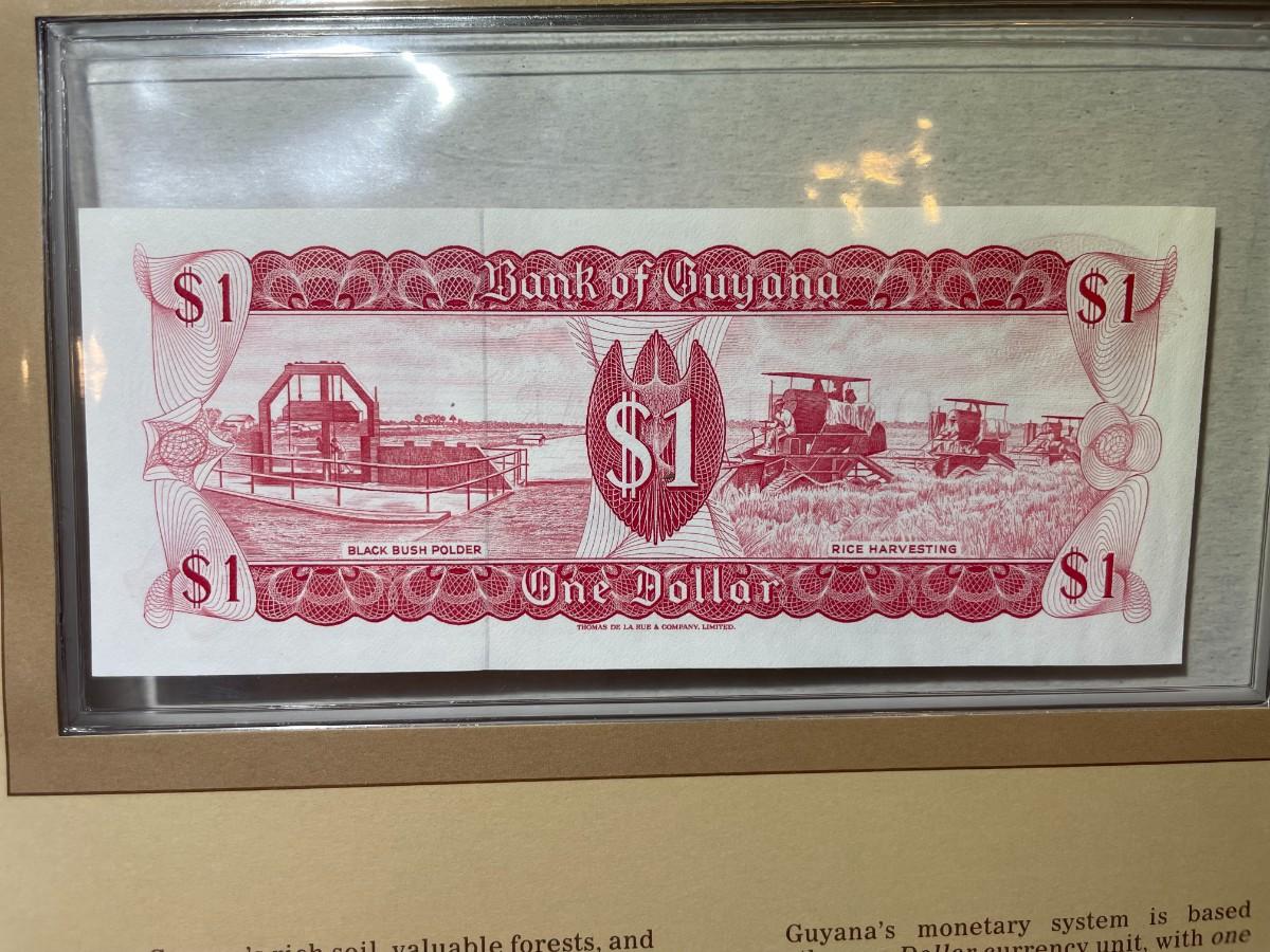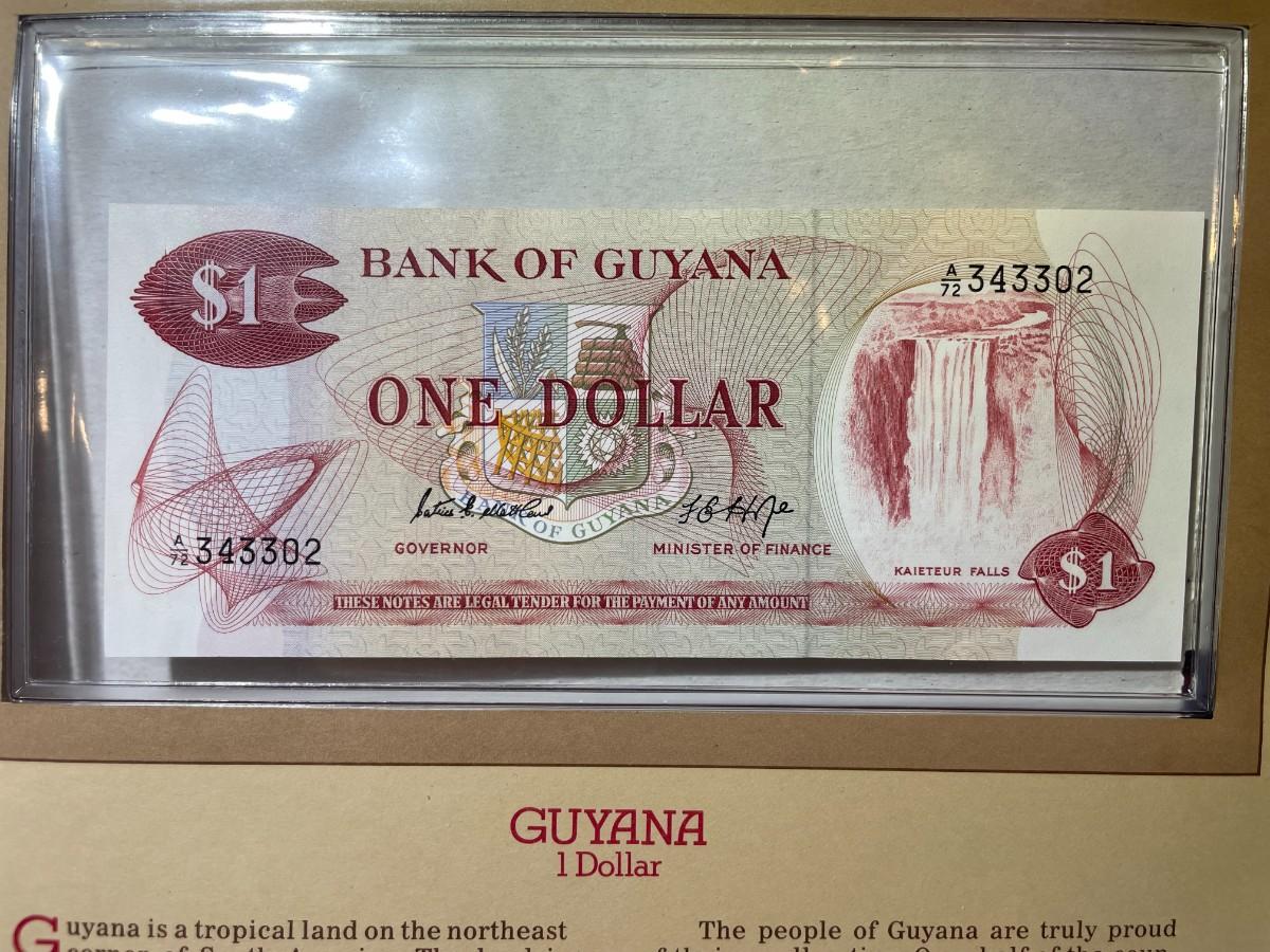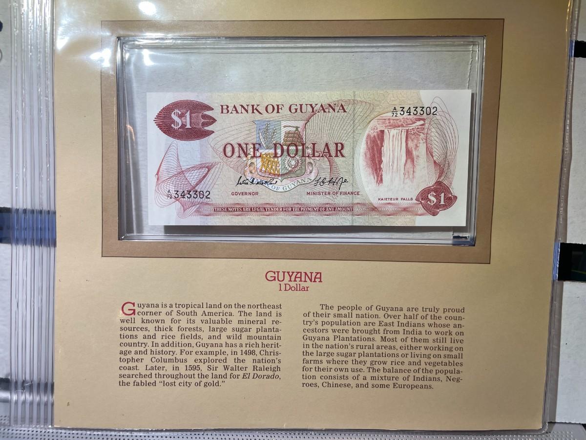 Guyana 1 Dollar Banknote/Currency in Uncirculated Condition by Fleetwood as Pictured. $5 Domestic Shipping. (On Multiple Lots Won, the Shipping Charge will be Combined or Adjusted Accordingly)