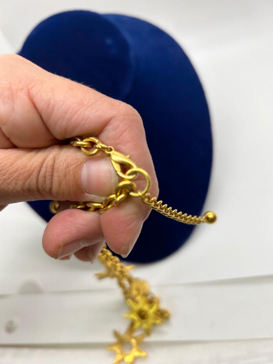 Chunky Bright Gold Tone Moon and Stars Choker Style Charm Necklace
