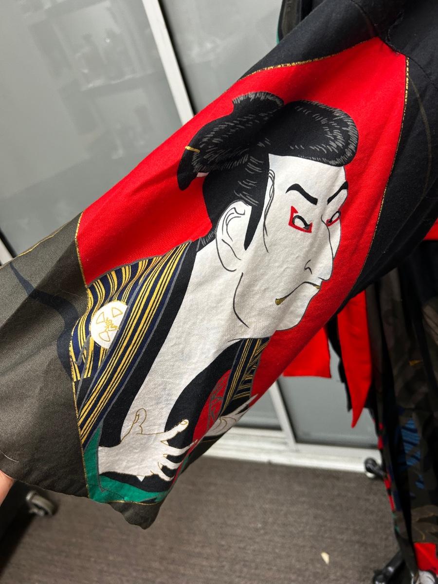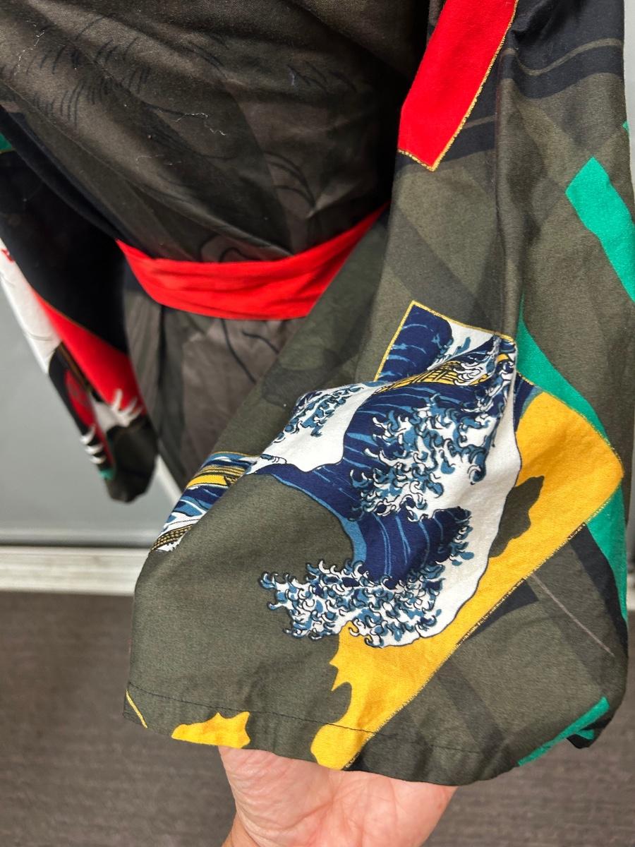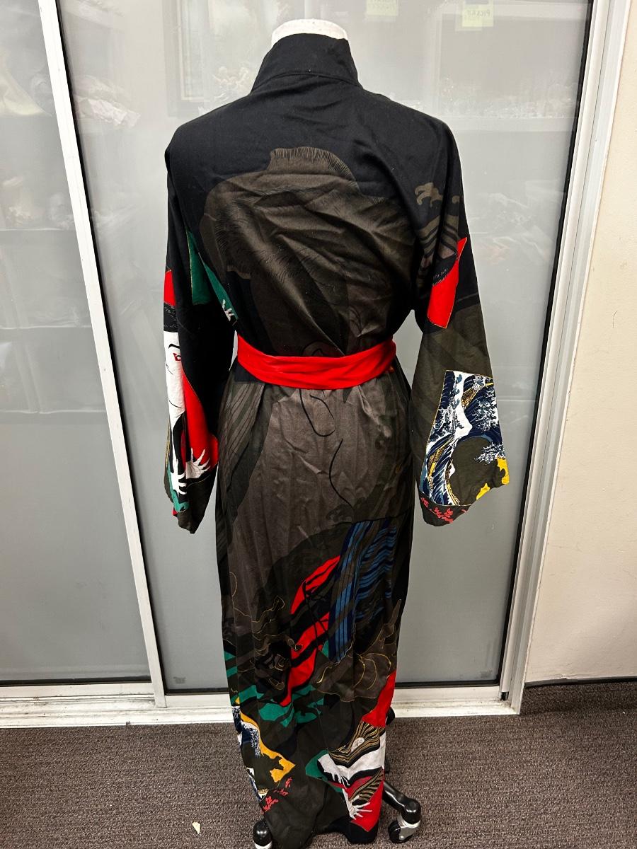 Retro Japanese Kimono Kabuki Samuri Mod Print Robe Cover Up