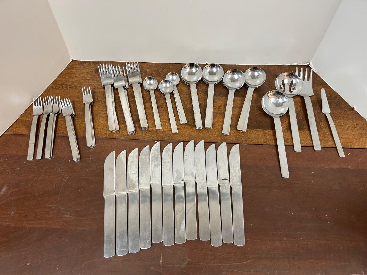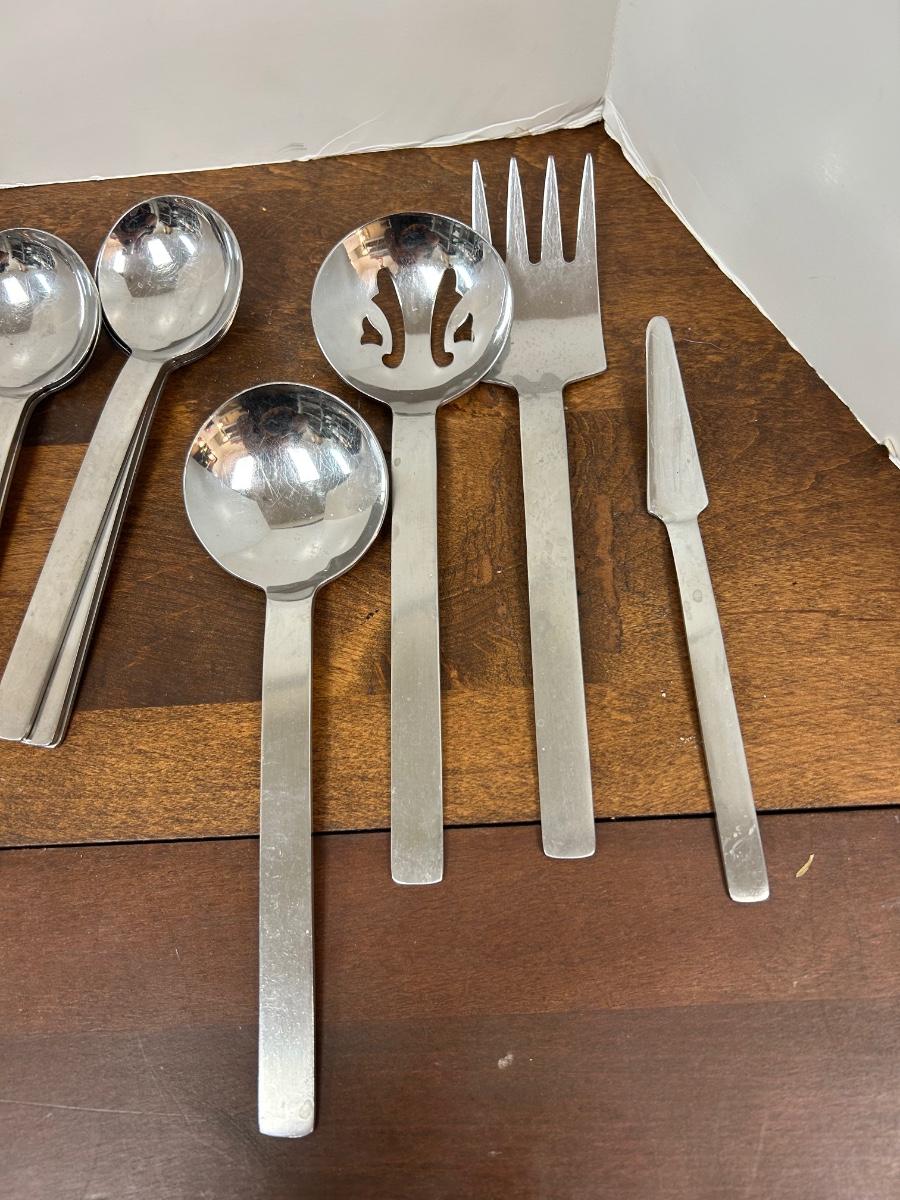 Supreme by Towle Chunky Modern Flatware Utensil Set Service for 8 with Extras and Hostess Set. In previously used condition. 5 piece place setting.