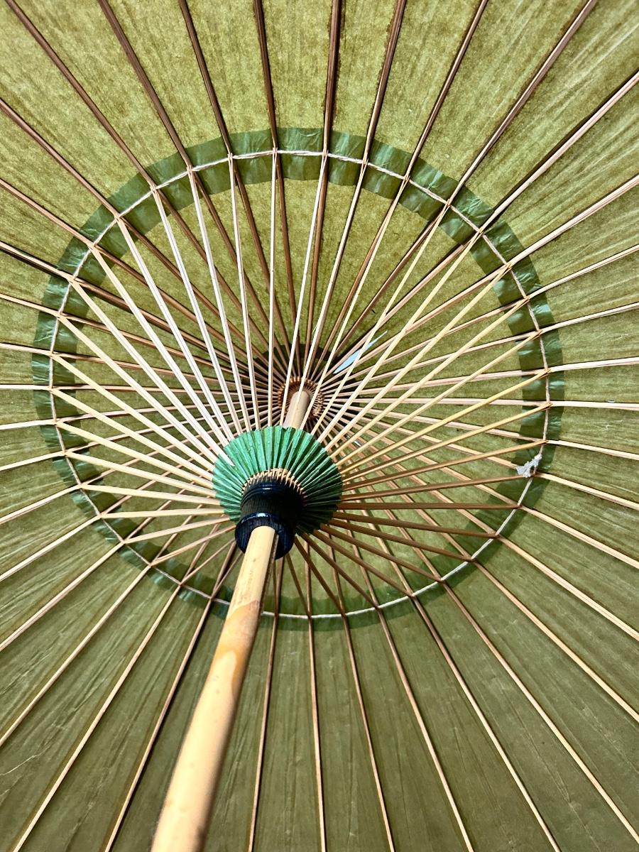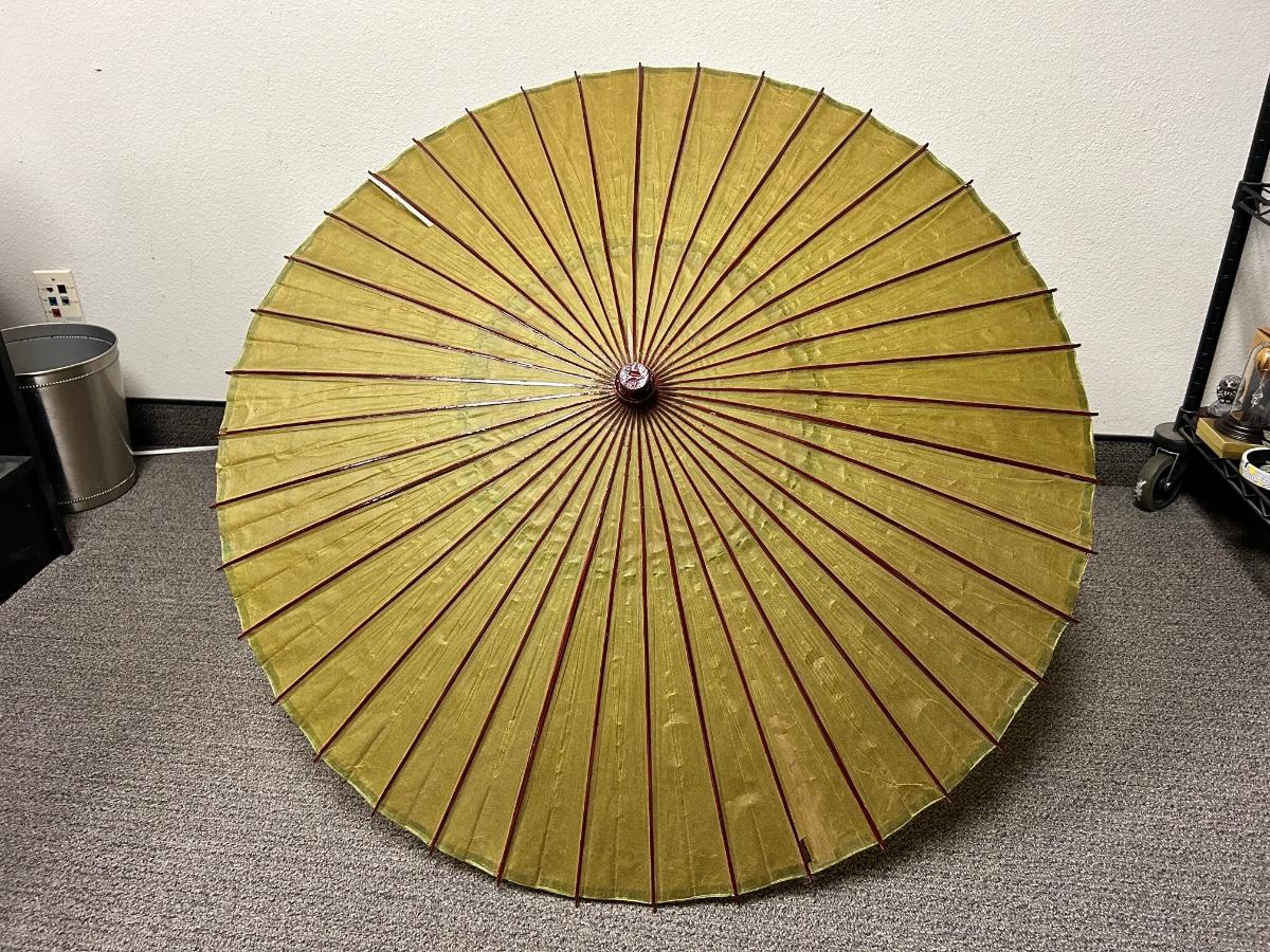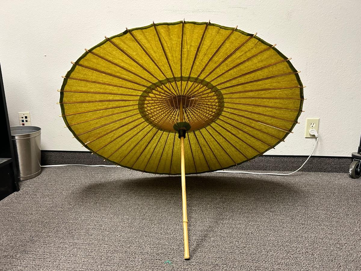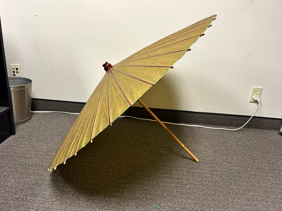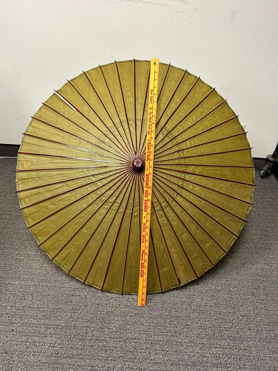Vintage Oriental Wood Bamboo Wide Brim Traditional Sun Umbrella
