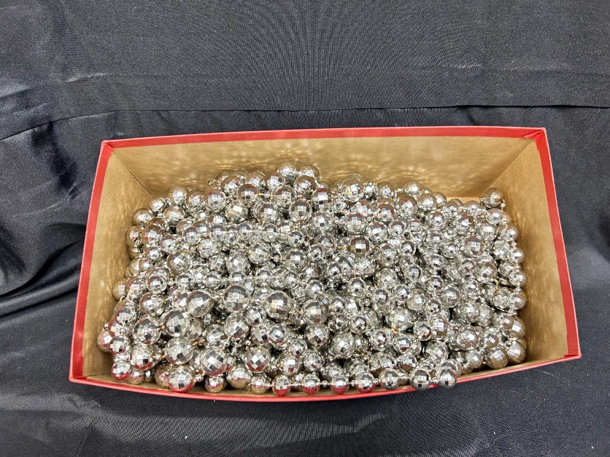 Shoebox Filled with Silver Mirrorball Style Beaded Plastic Christmas Holiday Tree Garland