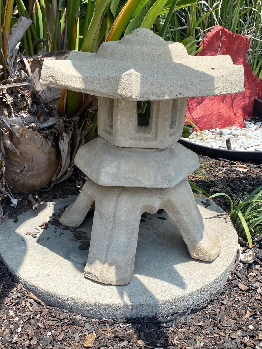 Set of three cement garden art pagodas. In good condition. **PICK UP IN DIAMOND BAR FRIDAY JUNE 16TH 5PM TO 7PM ONLY**