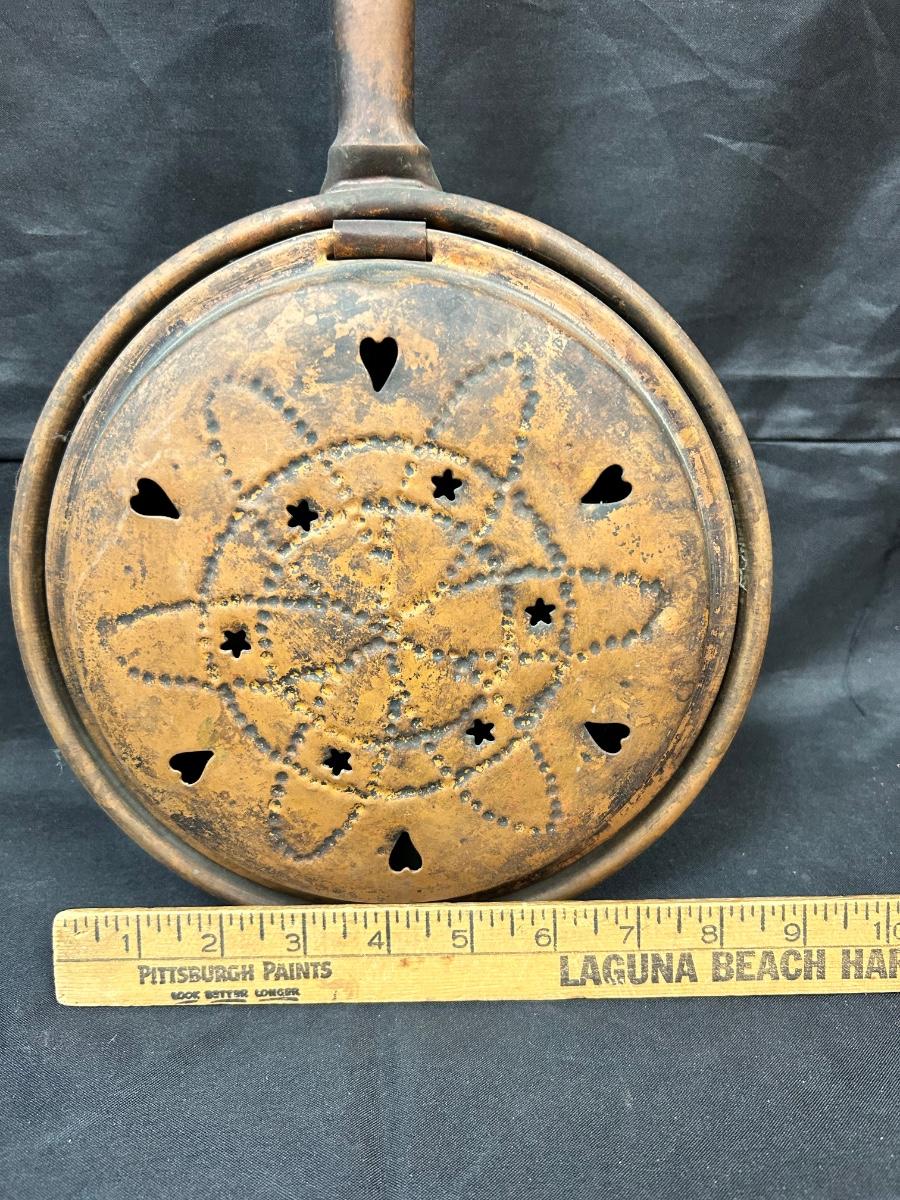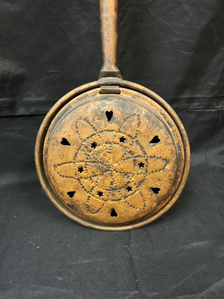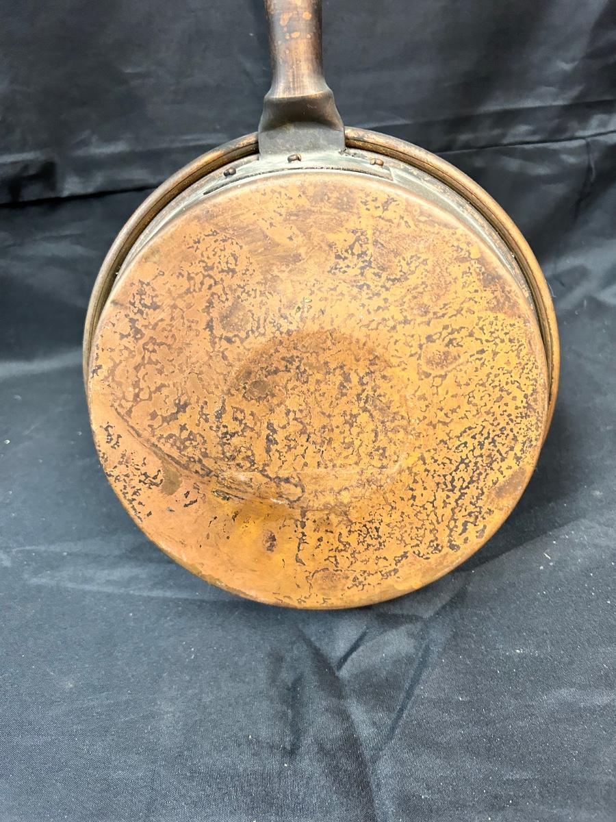 Vintage Long Wood Handled Copper Bed Warmer Chestnut Roaster Open Fire Roasting