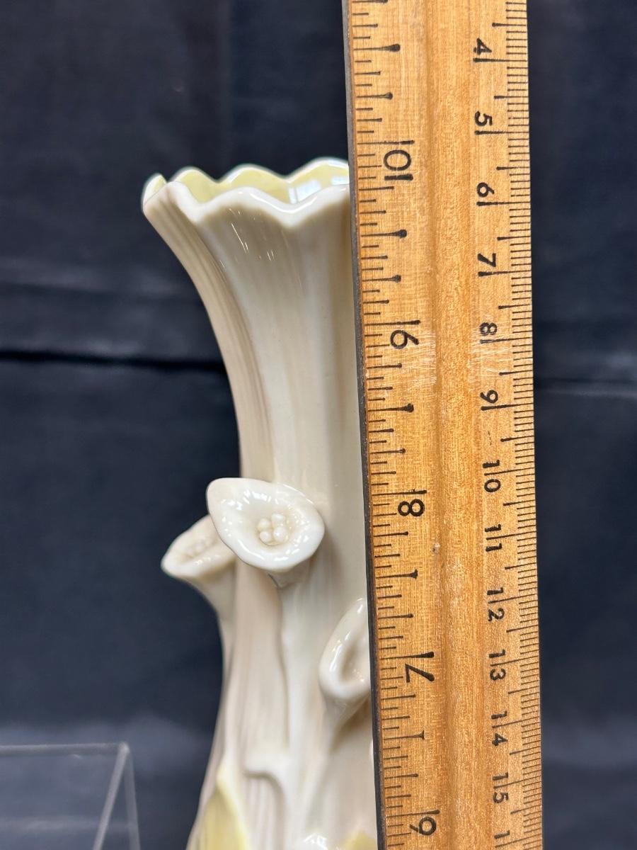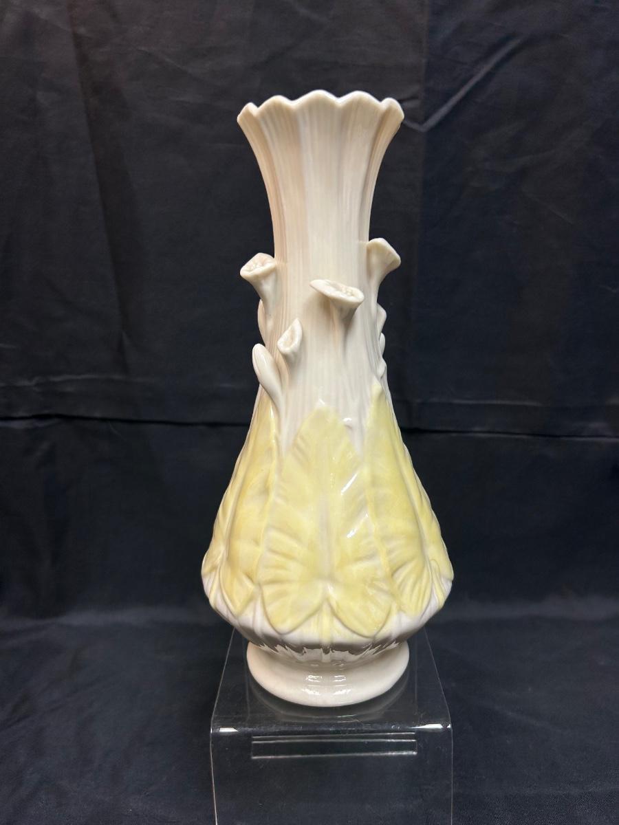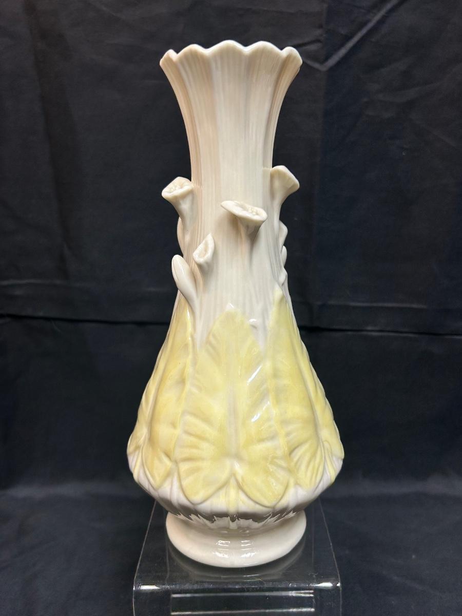 Vintage Two Tone Yellow and Ivory Belleek Calla Lily Flower Vase