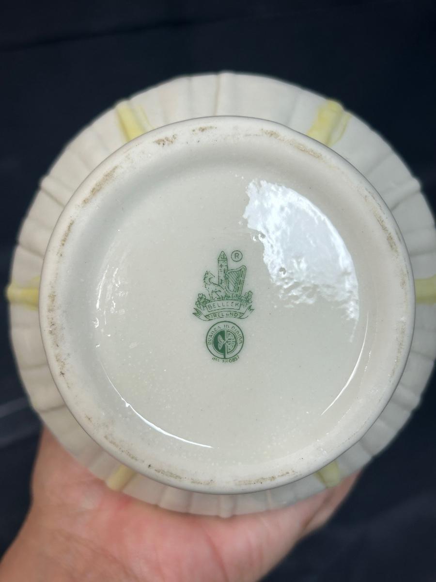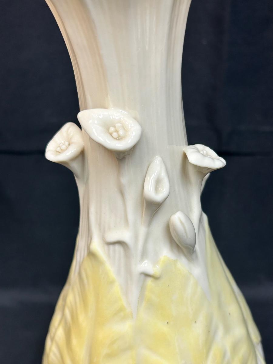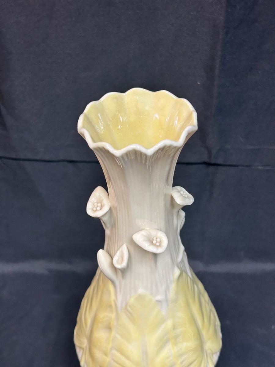 Vintage Two Tone Yellow and Ivory Belleek Calla Lily Flower Vase