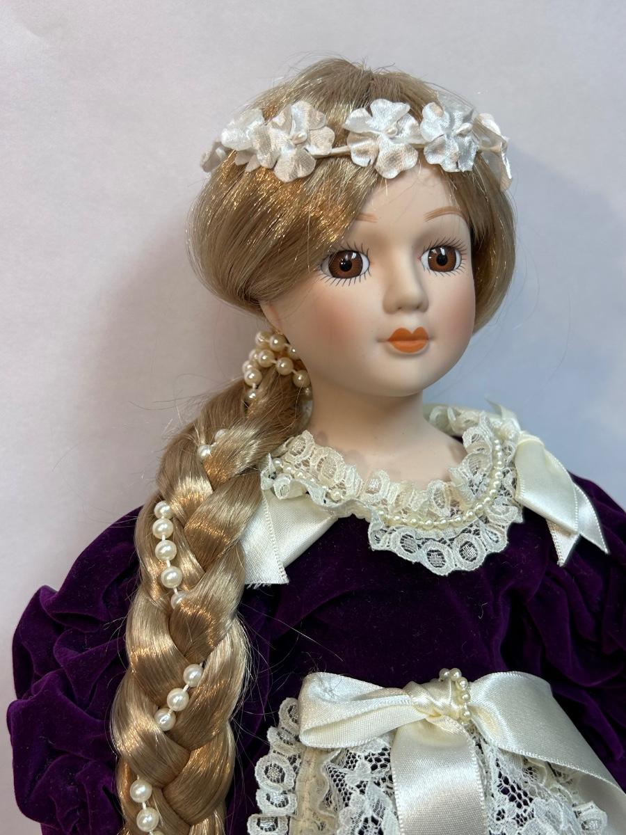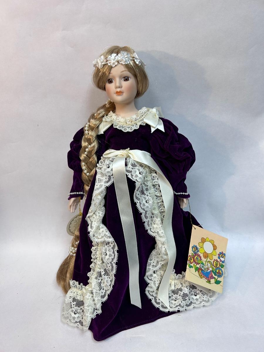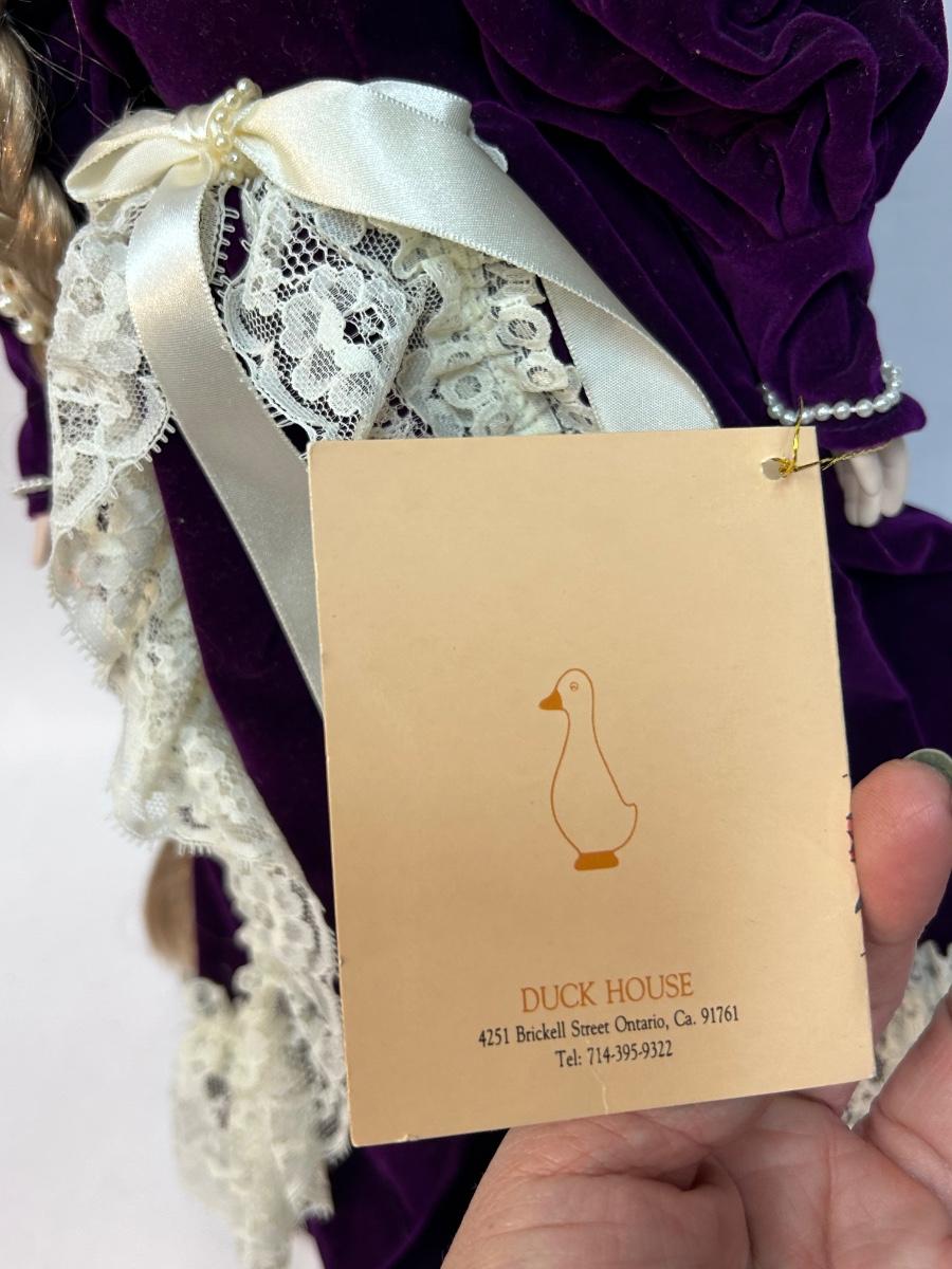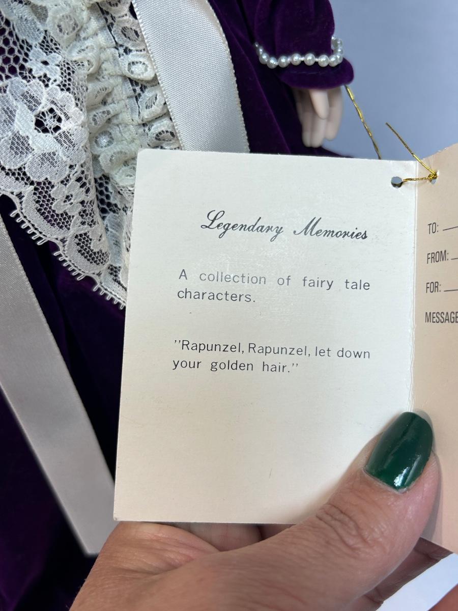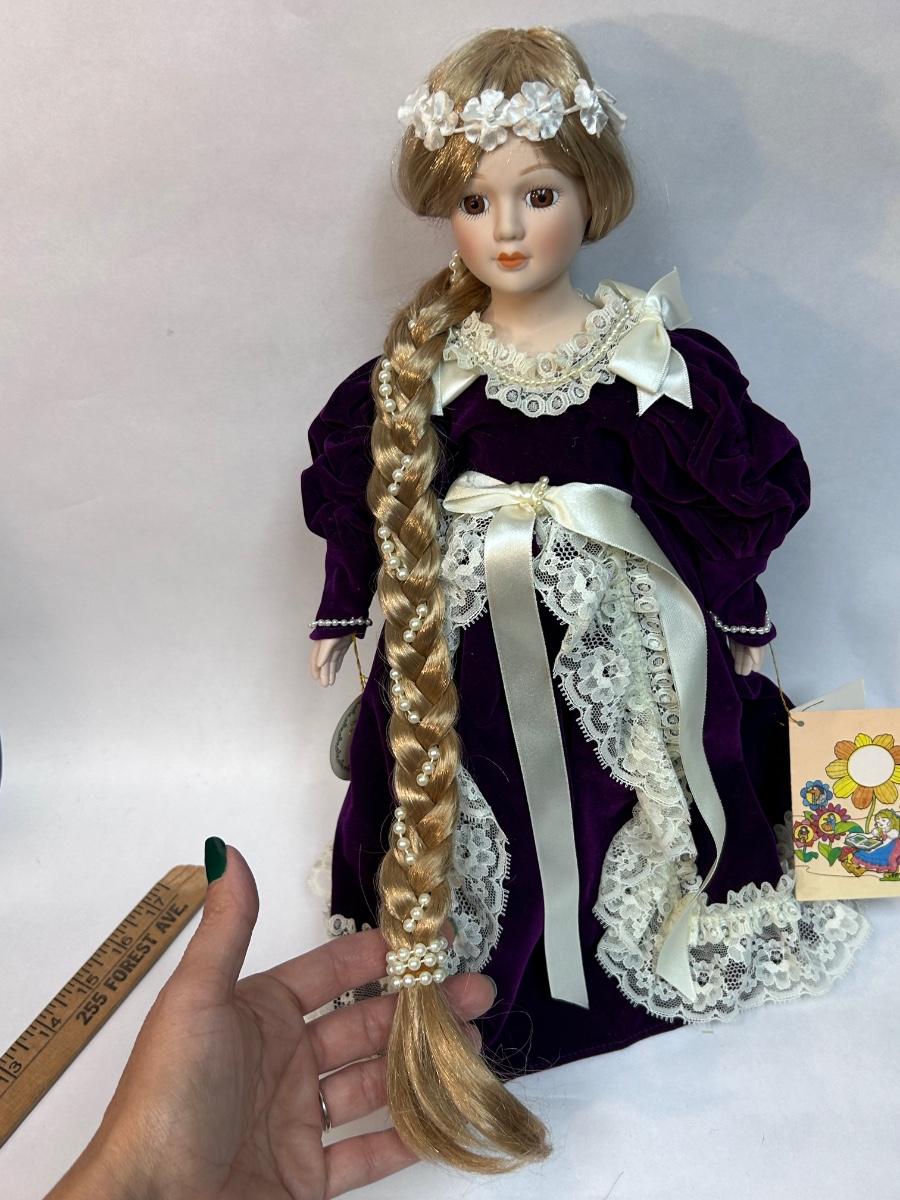 Vintage Duck House Heirloom to Remember Rapunzel Porcelain Doll. In good condition. Has original hang tags attached. About 16" size.