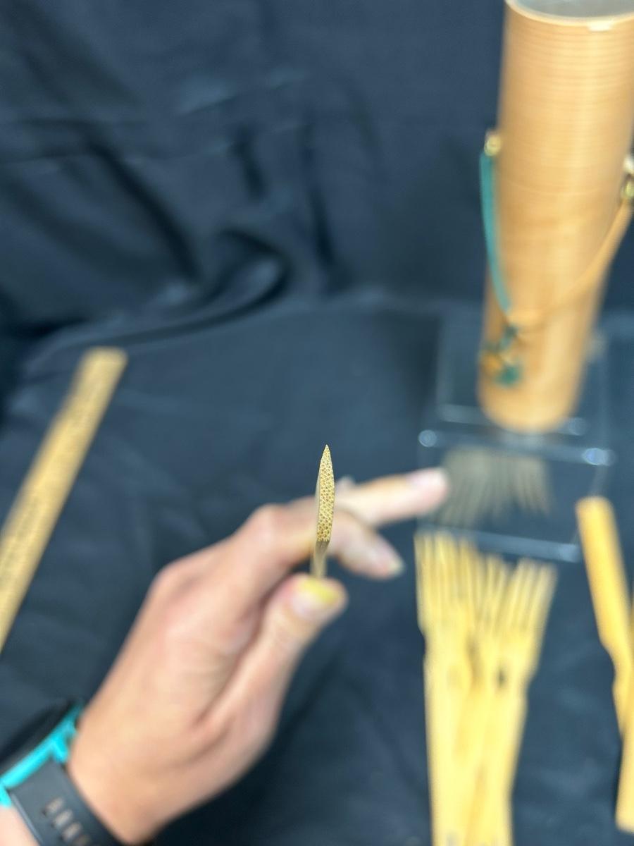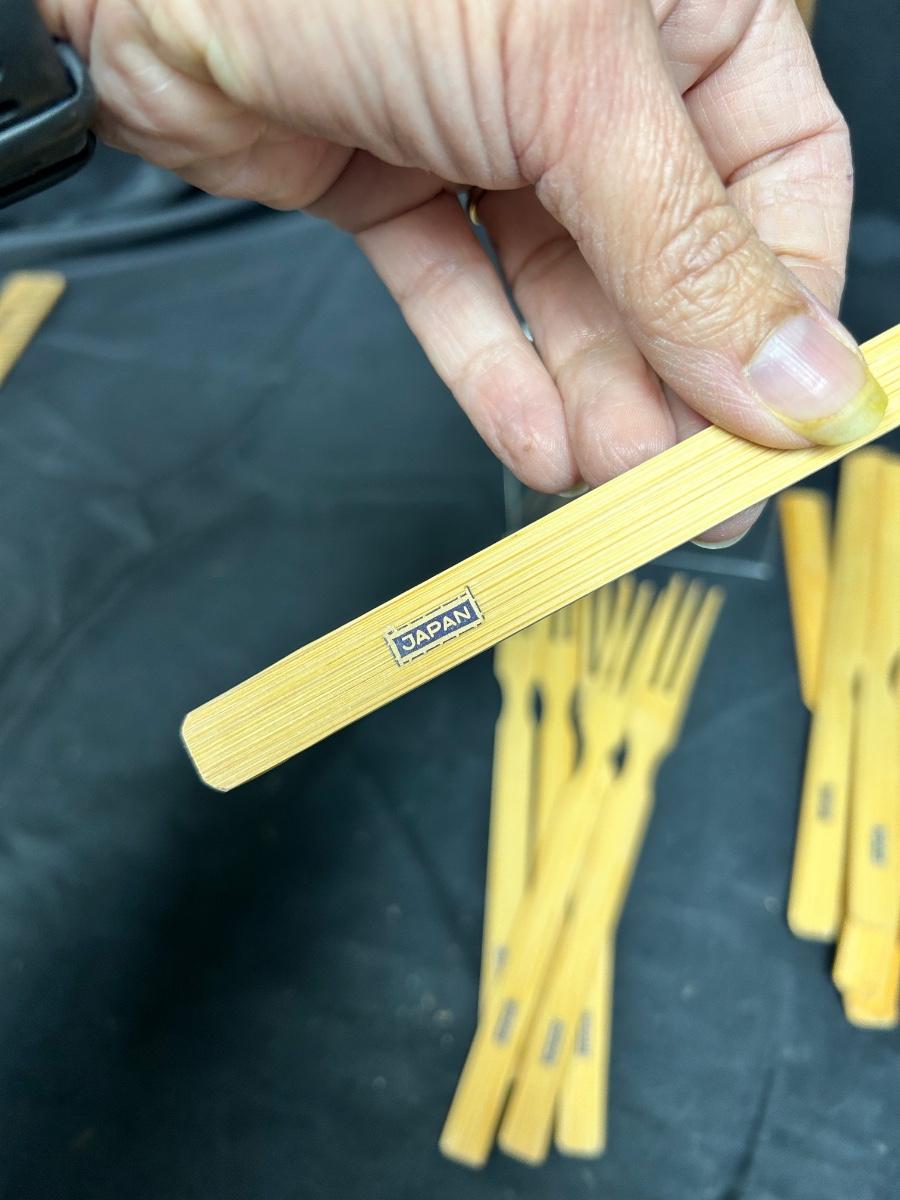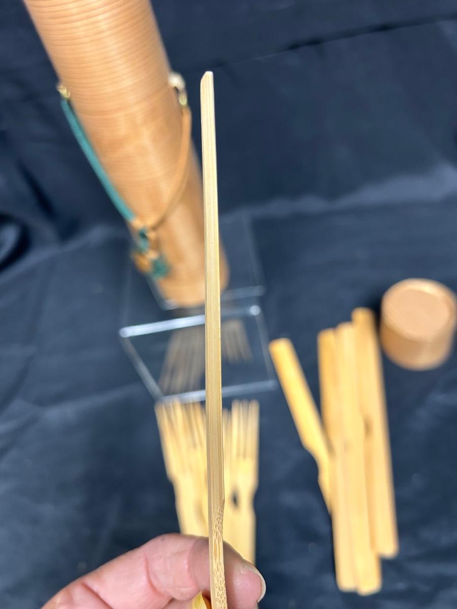 Vintage Retro Bamboo Wood Utensil Set Forks Knives Spoons. Missing one spoon. Knives have a cutting edge, not sure how well they would cut though. Made in Japan.