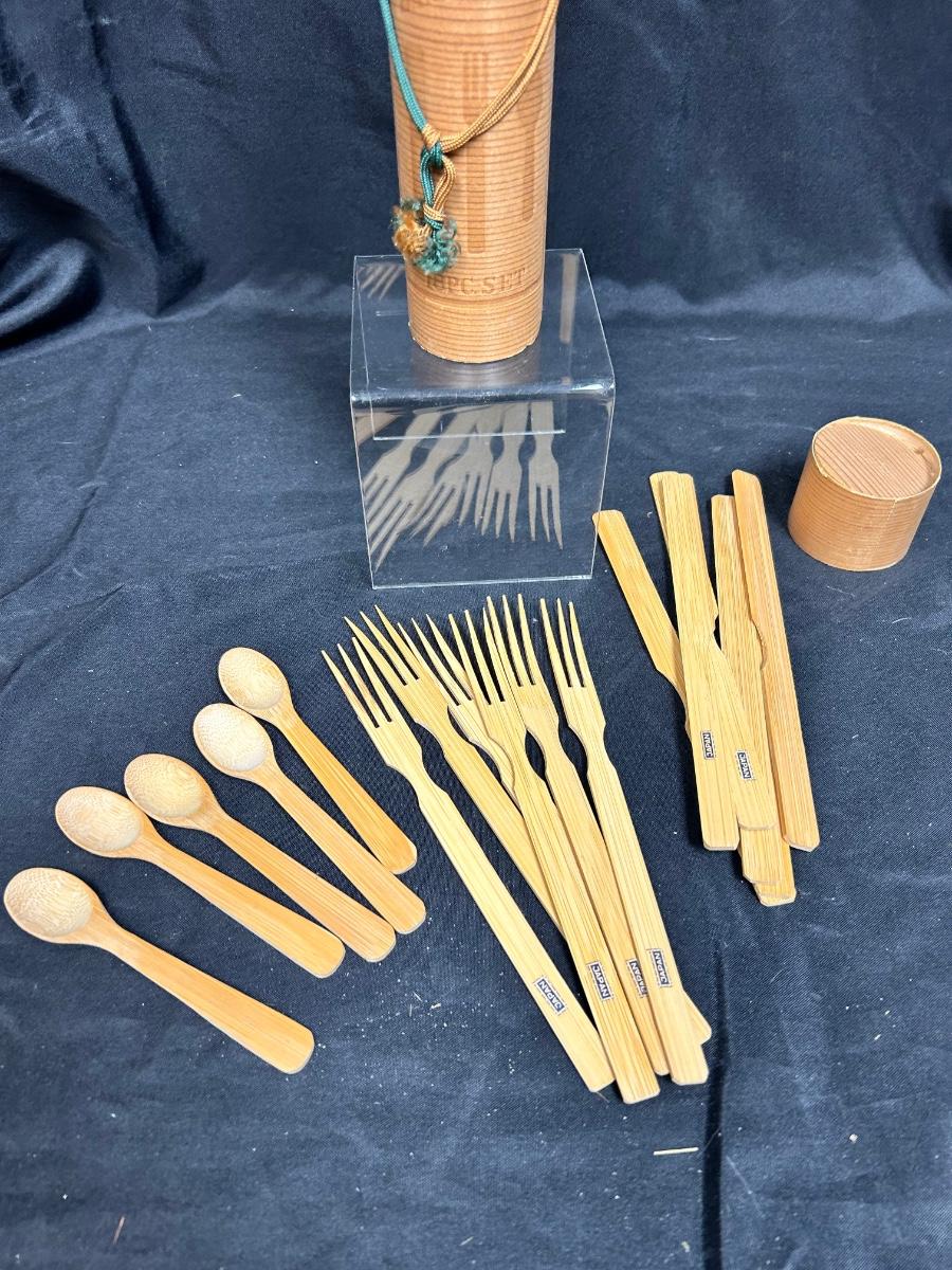 Vintage Retro Bamboo Wood Utensil Set Forks Knives Spoons