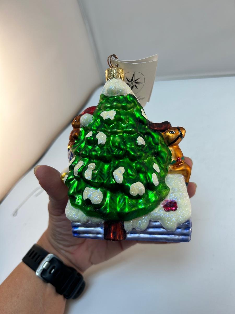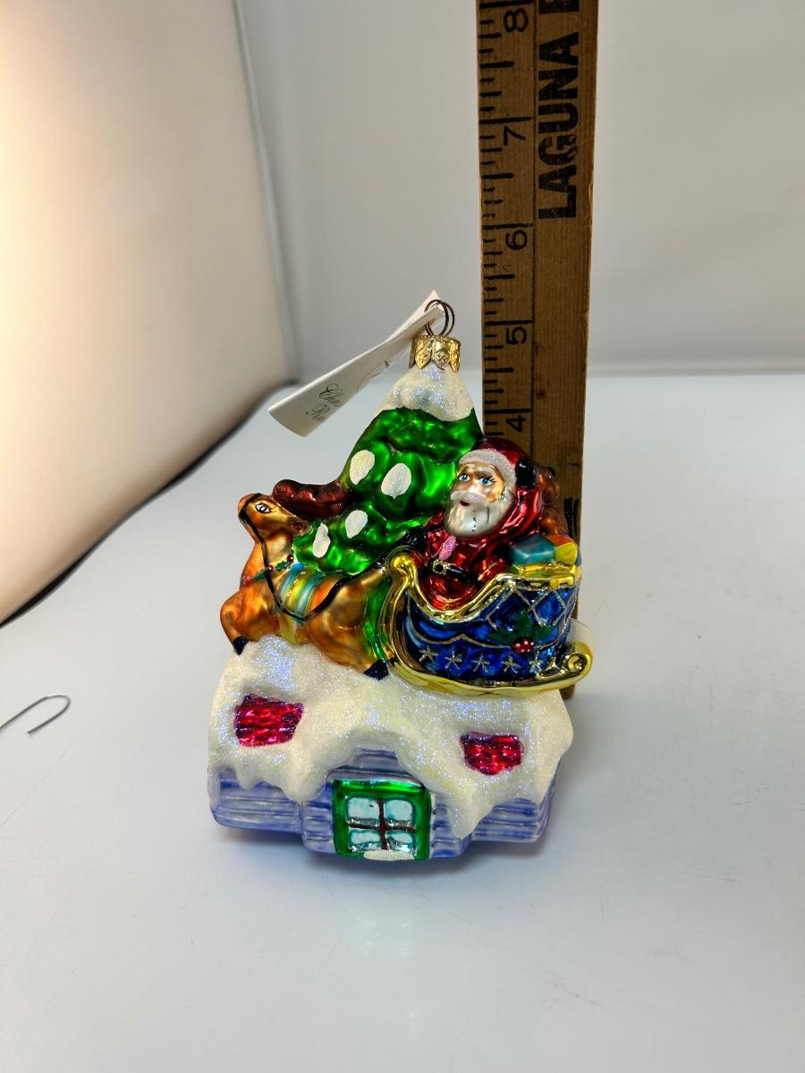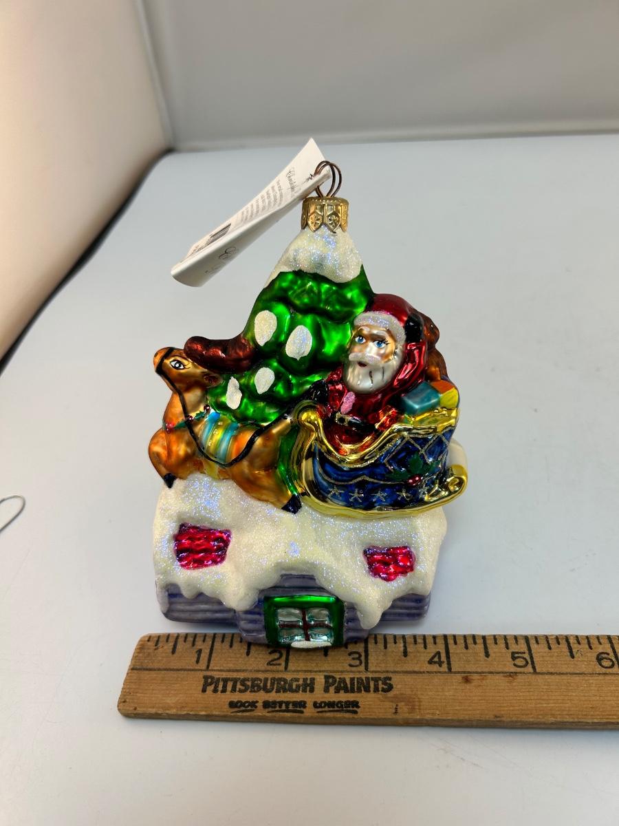 Christopher Radko Blown Mercury Glass Christmas Holiday Tree Ornament with Tag Up On The House Top
