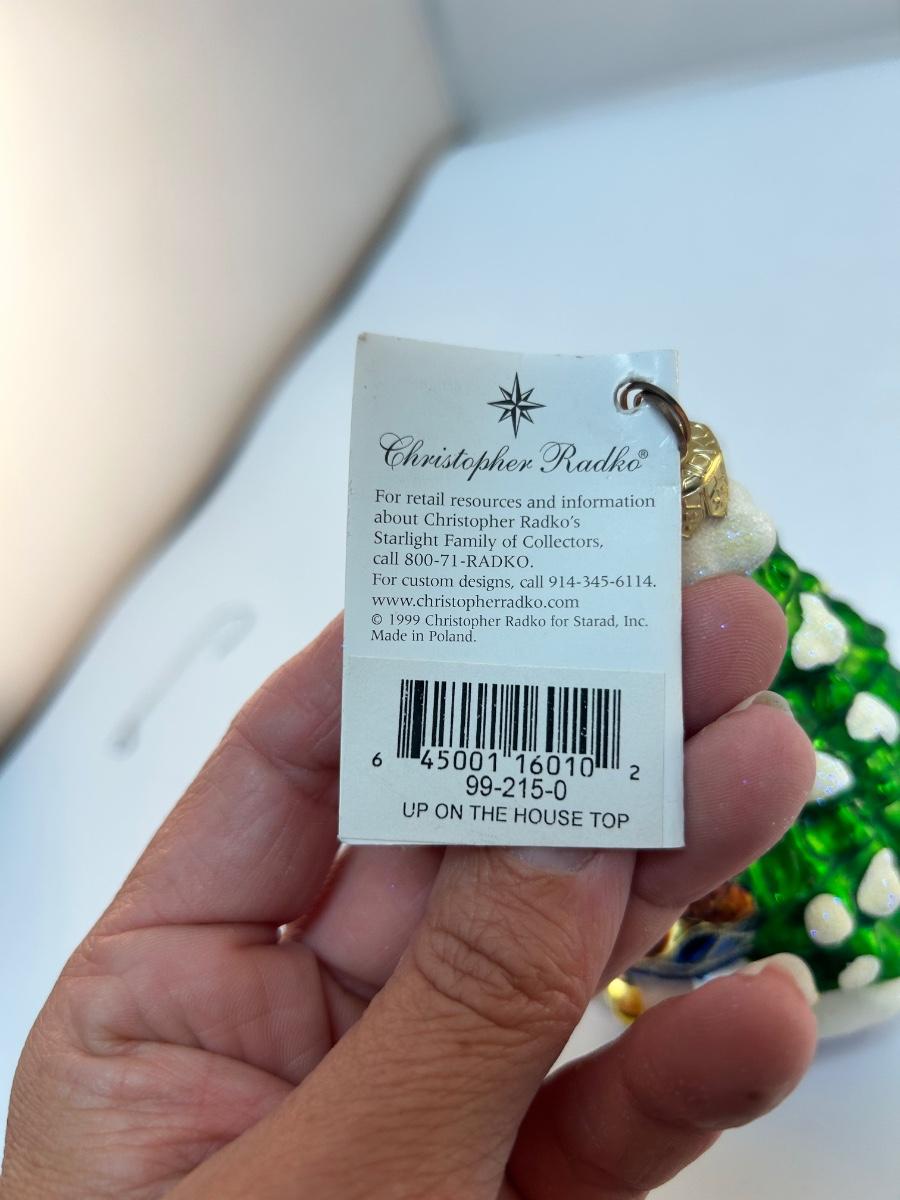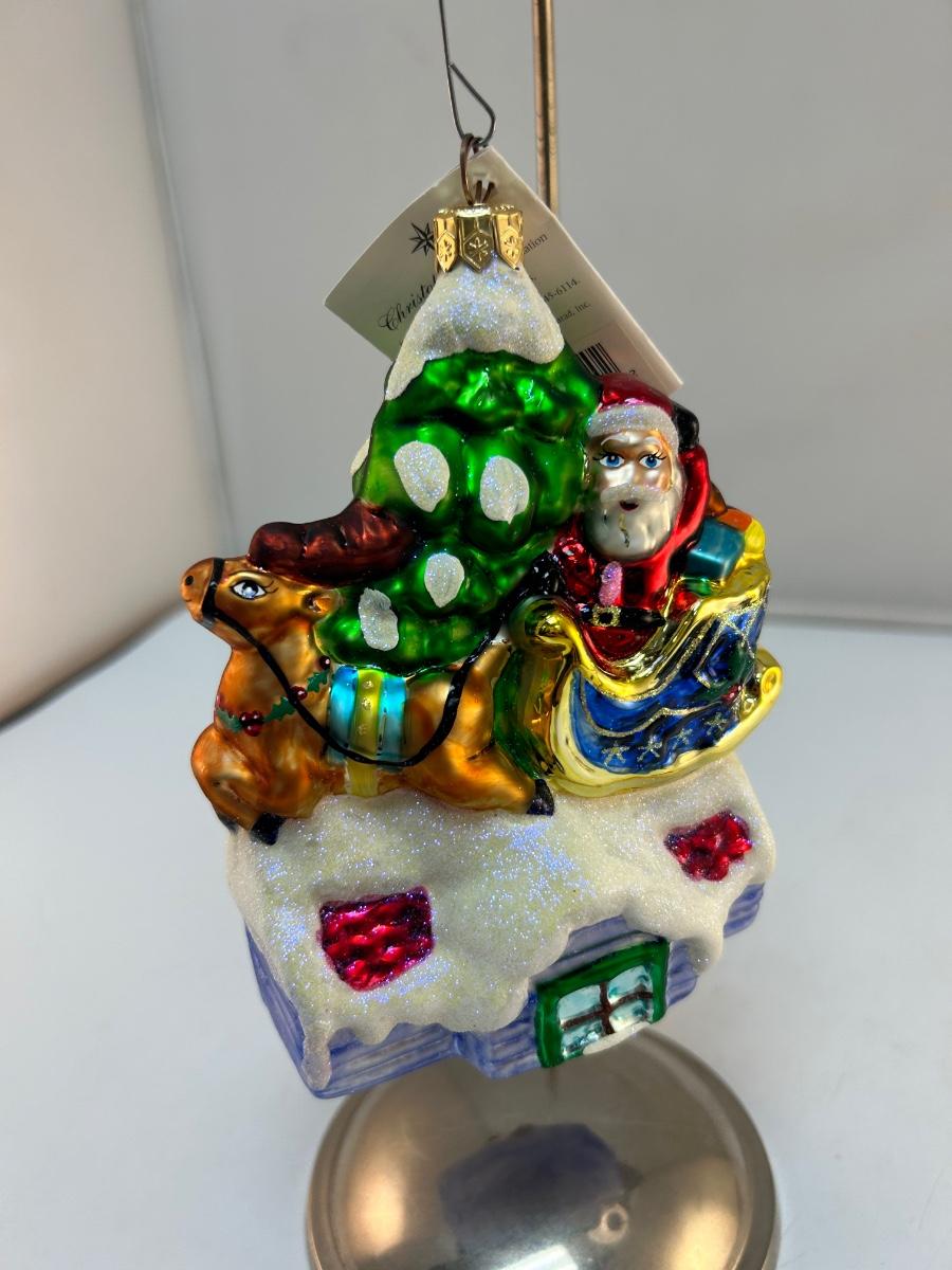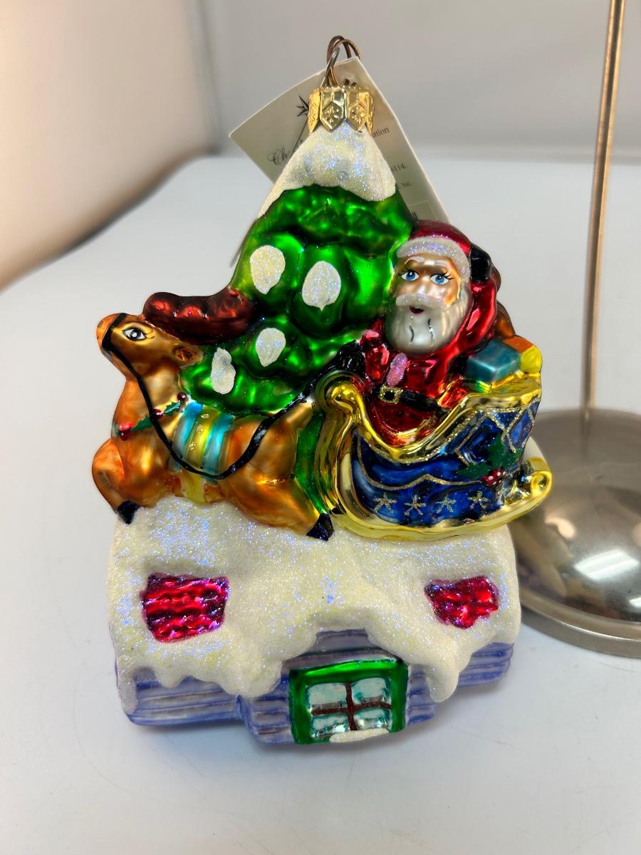 Christopher Radko Blown Mercury Glass Christmas Holiday Tree Ornament with Tag Up On The House Top