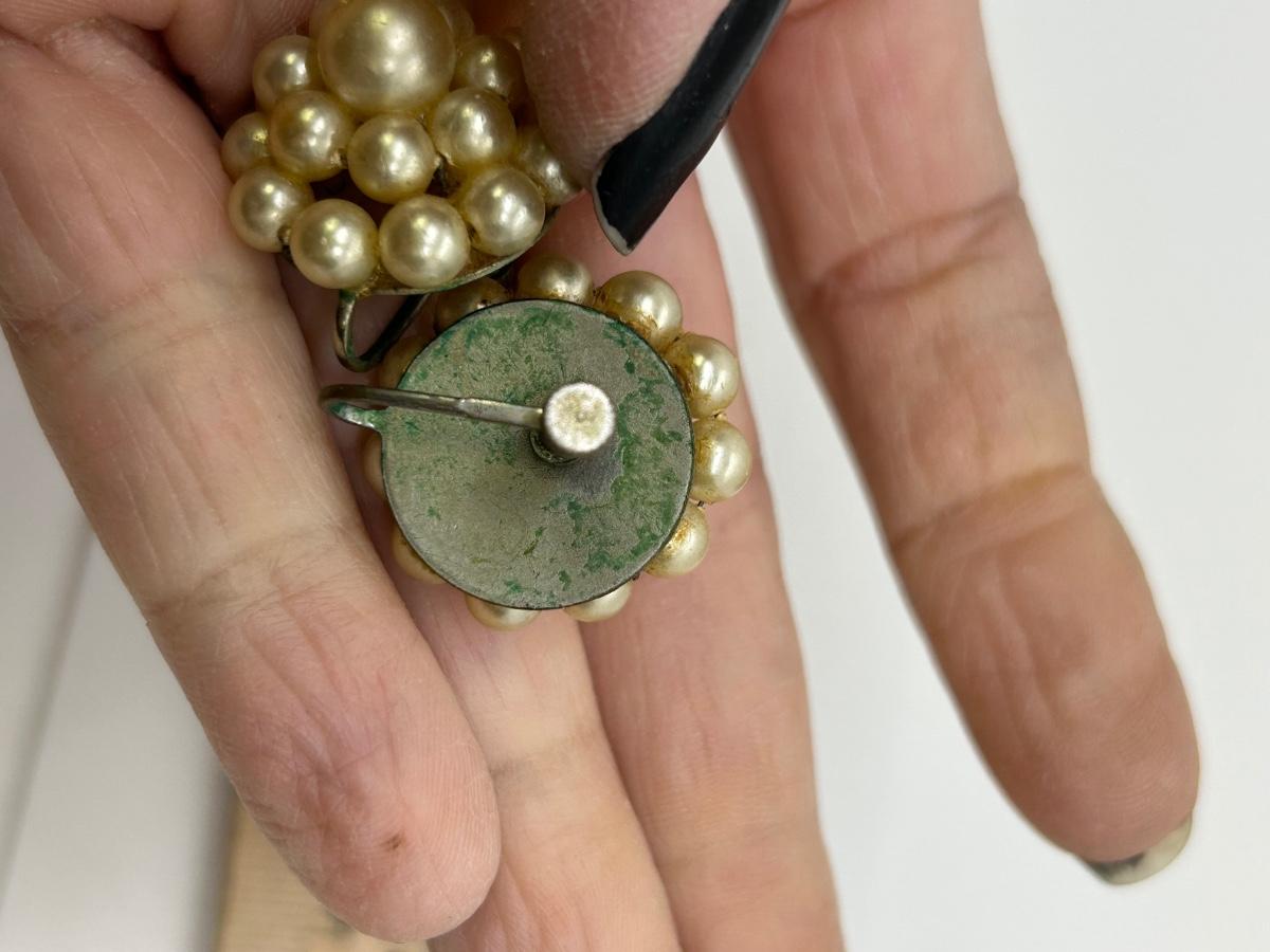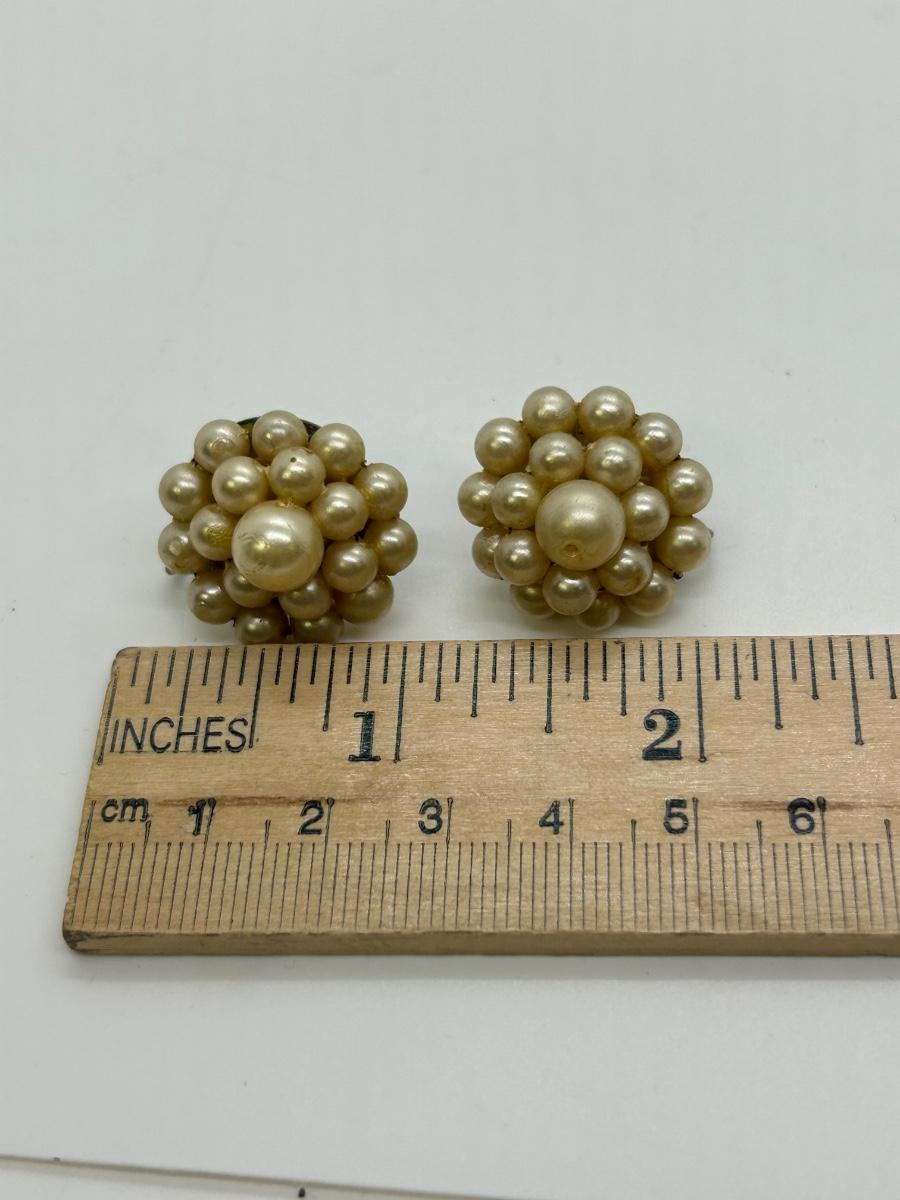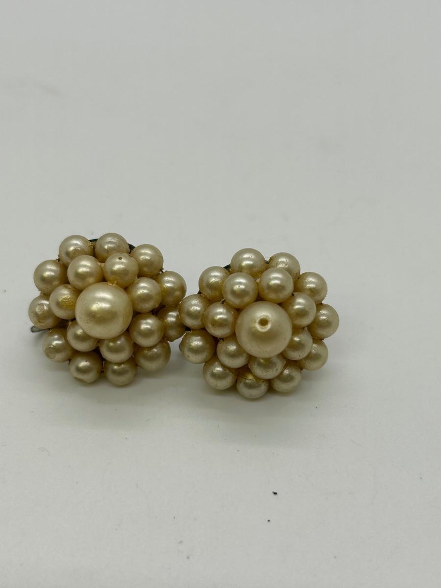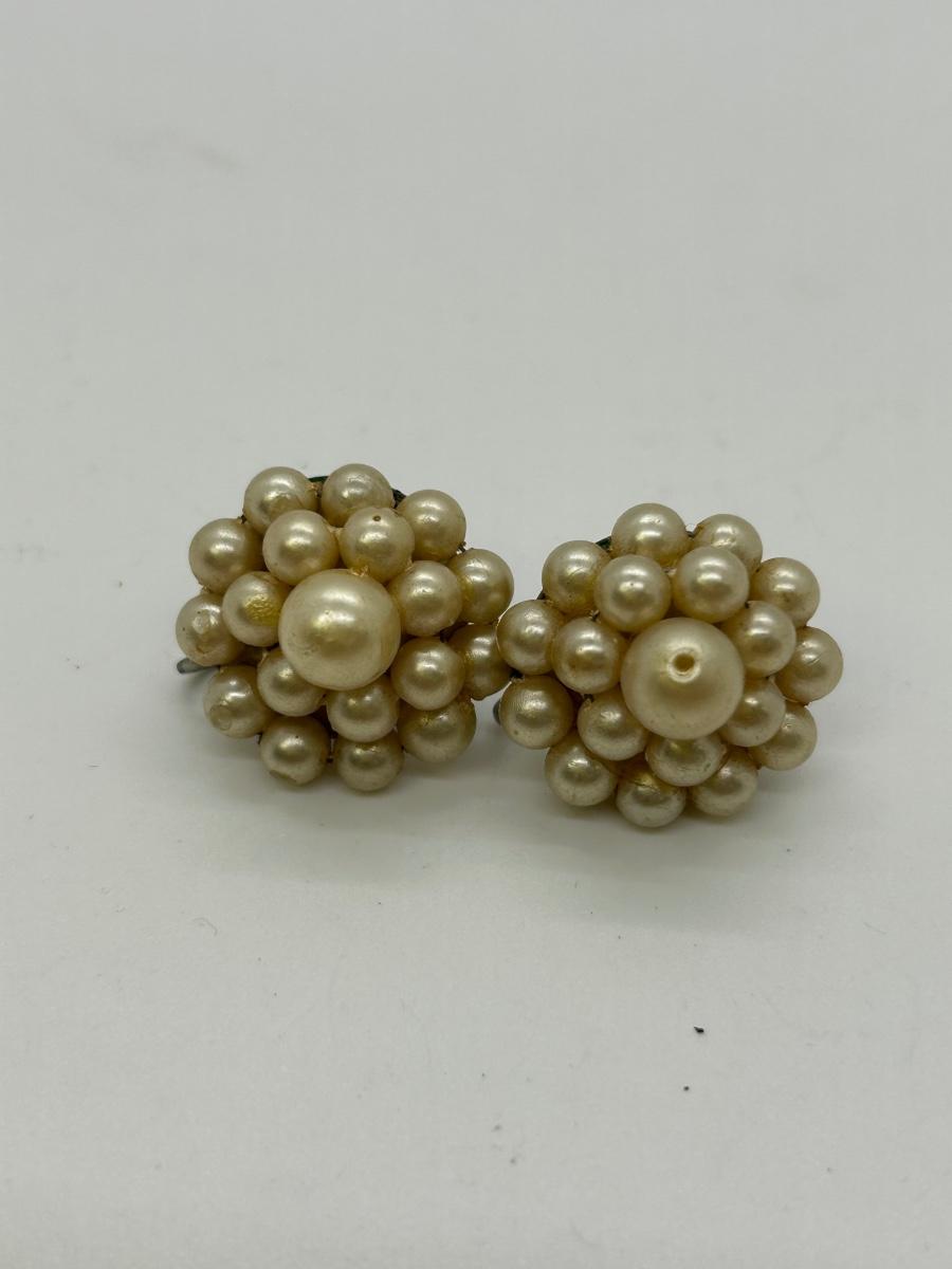 Vintage Faux Pearl Beaded Cluster Button Earrings Screw Back Style. In good condition. The center bead on one is turned a bit and you can see the threading hole, might be able to pop off and reglue so it is not noticed.