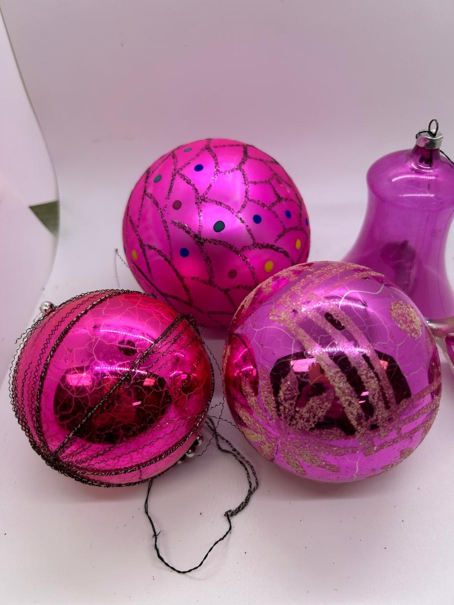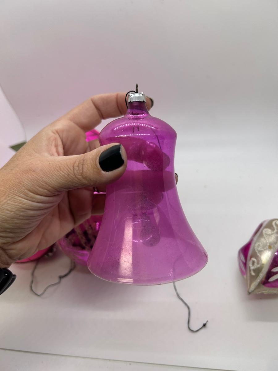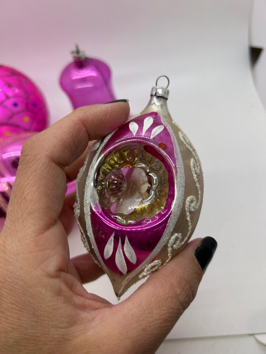 Mixed Style Lot of Vintage Pink Blown Glass Christmas Holiday Tree Ornaments