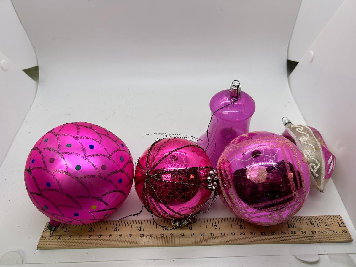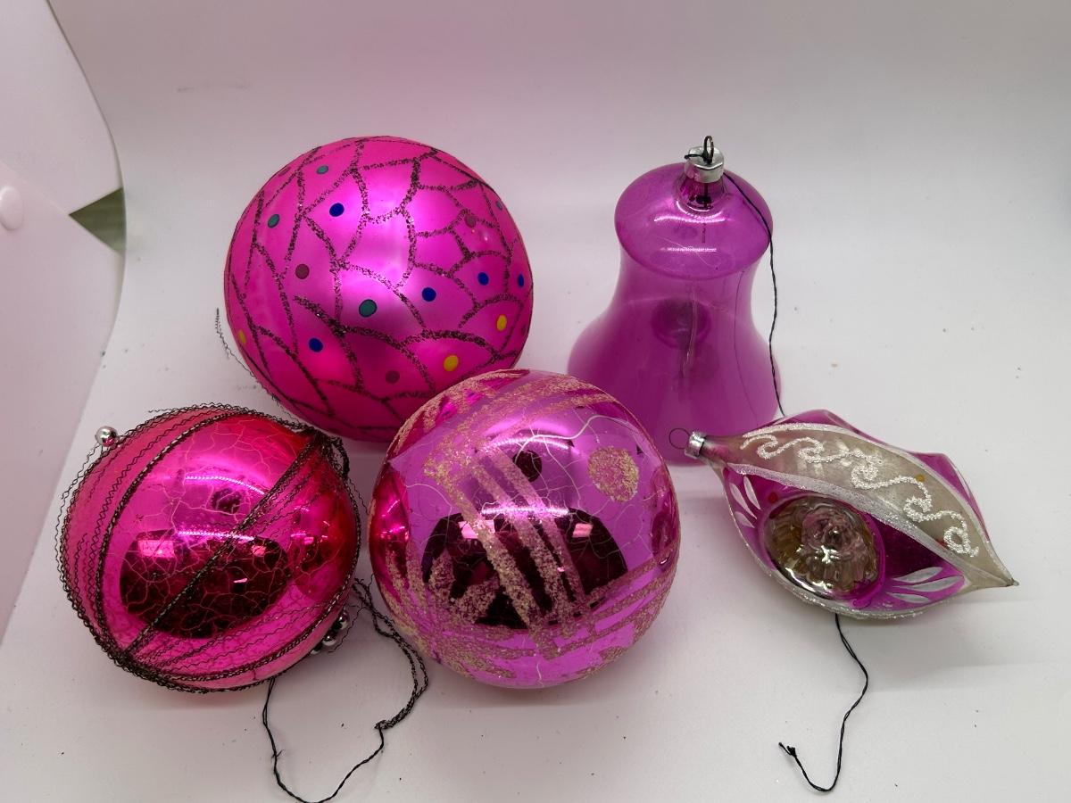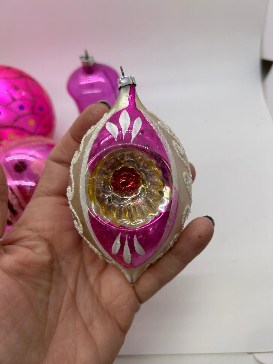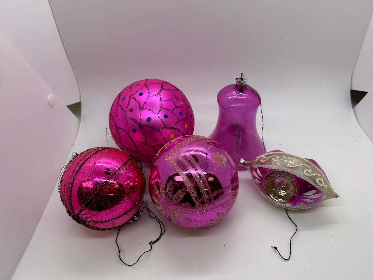 Mixed Style Lot of Vintage Pink Blown Glass Christmas Holiday Tree Ornaments