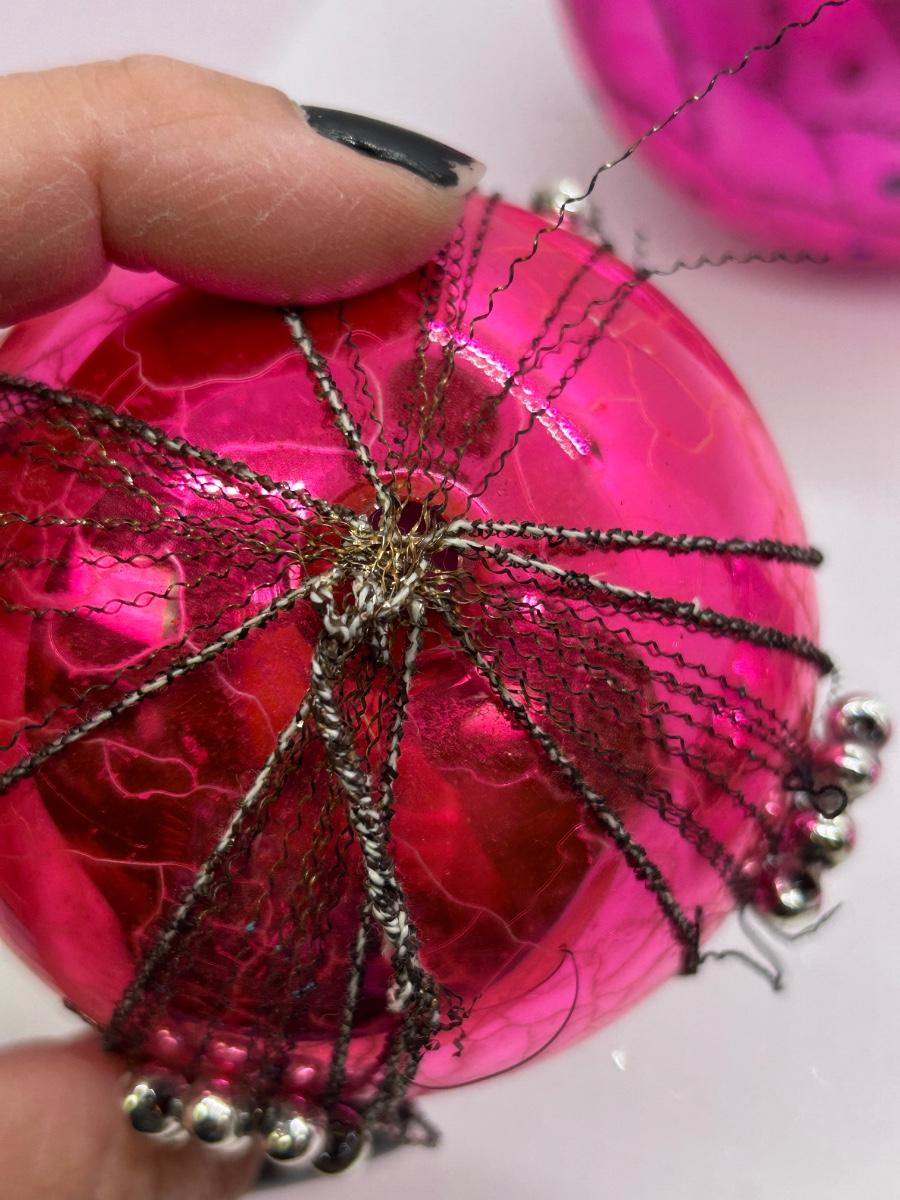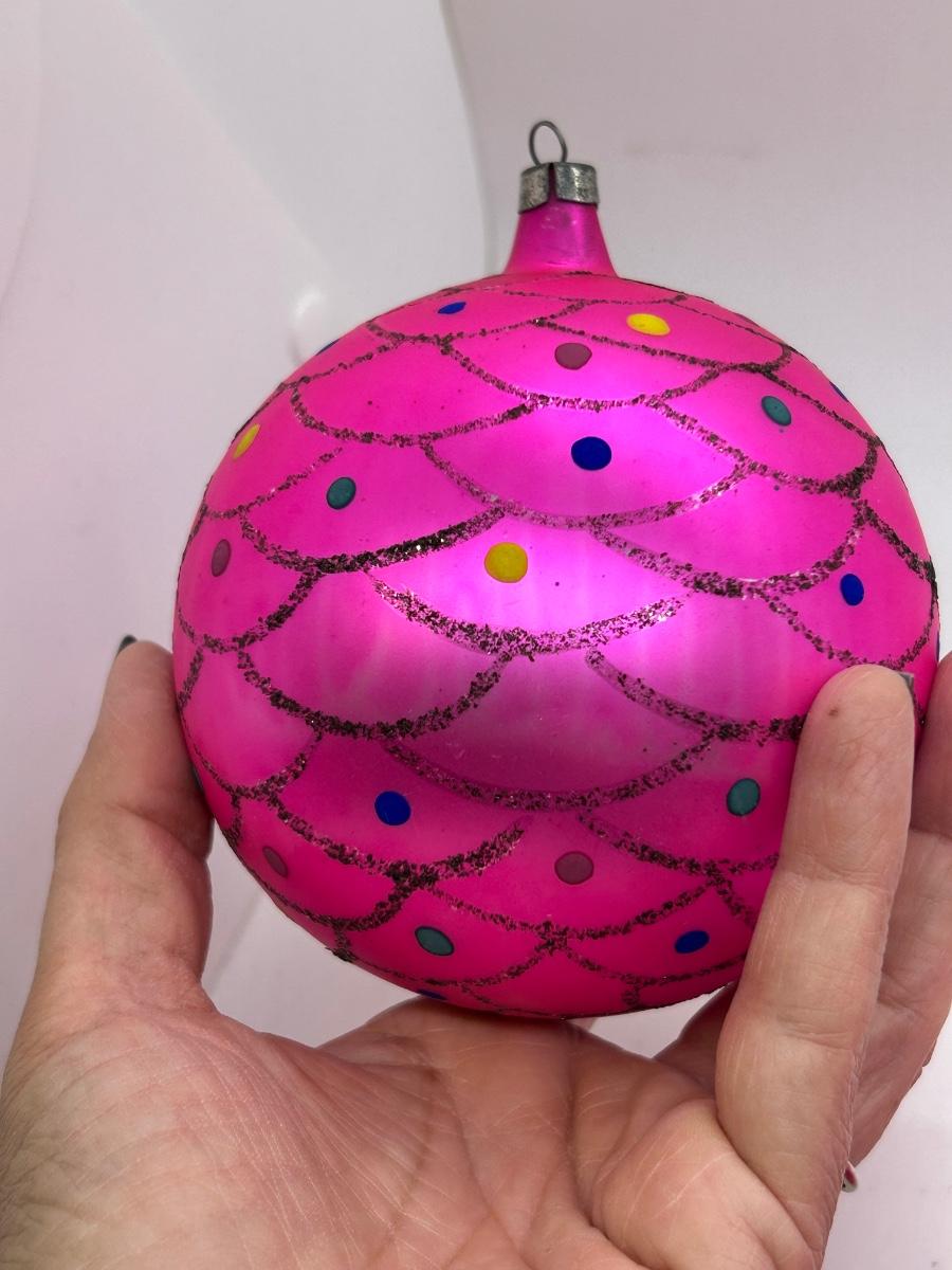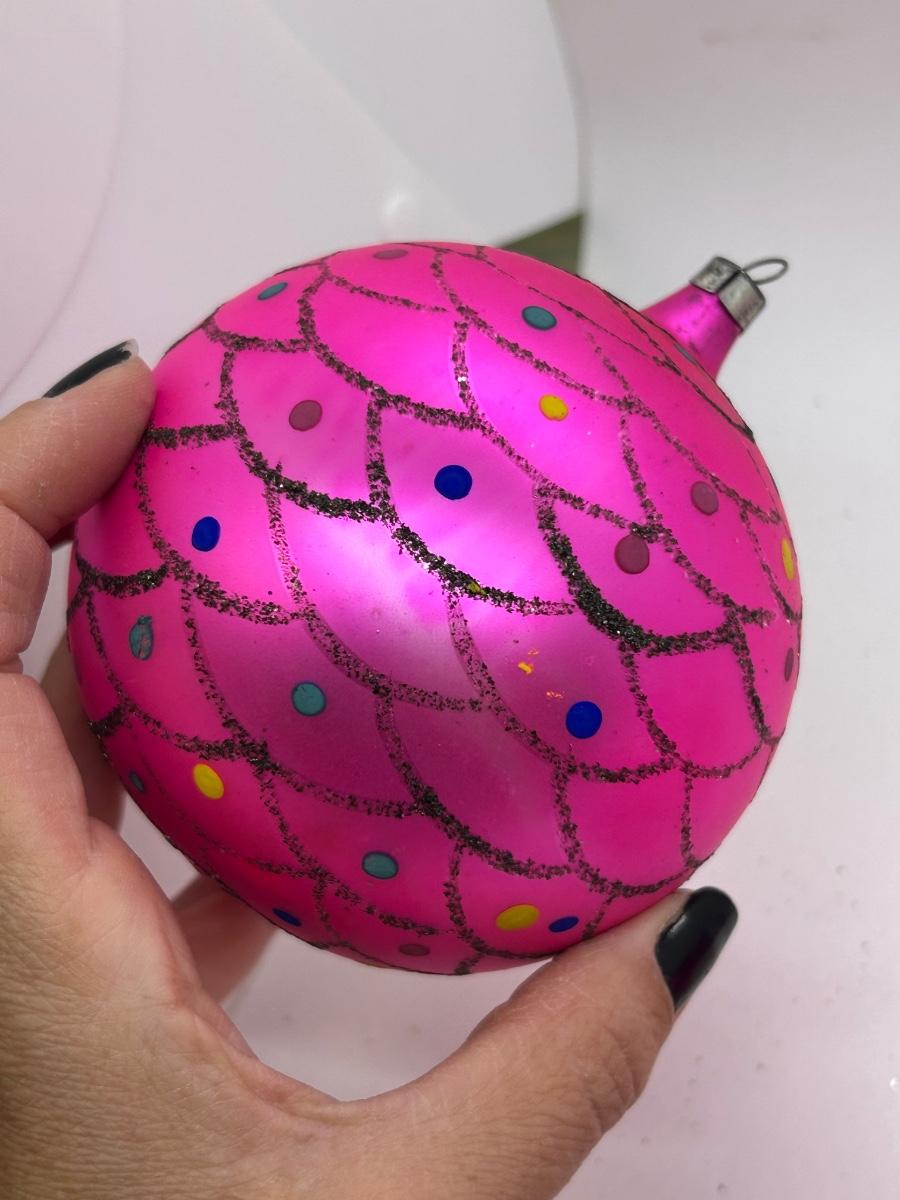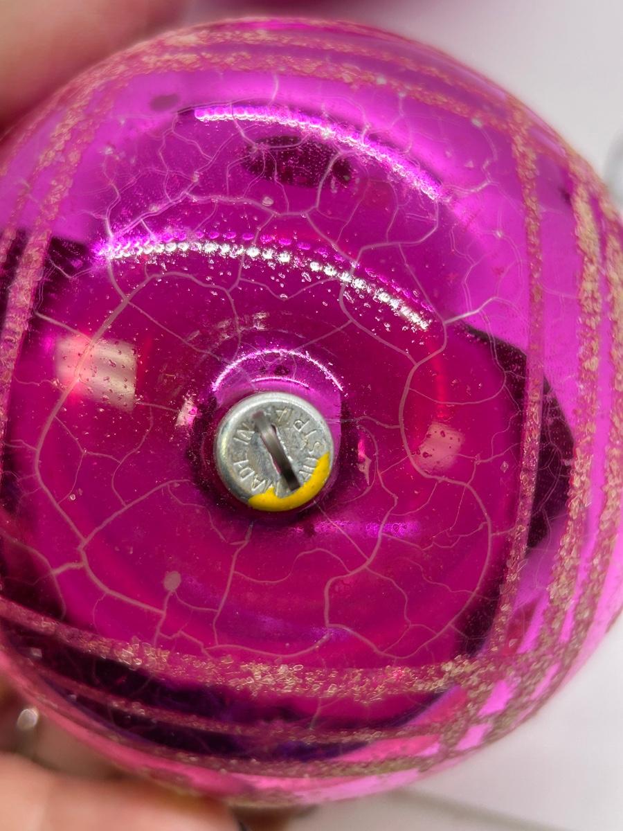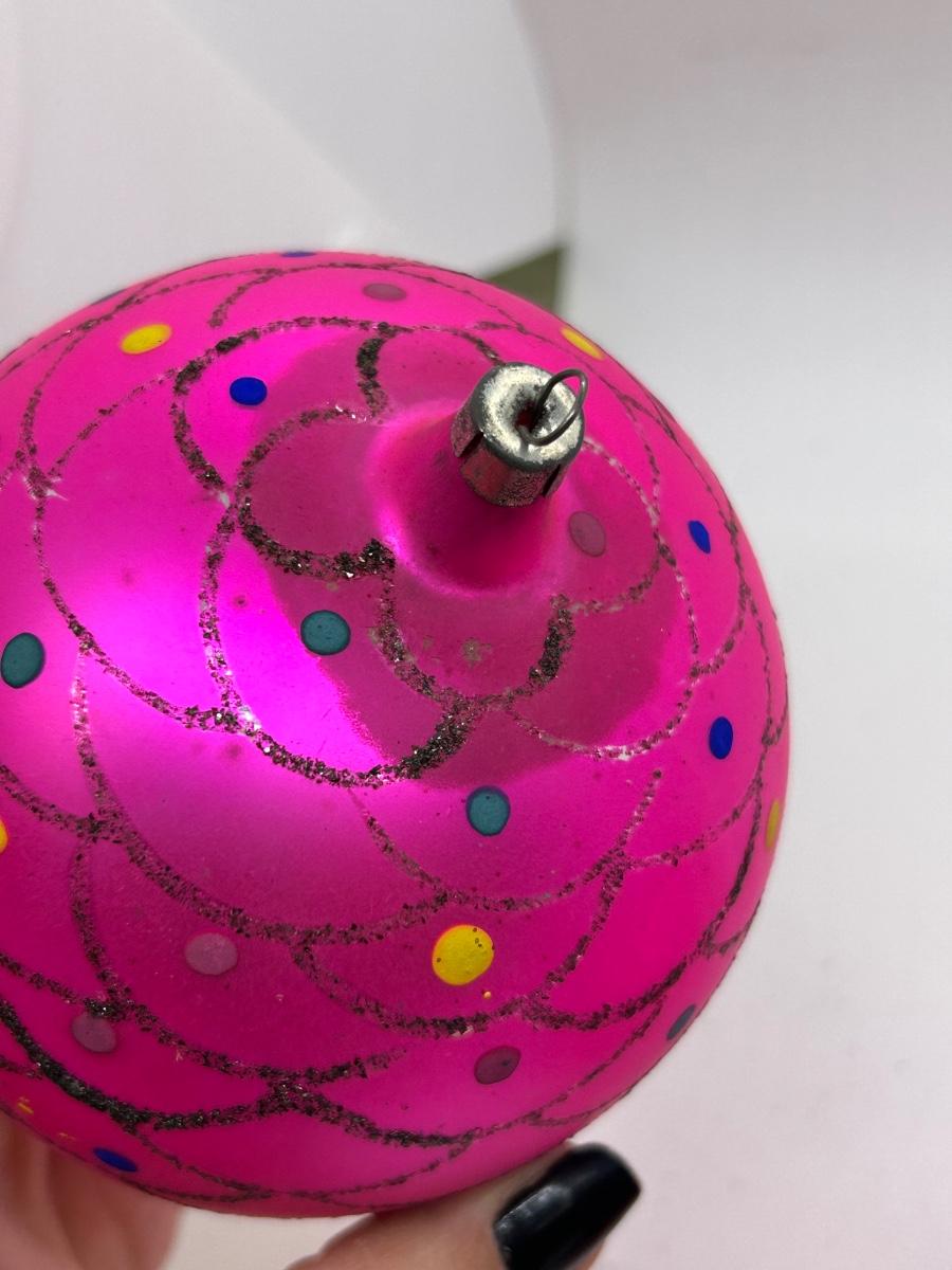 Mixed Style Lot of Vintage Pink Blown Glass Christmas Holiday Tree Ornaments. In vintage condition. Wear from age. The wire wrapped ornament and the indent one have the most wear and damage, see photos.