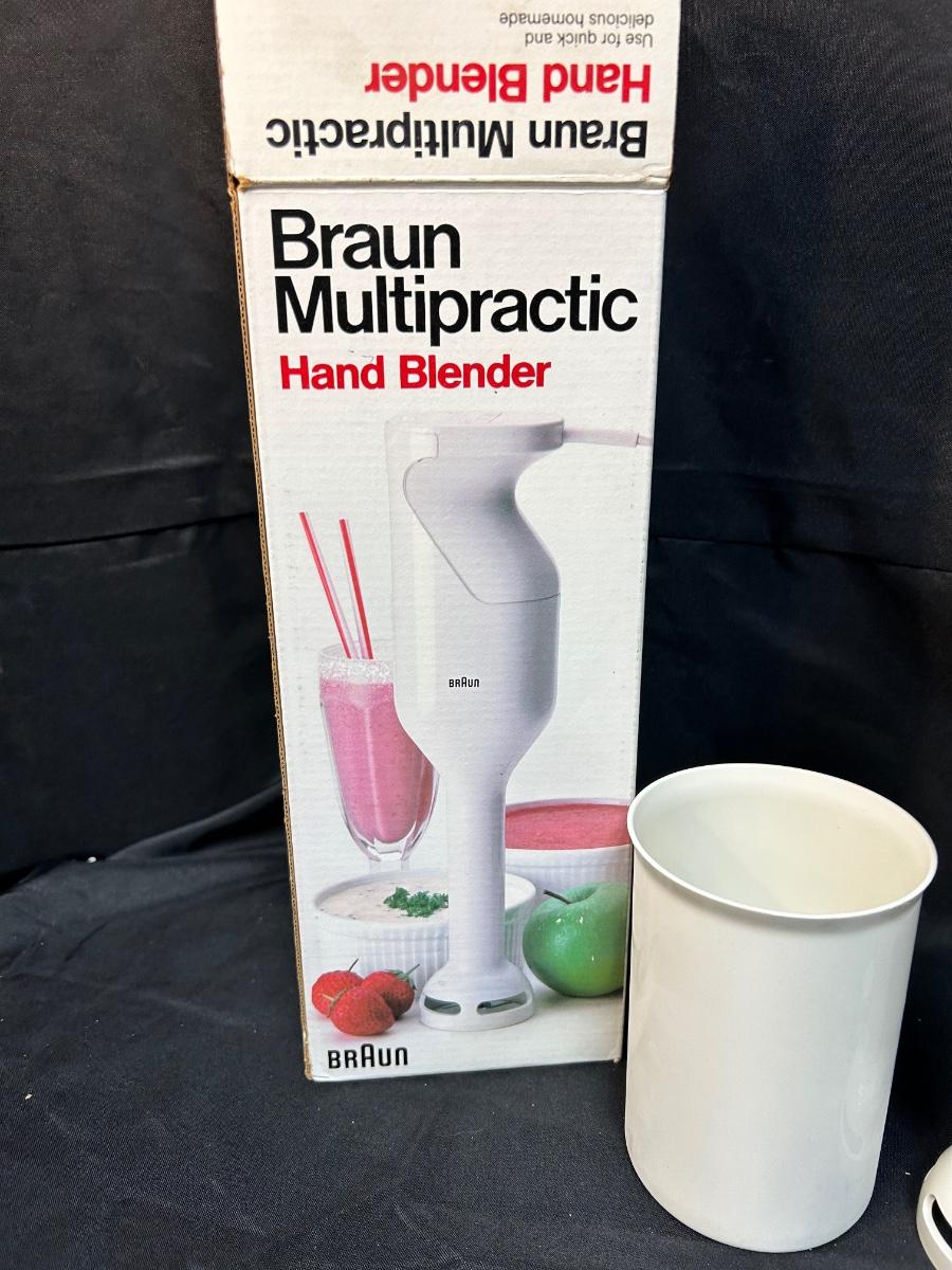 Braun Multipractic Hand Blender with Accessories and Box. Works. In good condition.