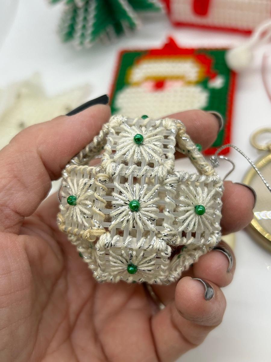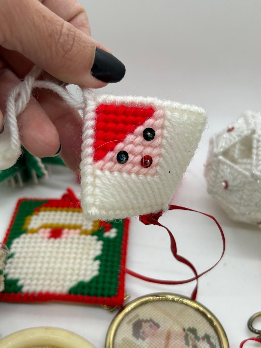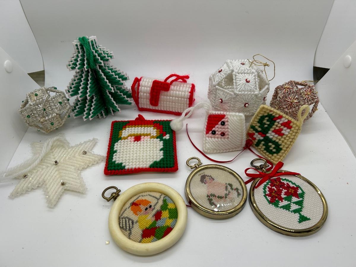 Mixed Lot of Retro Cross Stitch Needlepoint Christmas Holiday Tree Ornaments. In good previously displayed condition.