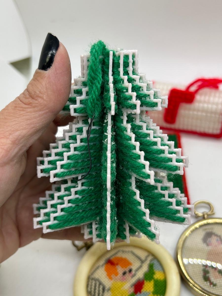 Mixed Lot of Retro Cross Stitch Needlepoint Christmas Holiday Tree Ornaments