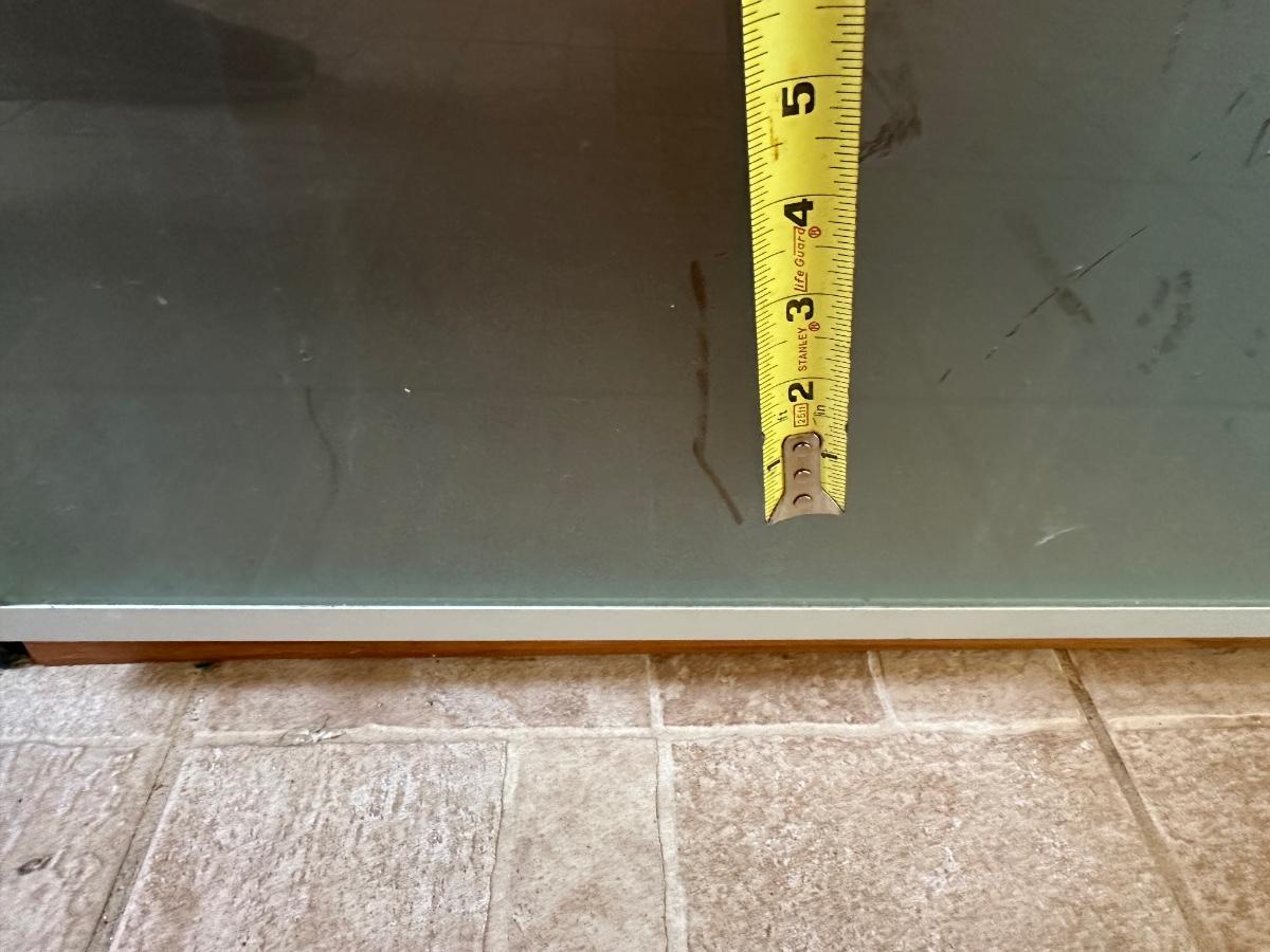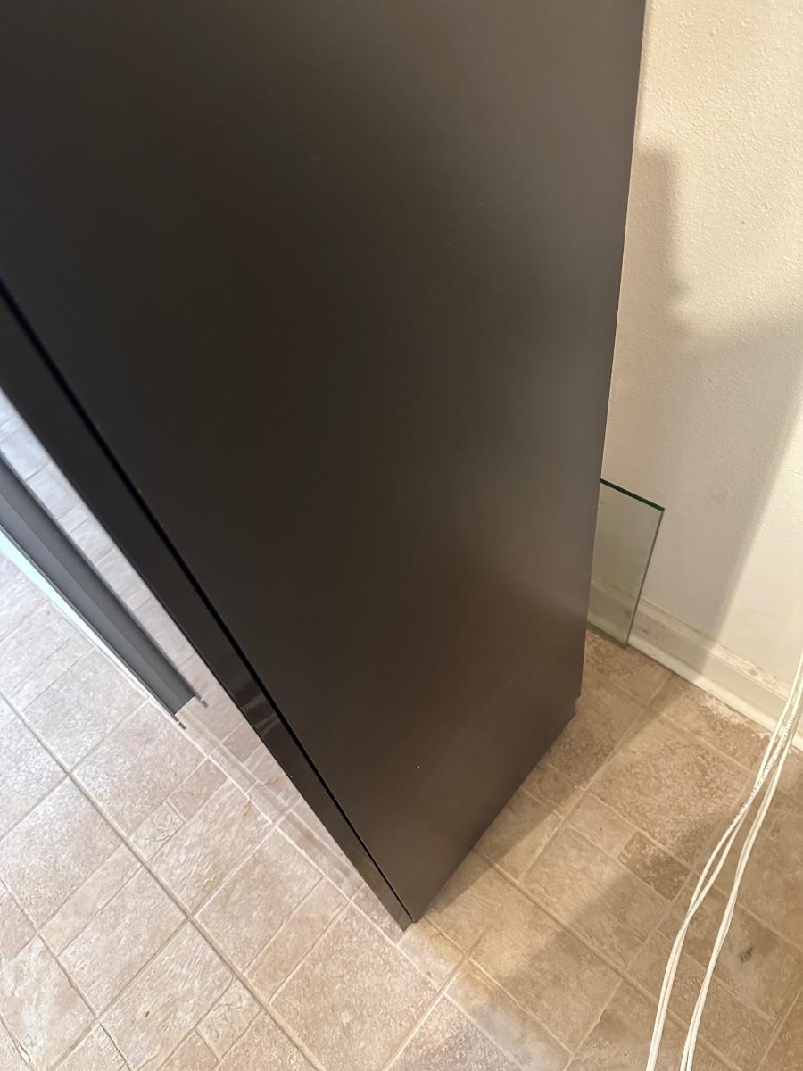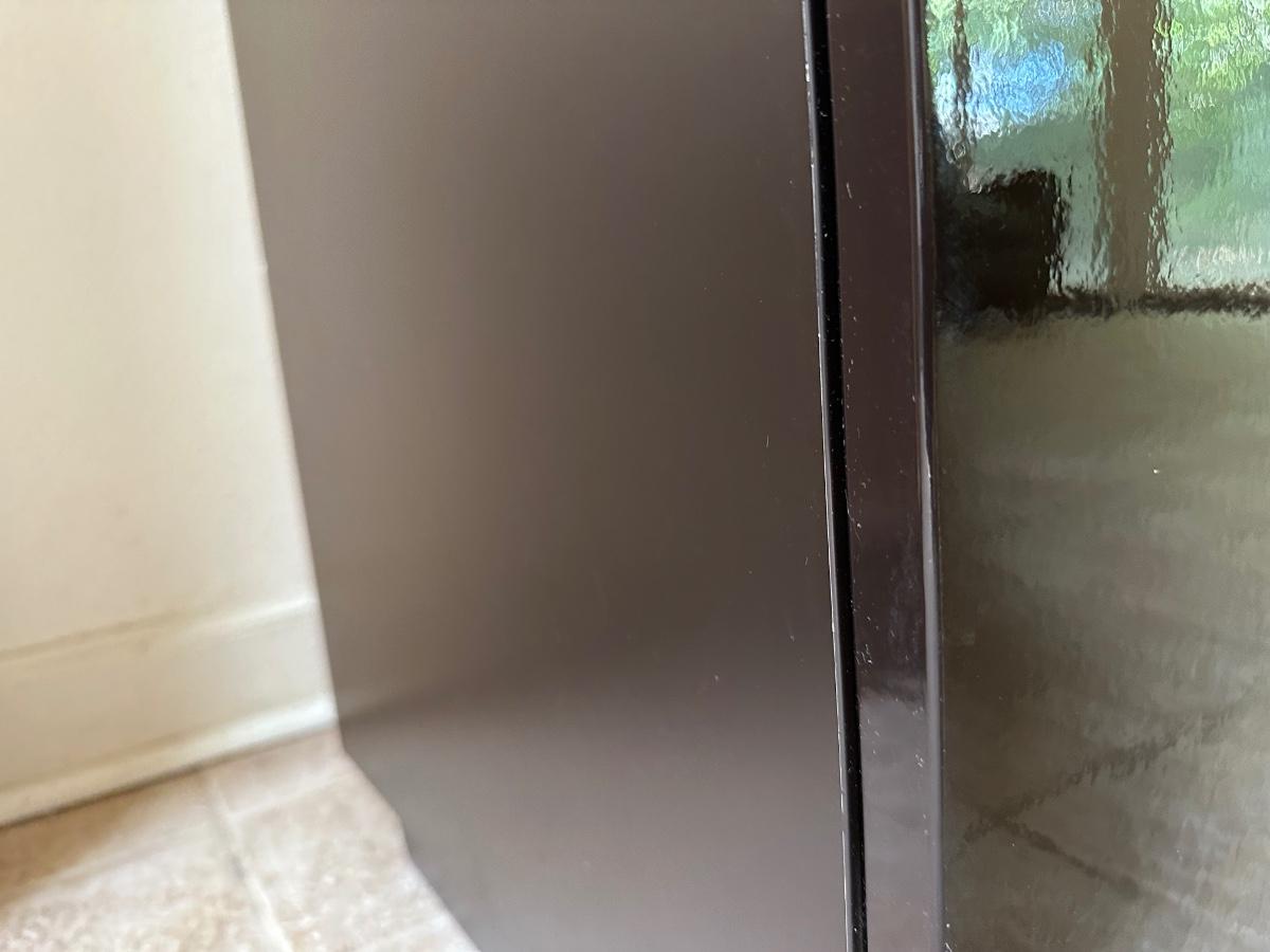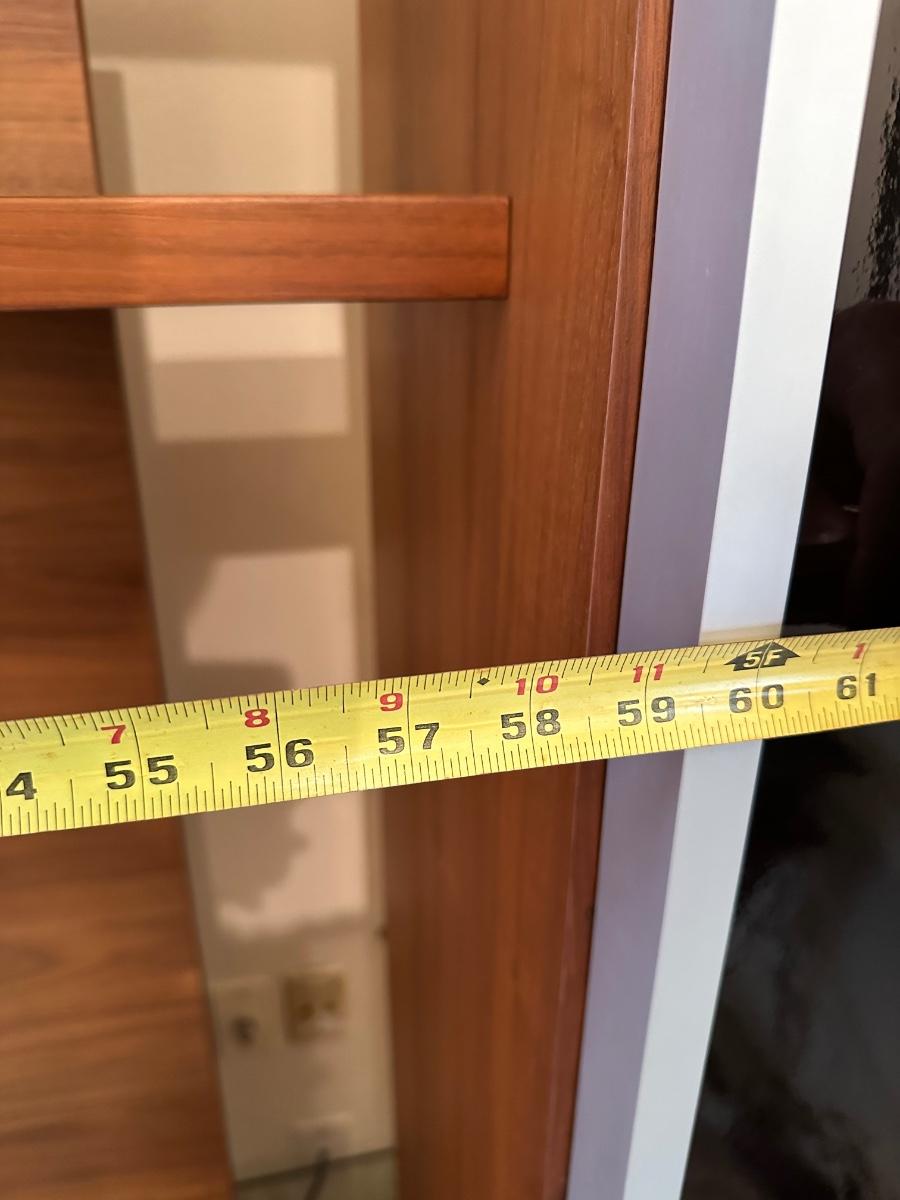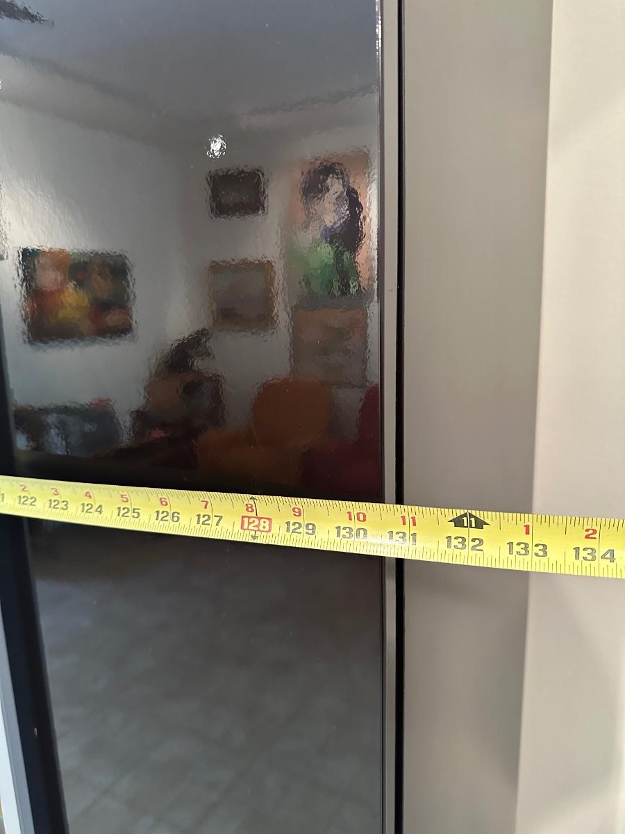 Tall frosted glass door doesn’t stay shut (needs to have hinges adjusted)