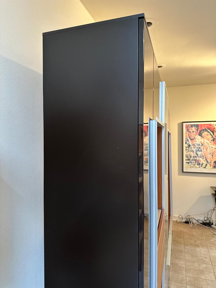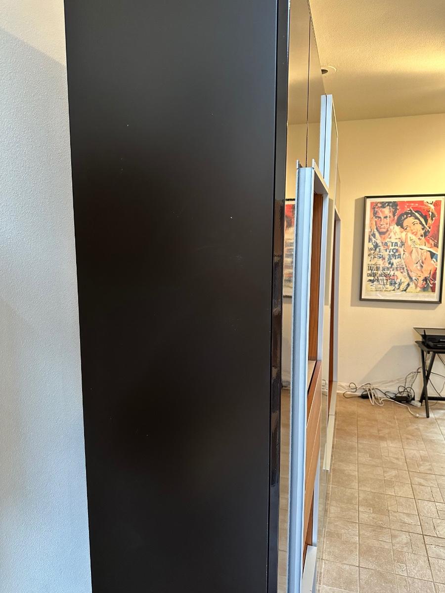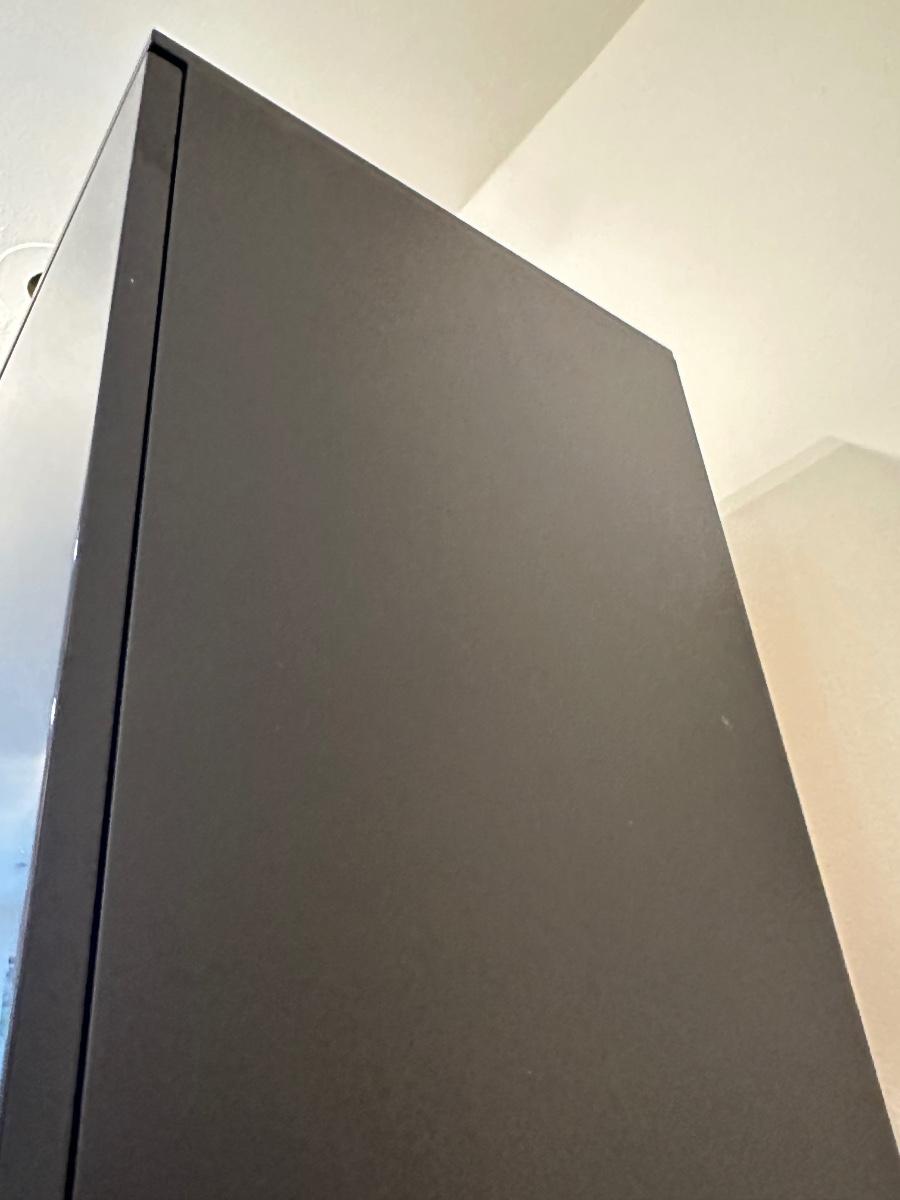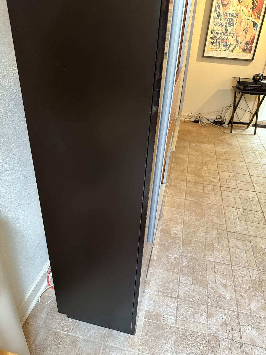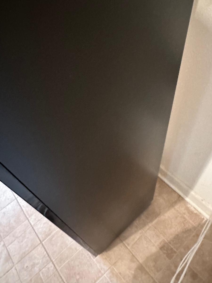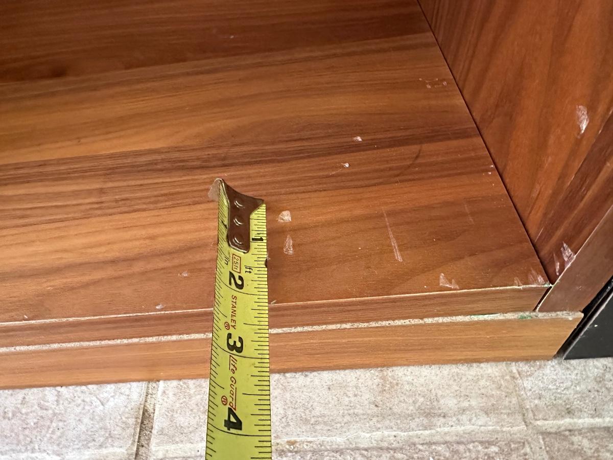 Tall frosted glass door doesn’t stay shut (needs to have hinges adjusted)
