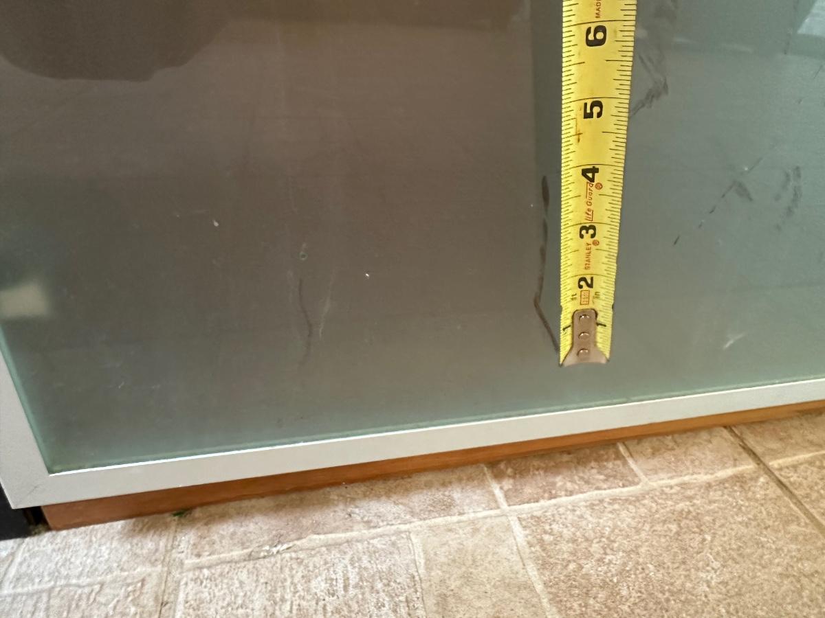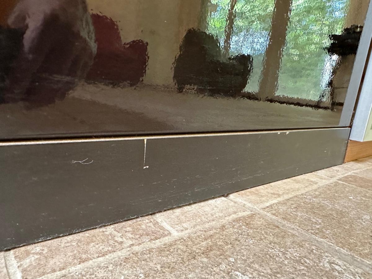 The door also has some marks near the bottom on the frosted glass.