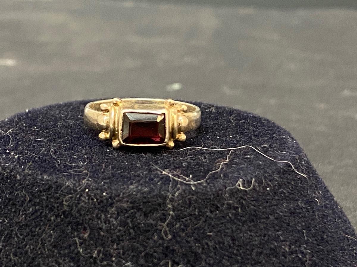 Small Dainty Sterling Silver & Garnet Ring Size 6