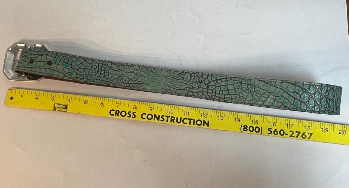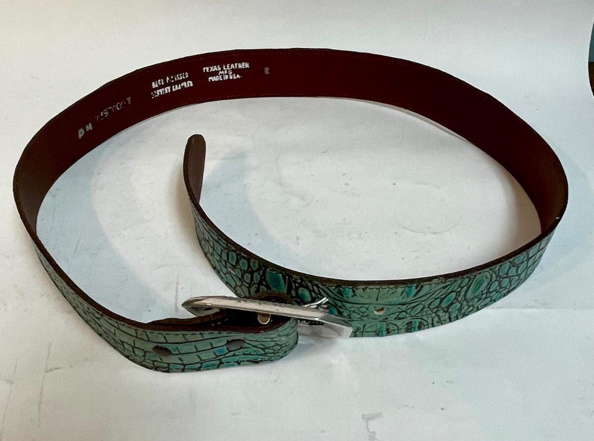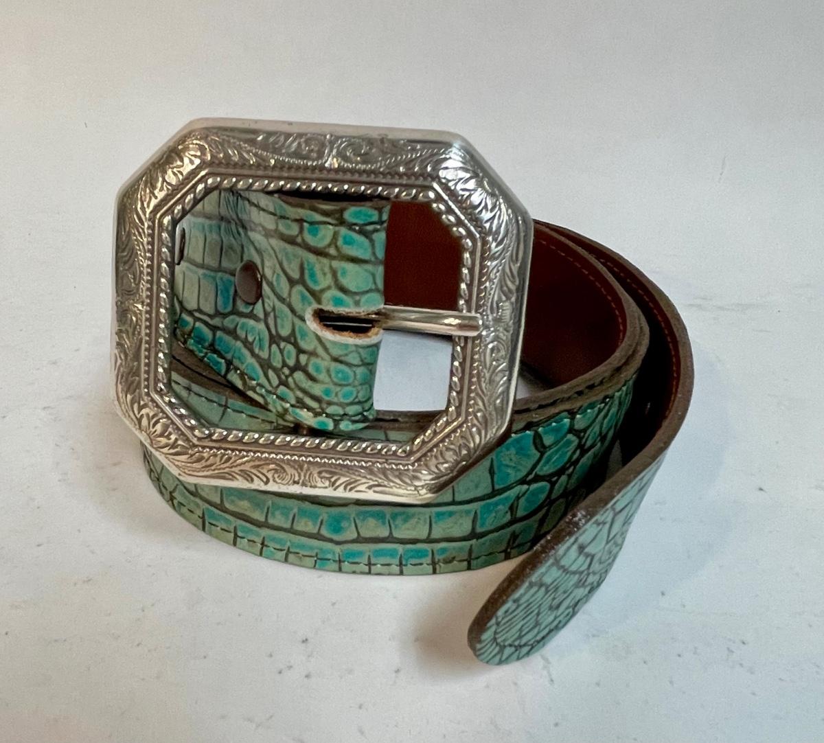 Turquoise Italian Leather Belt with Silver-tone Buckle