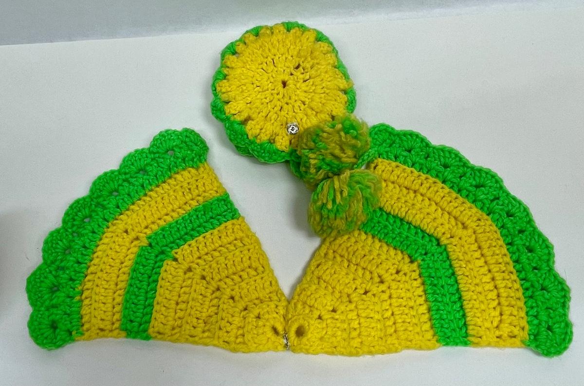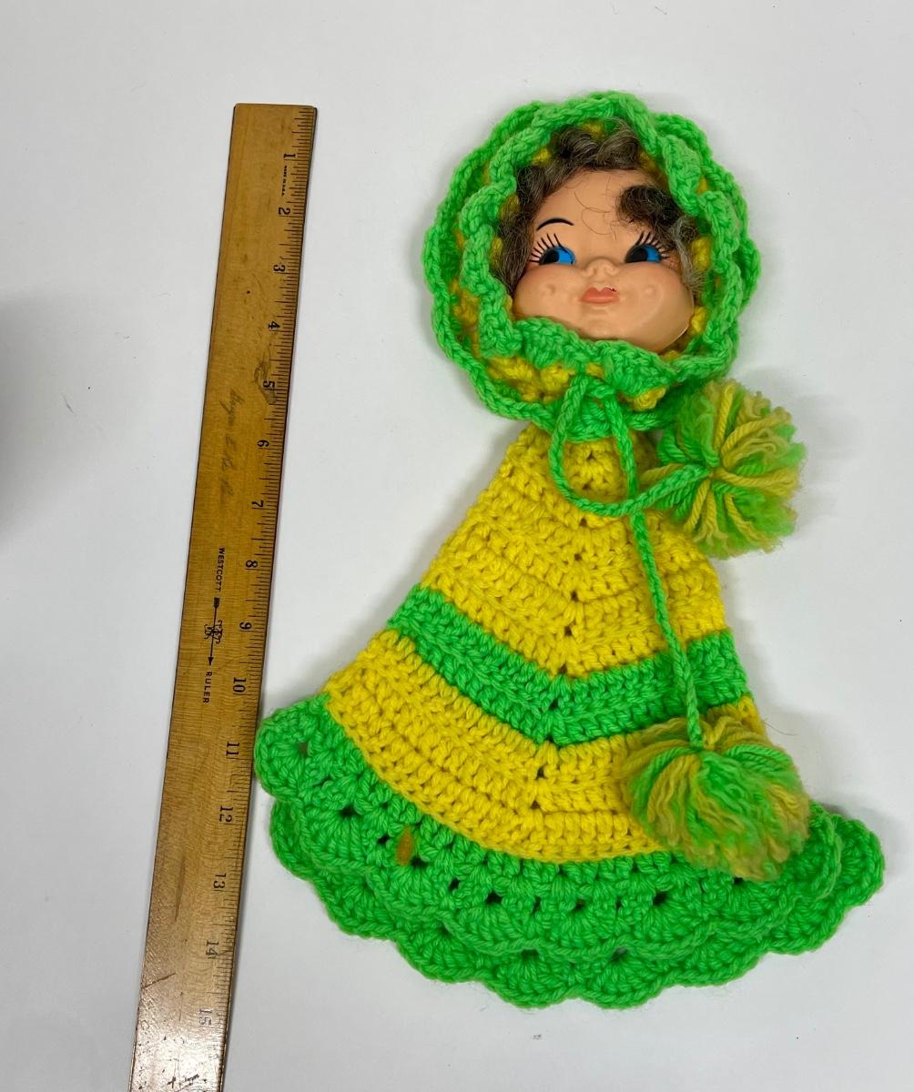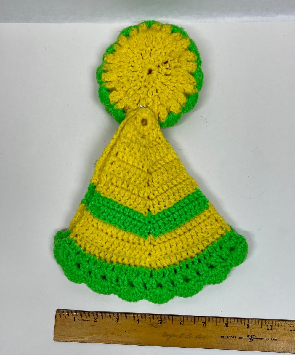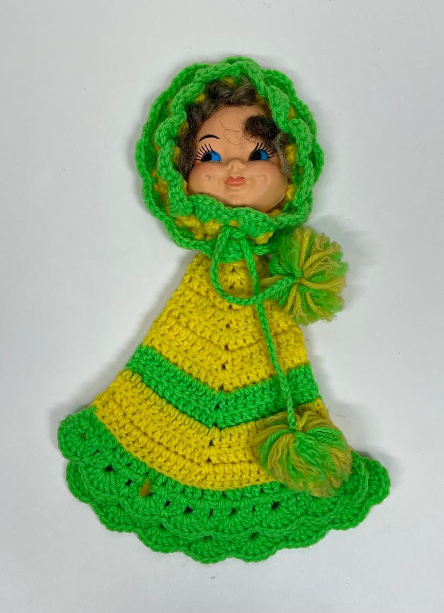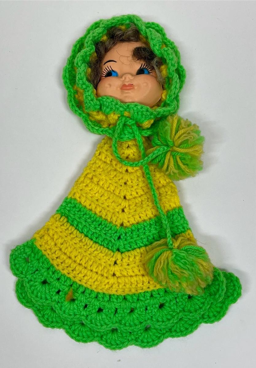 Vintage Doll Face Pot Holder Crochet Yellow and Lime Green