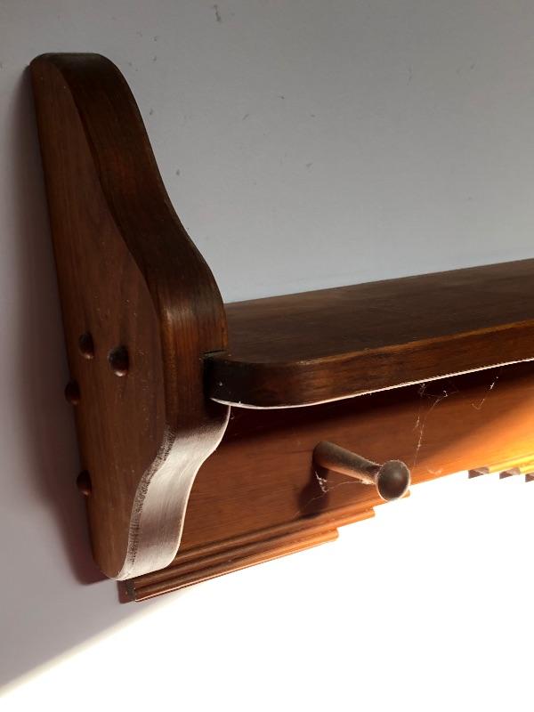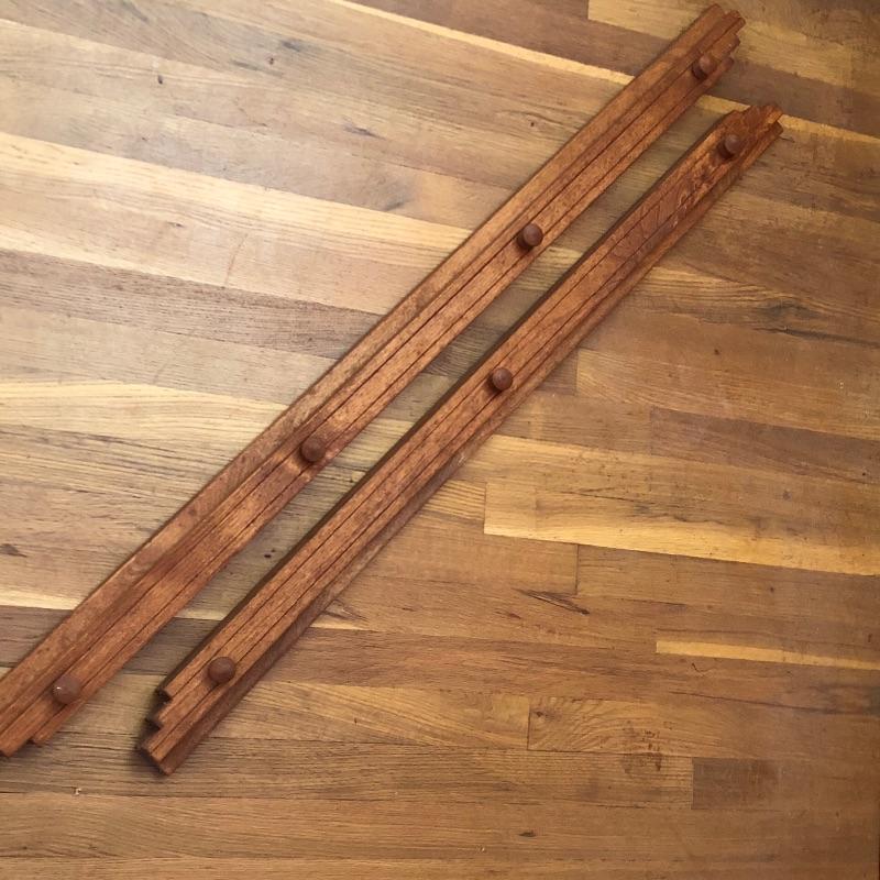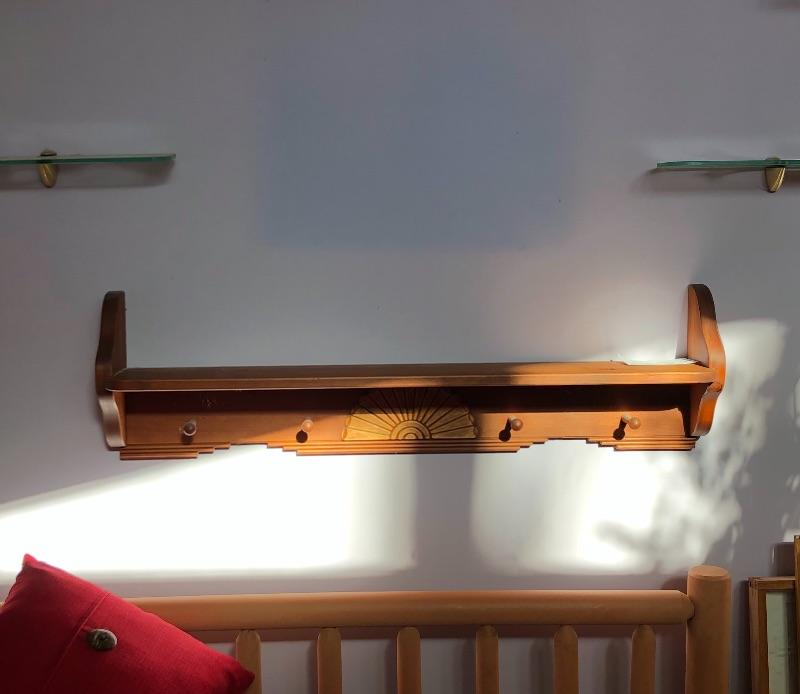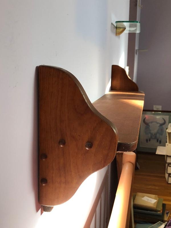 This lot contains two wooden shelves. One of them is unassembled and the other is attached to the wall. They are in great condition with no scratches or staining. The one mounted to the wall measures about 42” x 7.5” x 12”, and the detached ones measure 48”. Local pickup only.