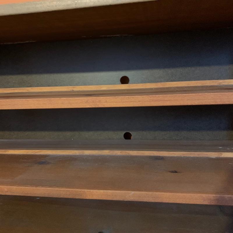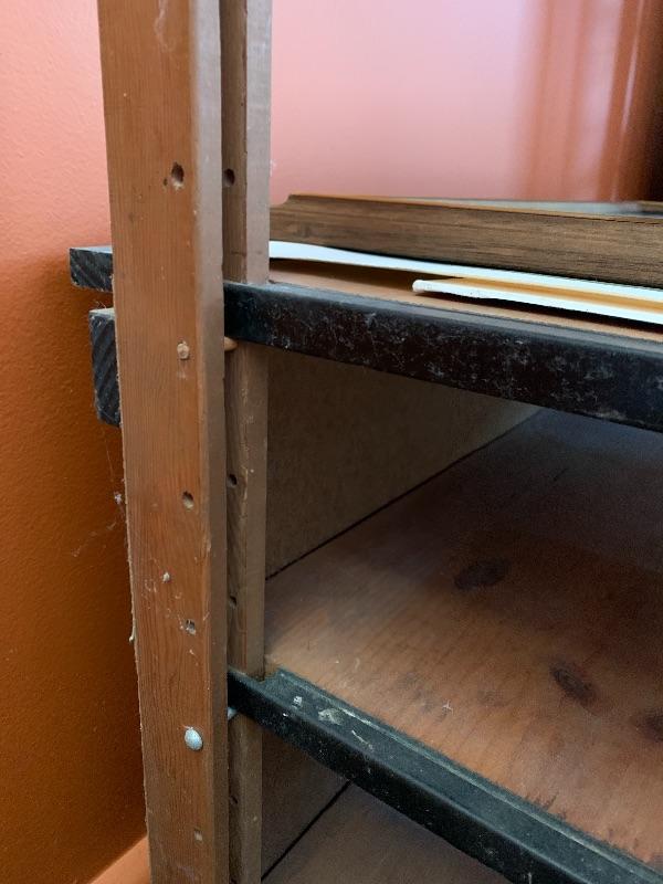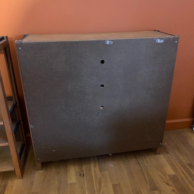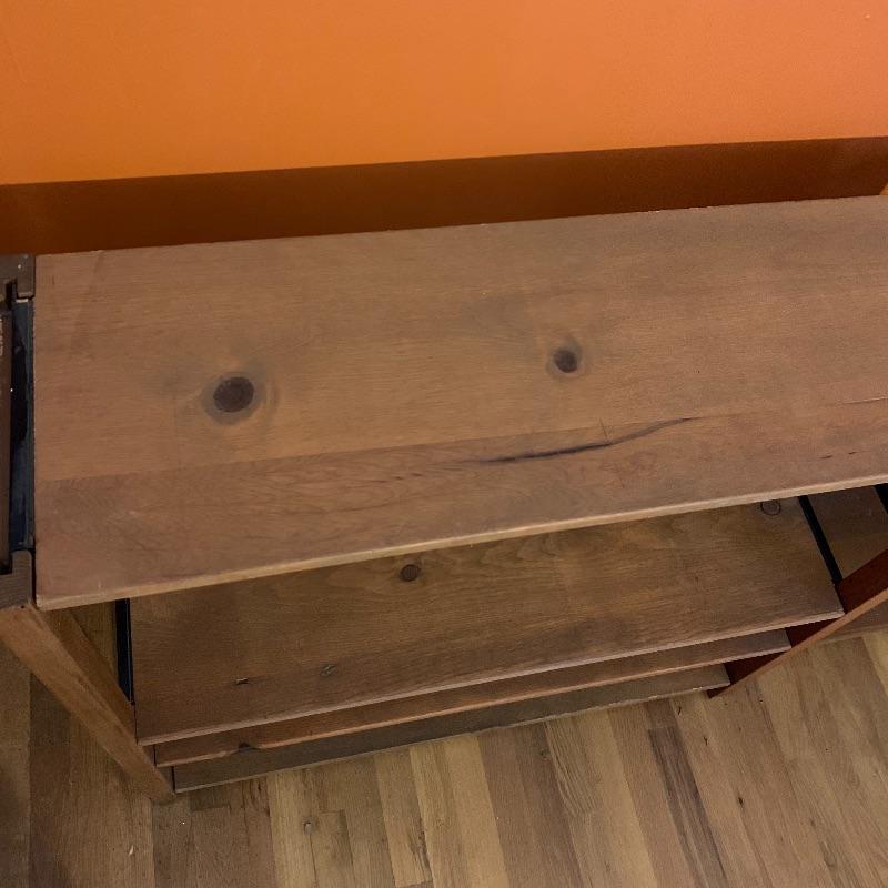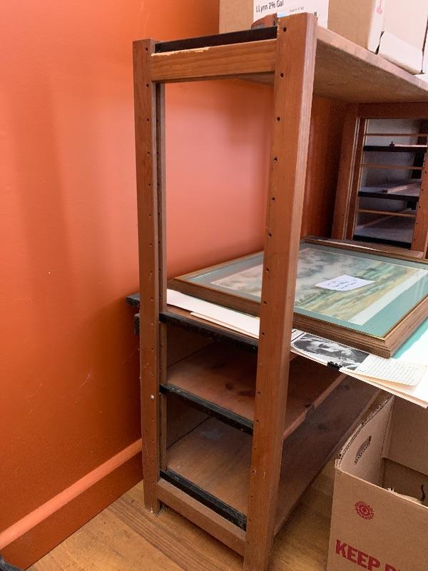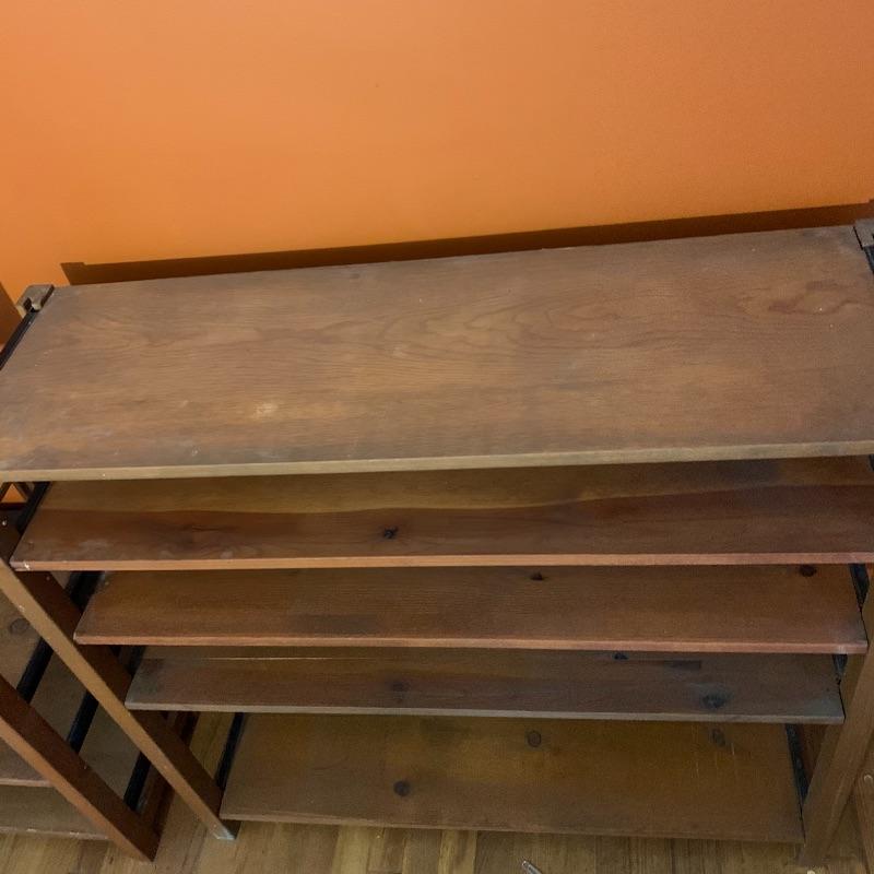 This lot contains two beautiful all wood with metal framing adjustable shelves that can be used for many different things! You can use them to store books, collectibles, put a TV on them, and more! The shelf on the left (37” x 12” x 36”) has four shelves, including the top level, and the shelf unit on the right (37” x 12” x 35.5”) has five shelves including the top level. They both have some very minor stains, and the right shelf has a hole in the backing, as well as some minor peeling in the back. The left shelf has no backing at all. Local pickup only.