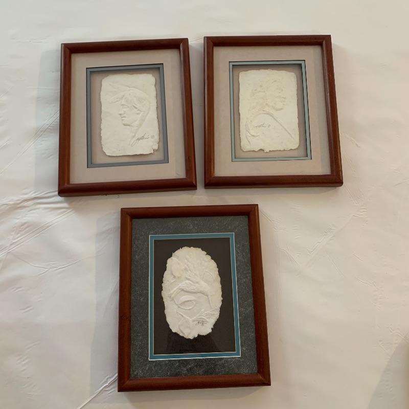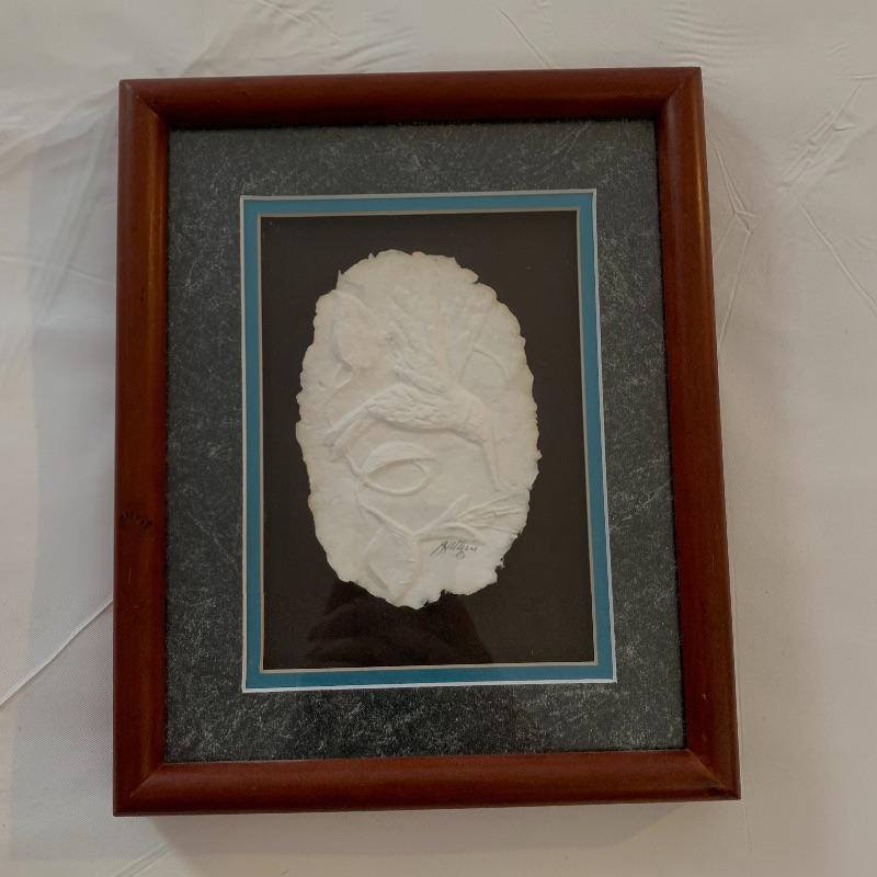 This lot contains 3 beautiful imprints on paper signed by the artist, John Guthrie. All are behind glass and matted and framed (each measures 11” x 9”). Two of them appear to depict a Native man, and the third appears to be a hummingbird. Some spots or discoloration on each piece but not too distracting. Shipping available. Shipping Art can be costly please call UPS store at 828-252-6930 for quote.