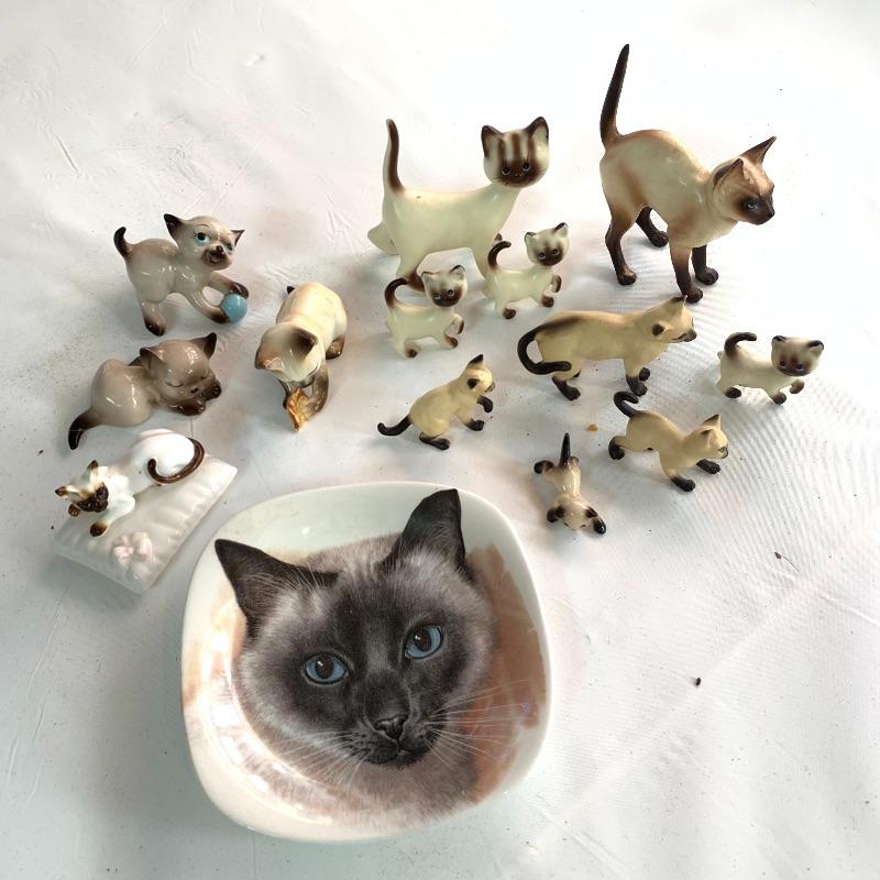 If you’re a cat lover, this one is for you! This lot contains 13 small Siamese cat figurines in multiple different poses. Although they’re not all from the same set, they go very well together. Decorate your home nicely with this beautiful set! The plate measures 5” x 5”, for reference. Shipping available.