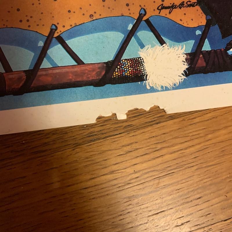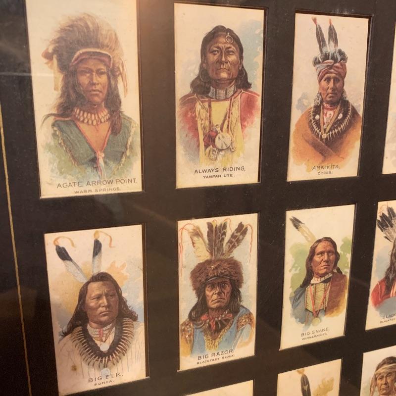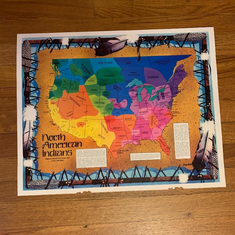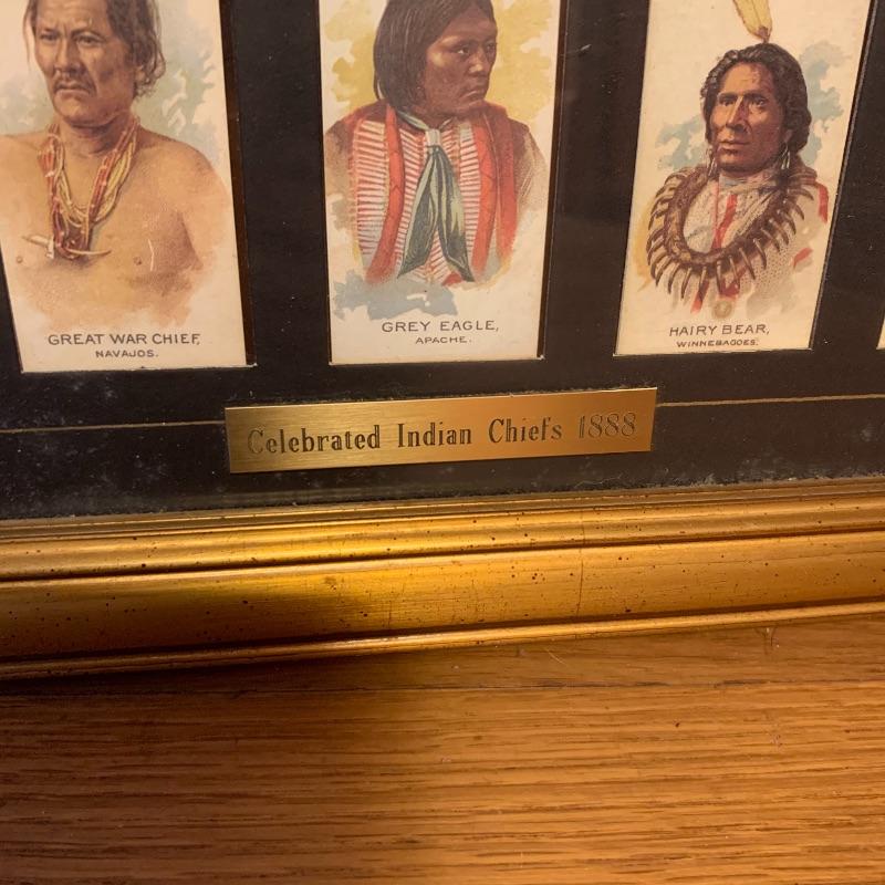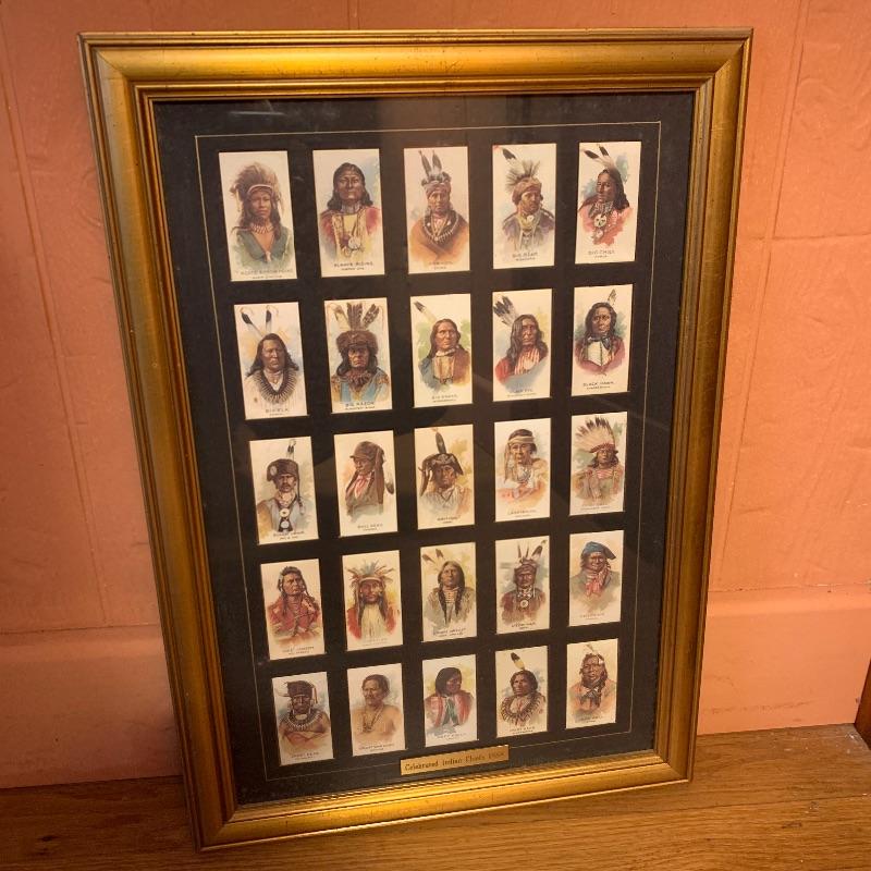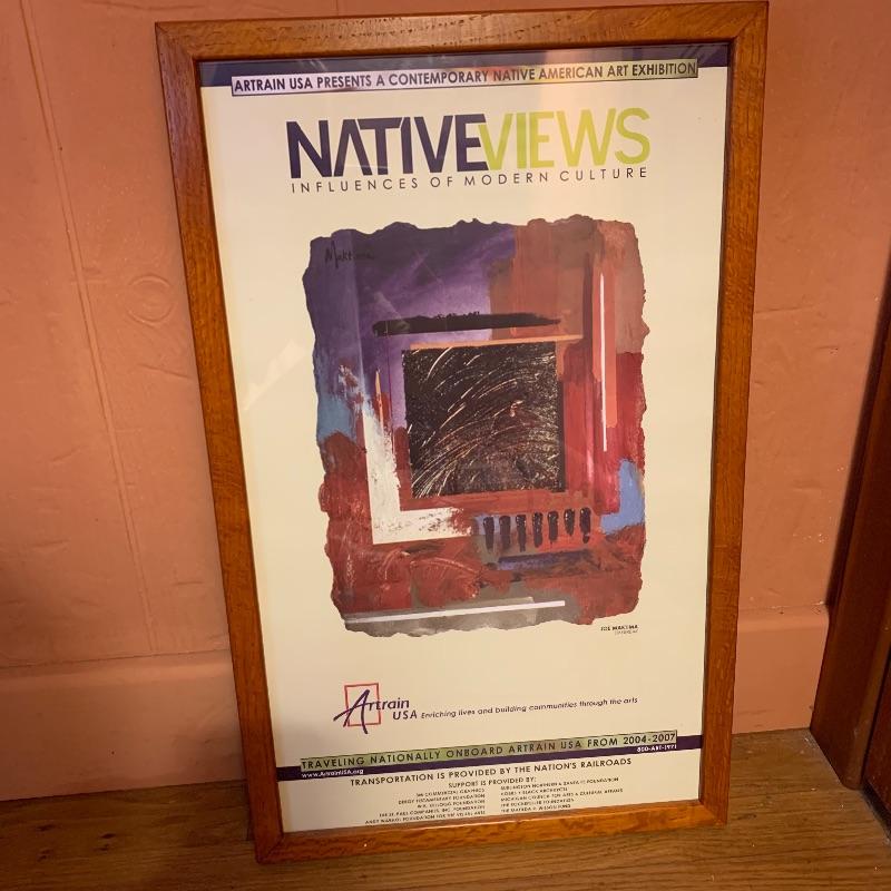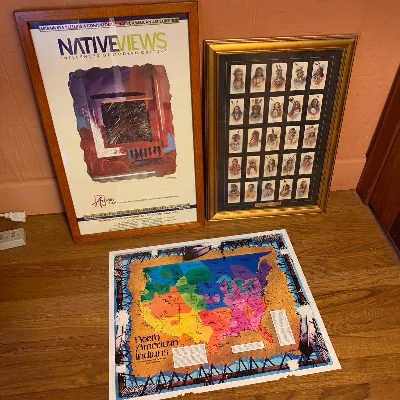 This lot contains a frame (14” x 20.5”) with Native American cards, depicting different men and their names. Second, it contains a colorful map (20” x 16”) of all the Native tribes and groups in the United States, published by the Museum of the Cherokee Indian. Lastly, it contains a poster (14.5” x 24”) by Joe Maktima, titled “Daybreak.” Shipping Available. Shipping Art can be costly please call UPS store at 828-252-6930 for quote.