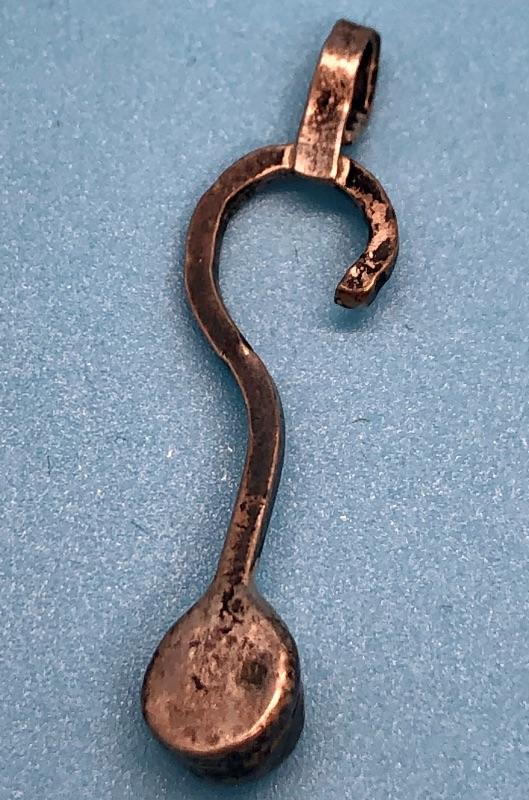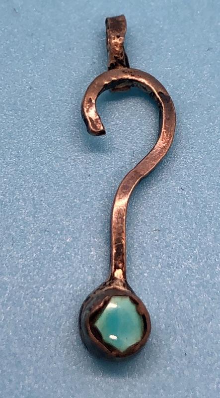 Silver and turquoise question mark pendant. About 1" in size.