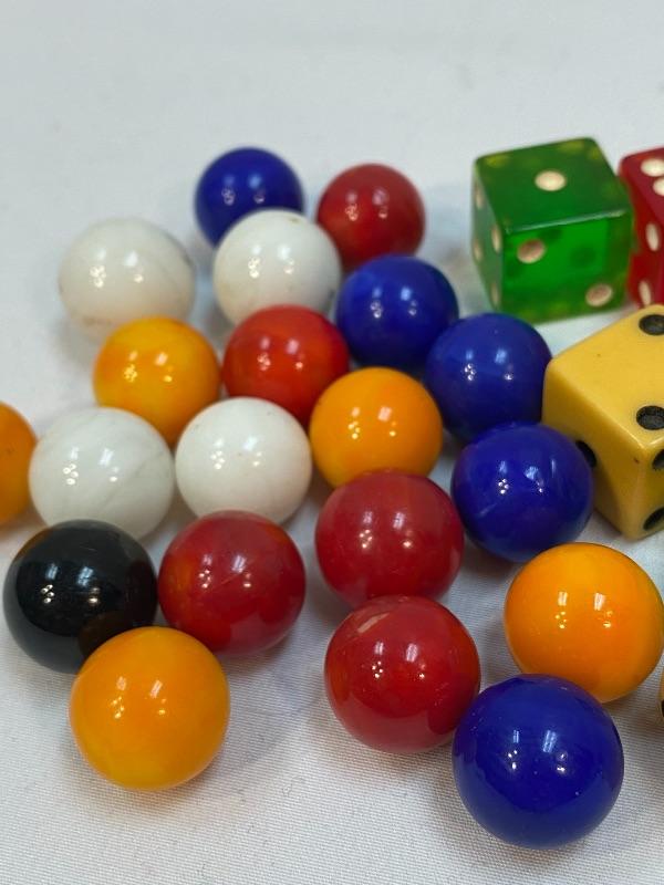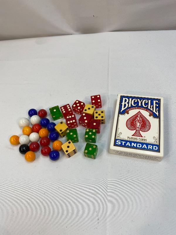 Vintage Dice, Glass Marbles and a Deck of Cards