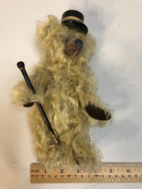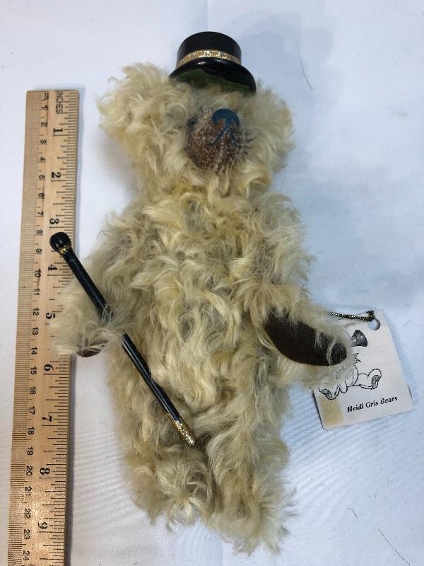 Heidi Gris Bears "Dandy" plush bear. Wearing a top hat with cane. Original tags. About 8" size.