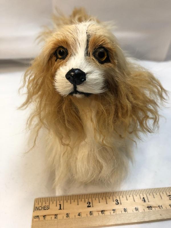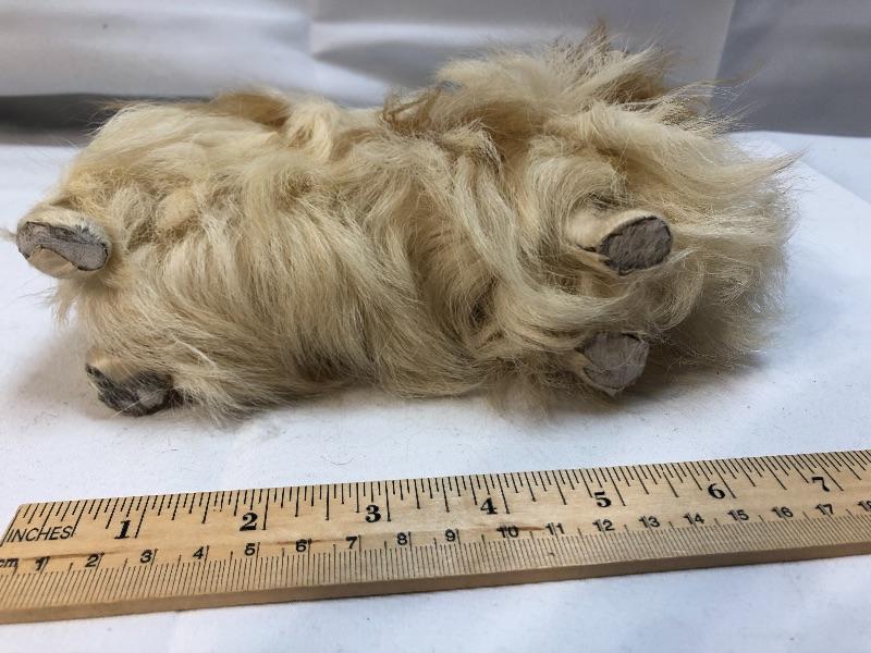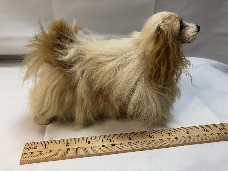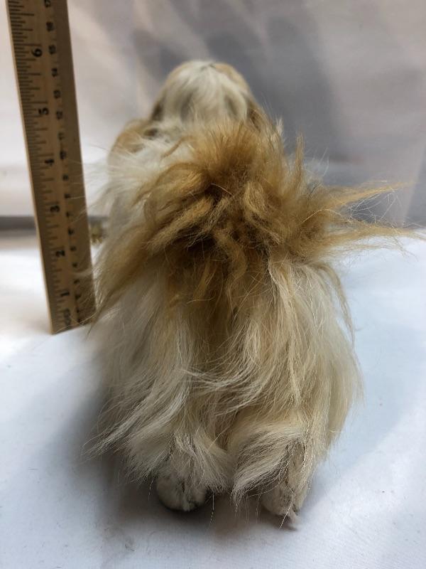 Long haired spaniel like dog plush. Artist doll about 10" length. Beige and cream colored fur.