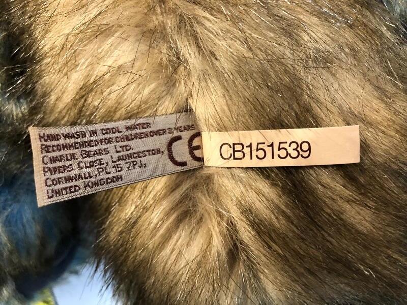 Charlie Bears Fluffy Brown & Blue Teddy Bear Plush CB151539